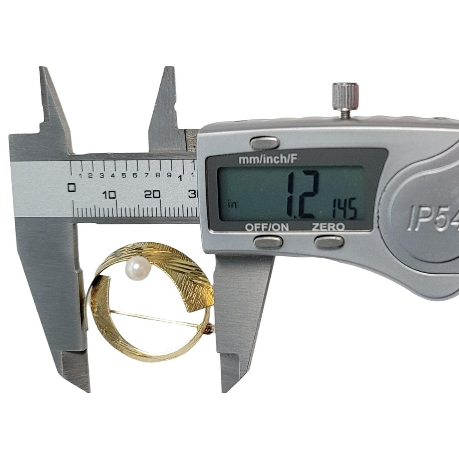 Inspire your best look with this elegant brooch. Crafted from 14k yellow gold, with a solitaire pearl setting and round ribbon wreath that weighs 3.5 grams and 1.2-inches in diameter. The brooch will add a touch of femininity to your ensemble and make you look as good as you feel.