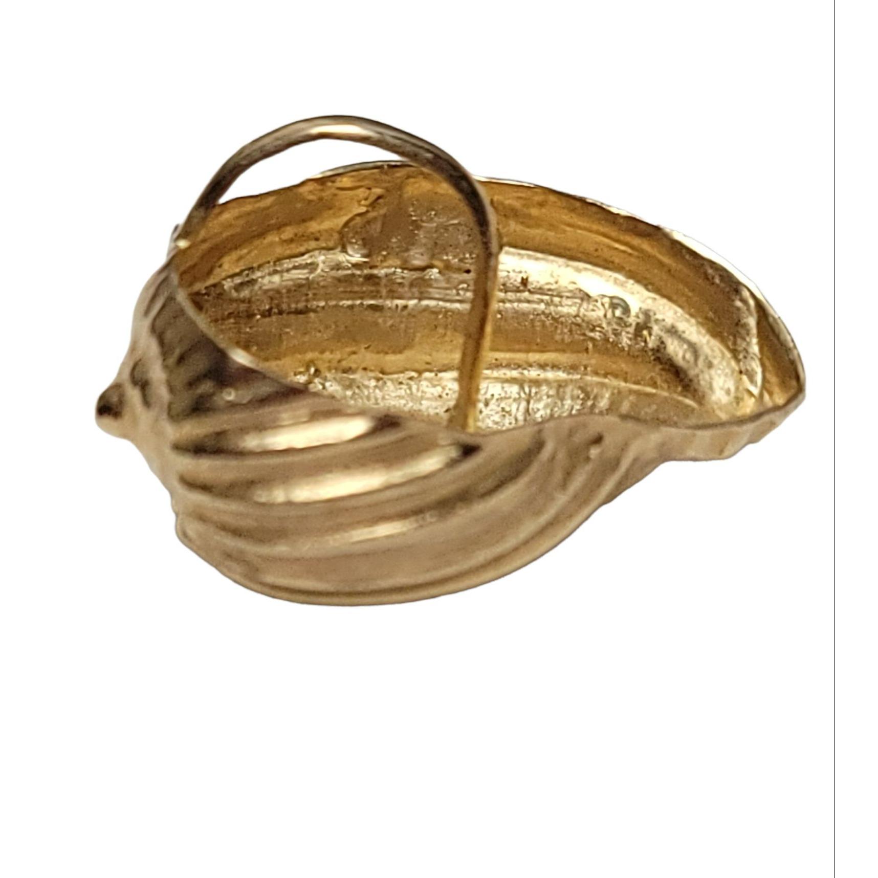 An elegant beach conch sea shell pendant which can function as a slide for a scarf or beads. The bale is large. Made with 14 karats yellow gold in perfect polished and textured finish. Measures approximately 1.2-inch high and weighs 8.5 grams. This pendant is in good condition.