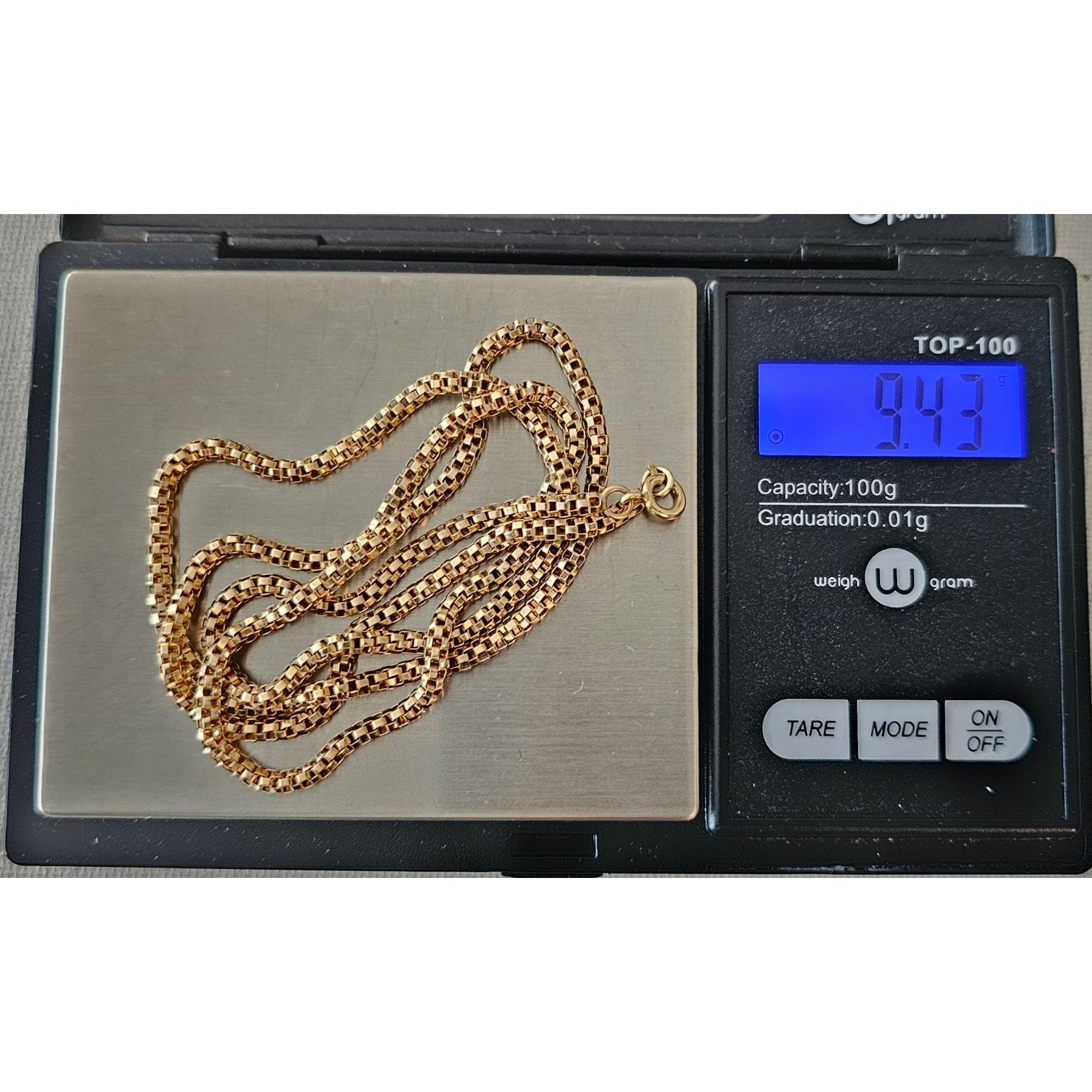 14K Yellow Gold Round Box Chain Necklace, 9.4 Grams C7