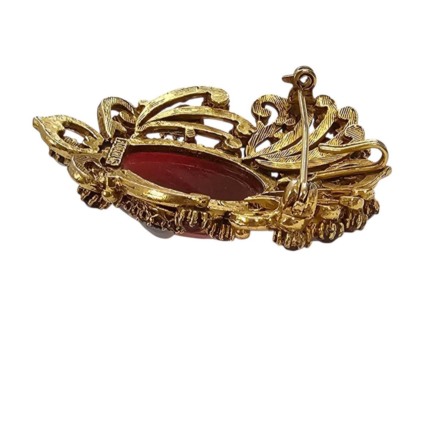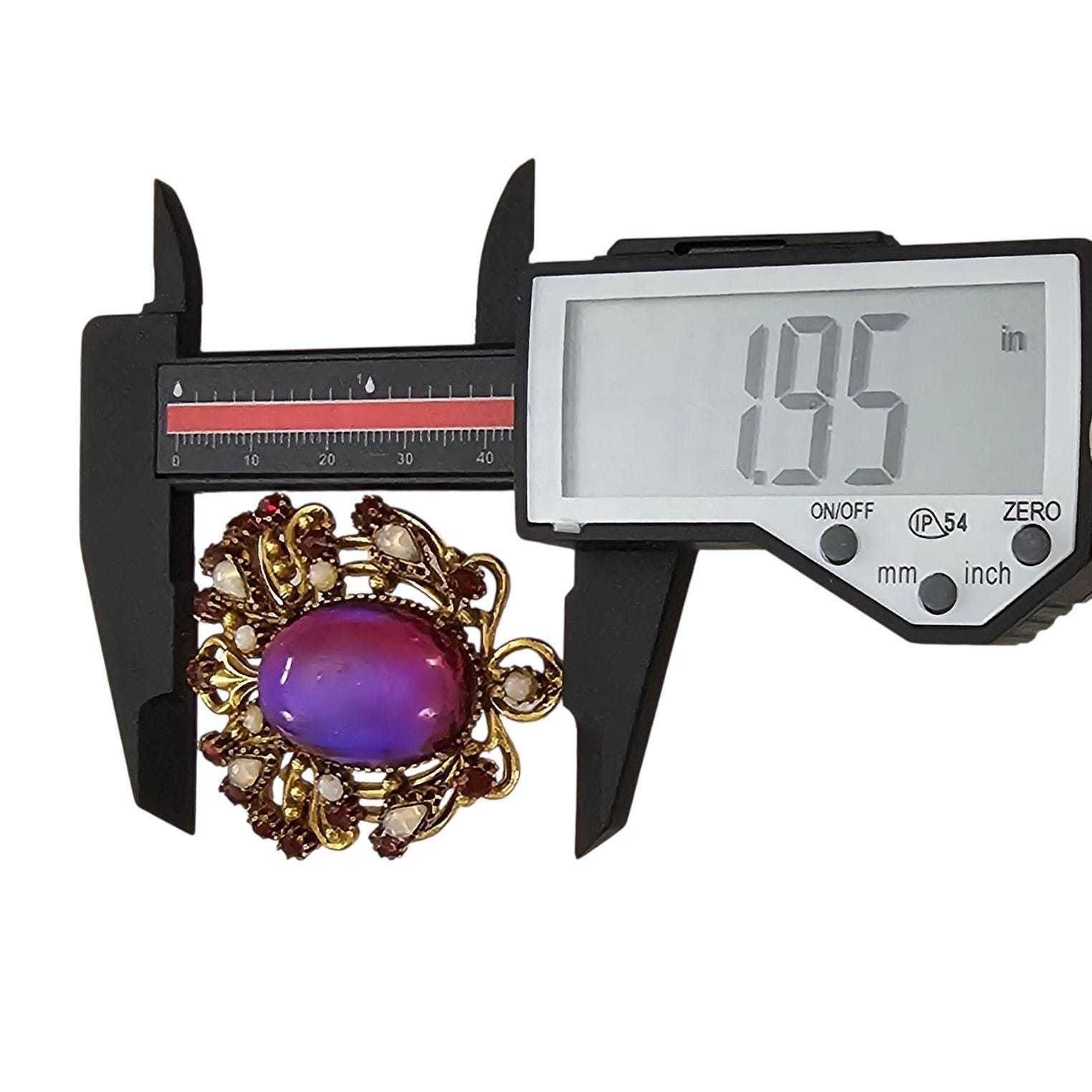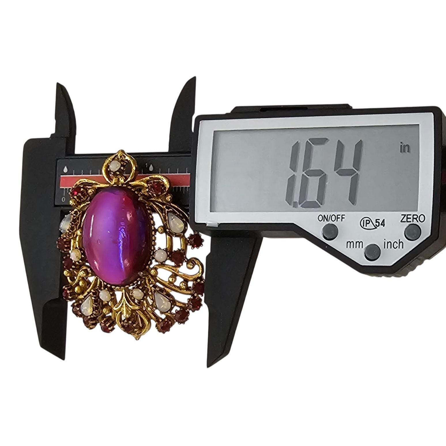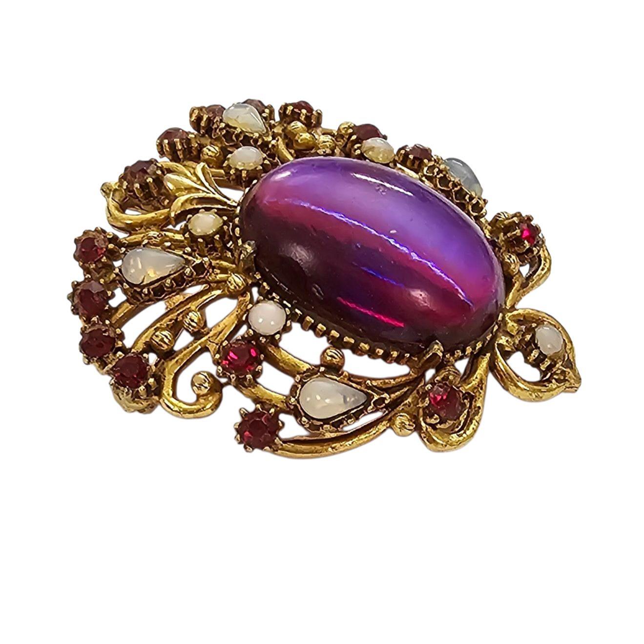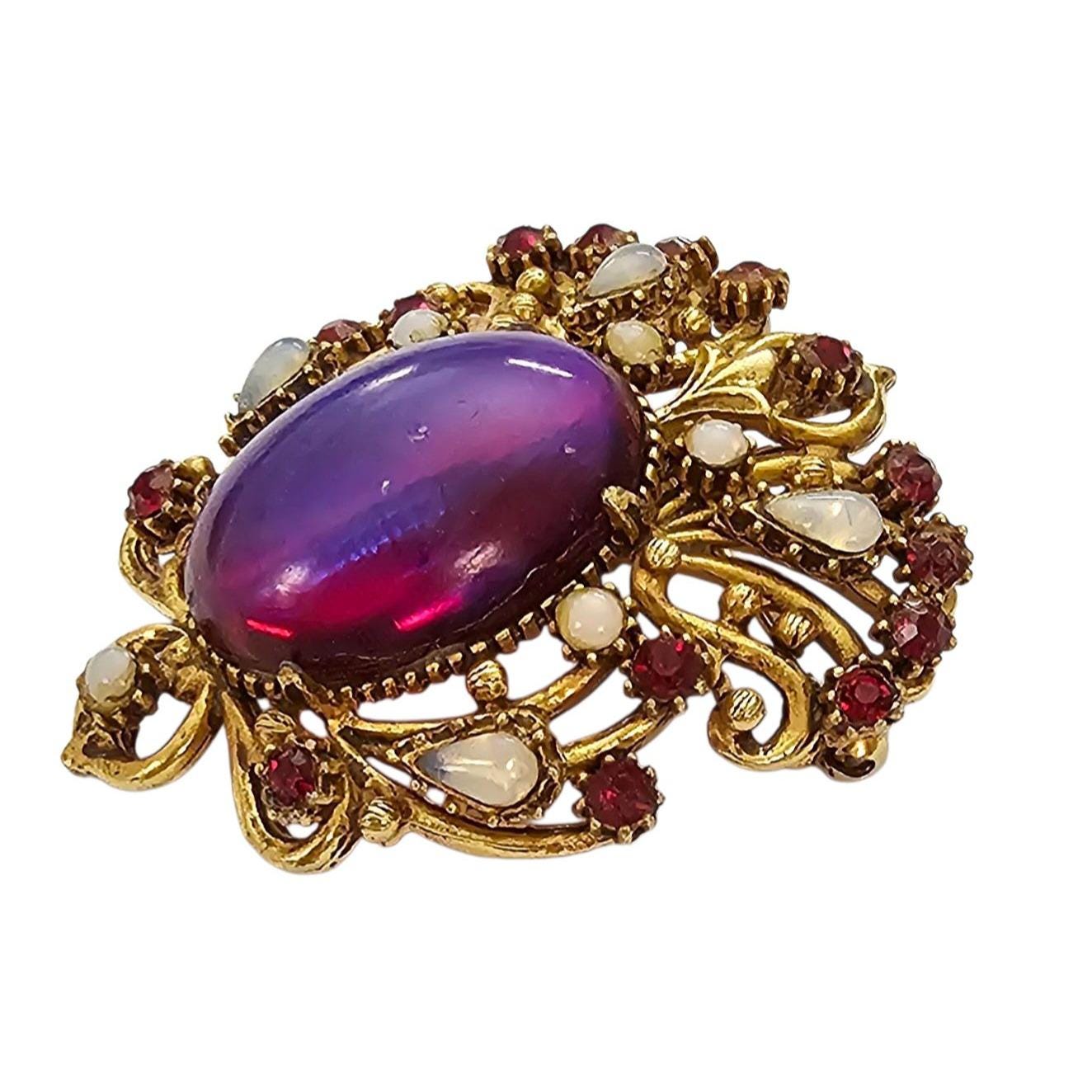 Florenza Pink Blue AB Domed Cabochon Brooch Red Rhinestone White Opaline Pin Pendant Signed, C180