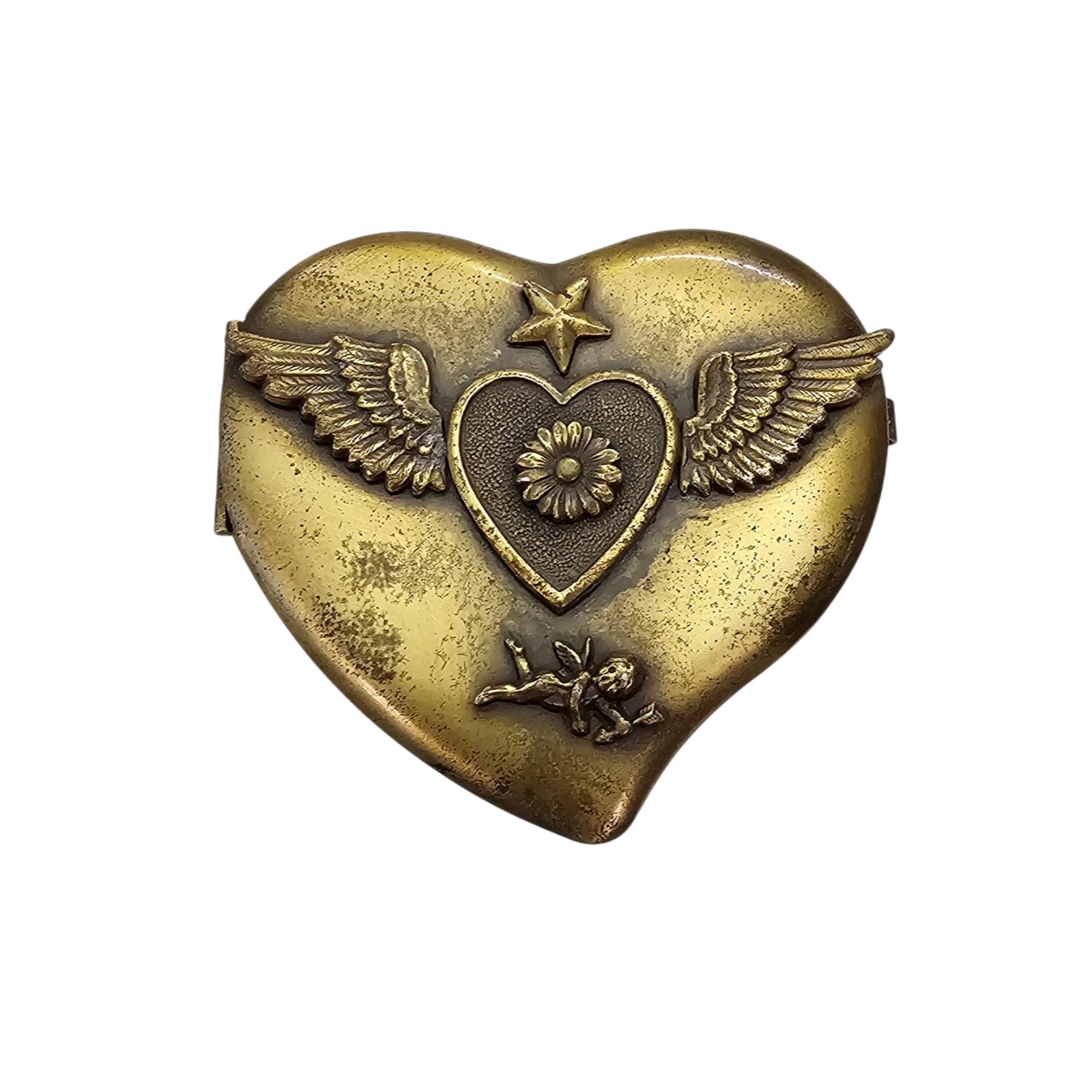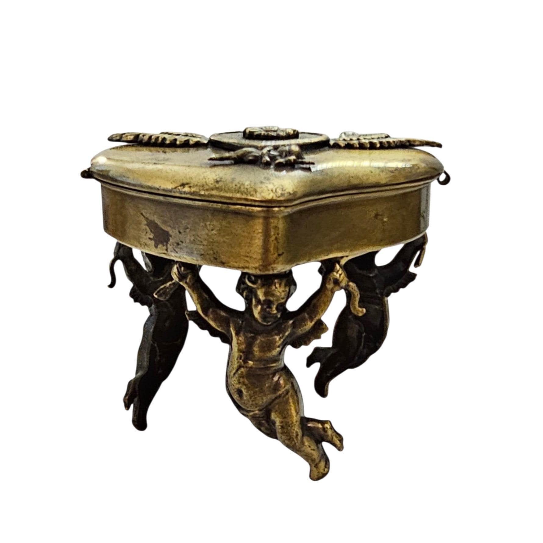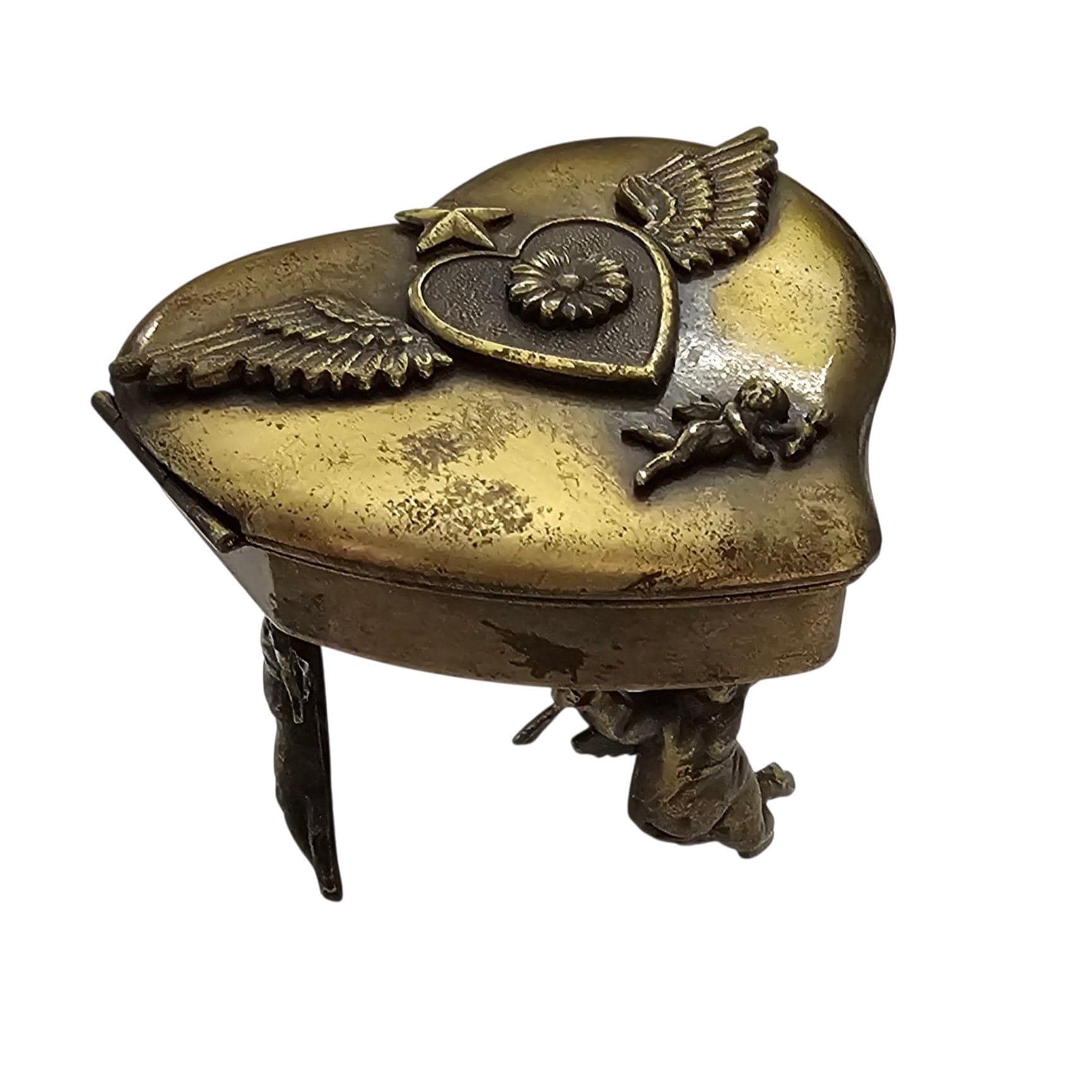 WWII Cherub Heart Brass Trinket Box With Mirror, C219