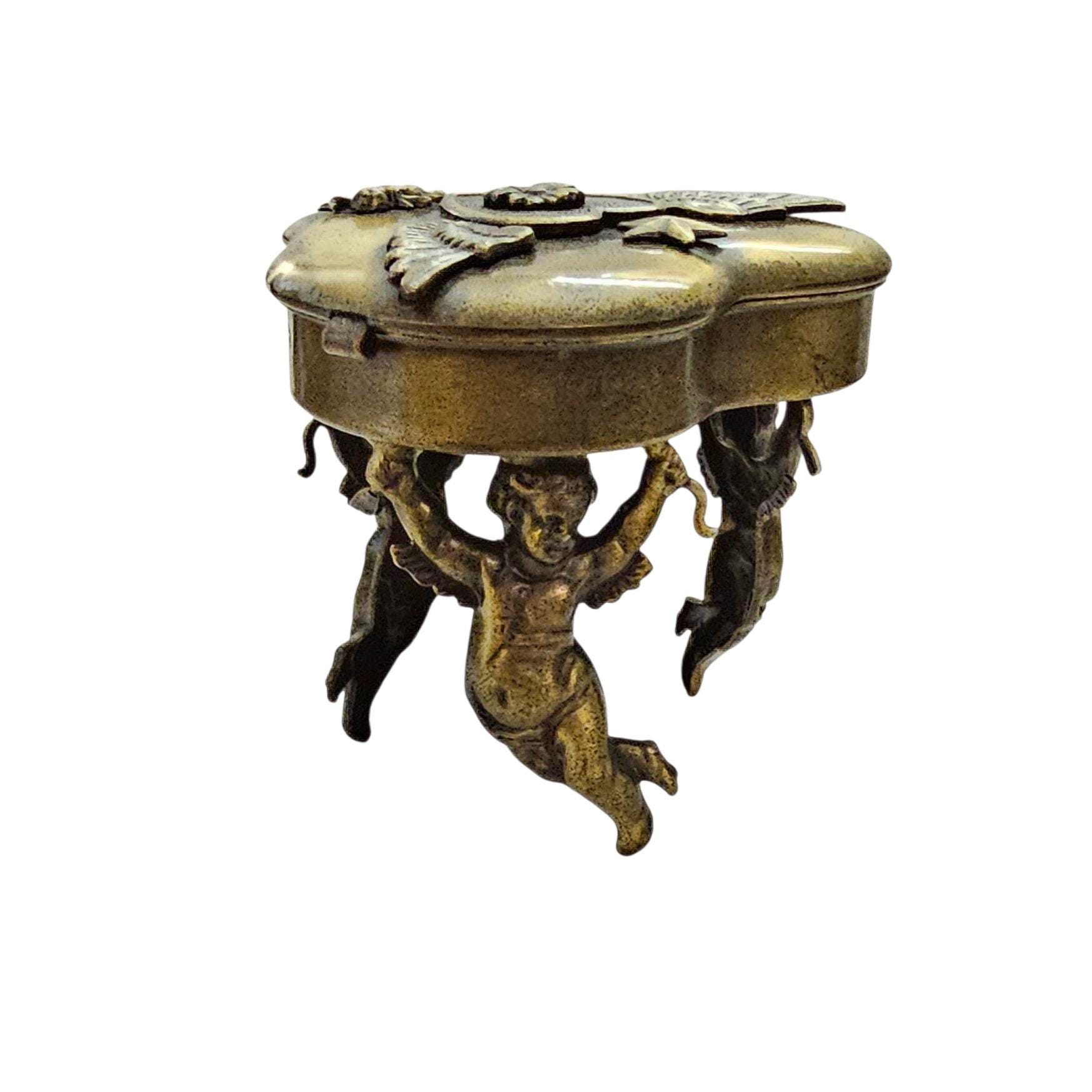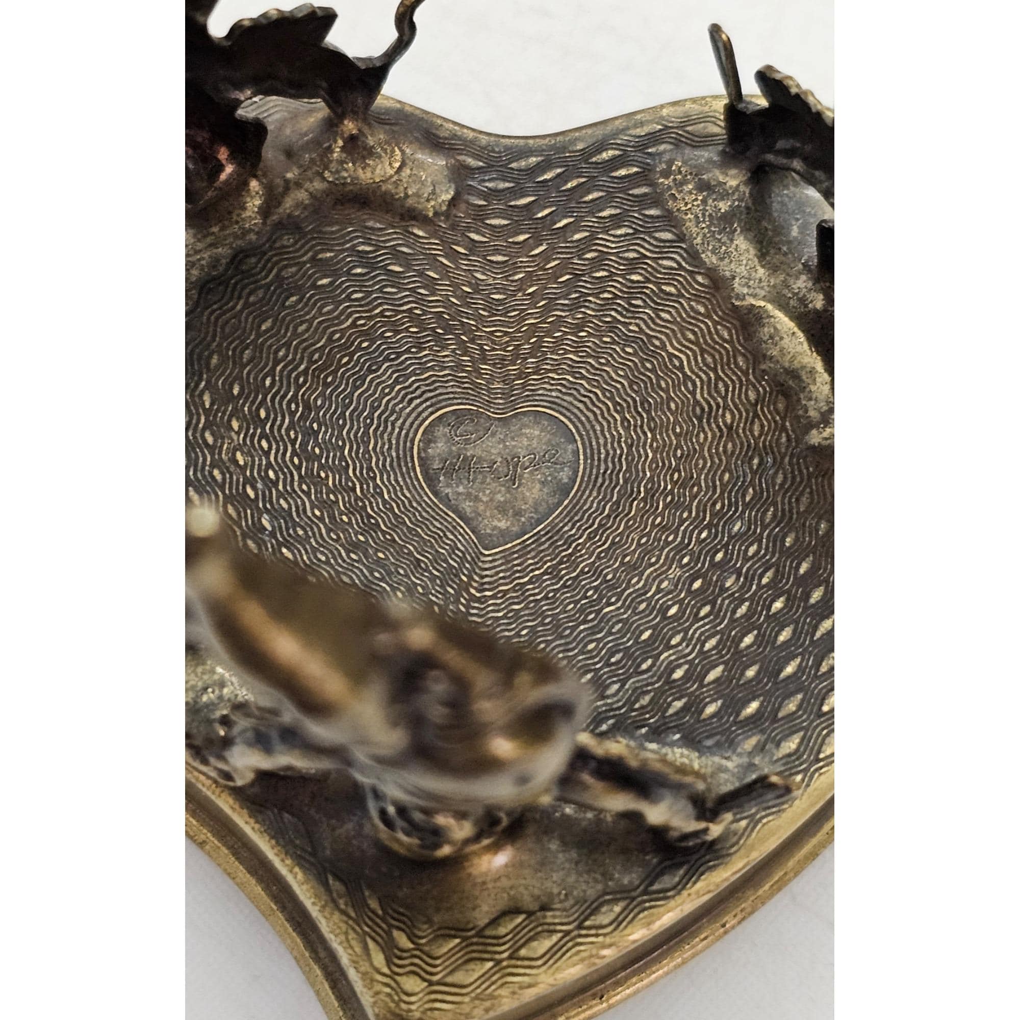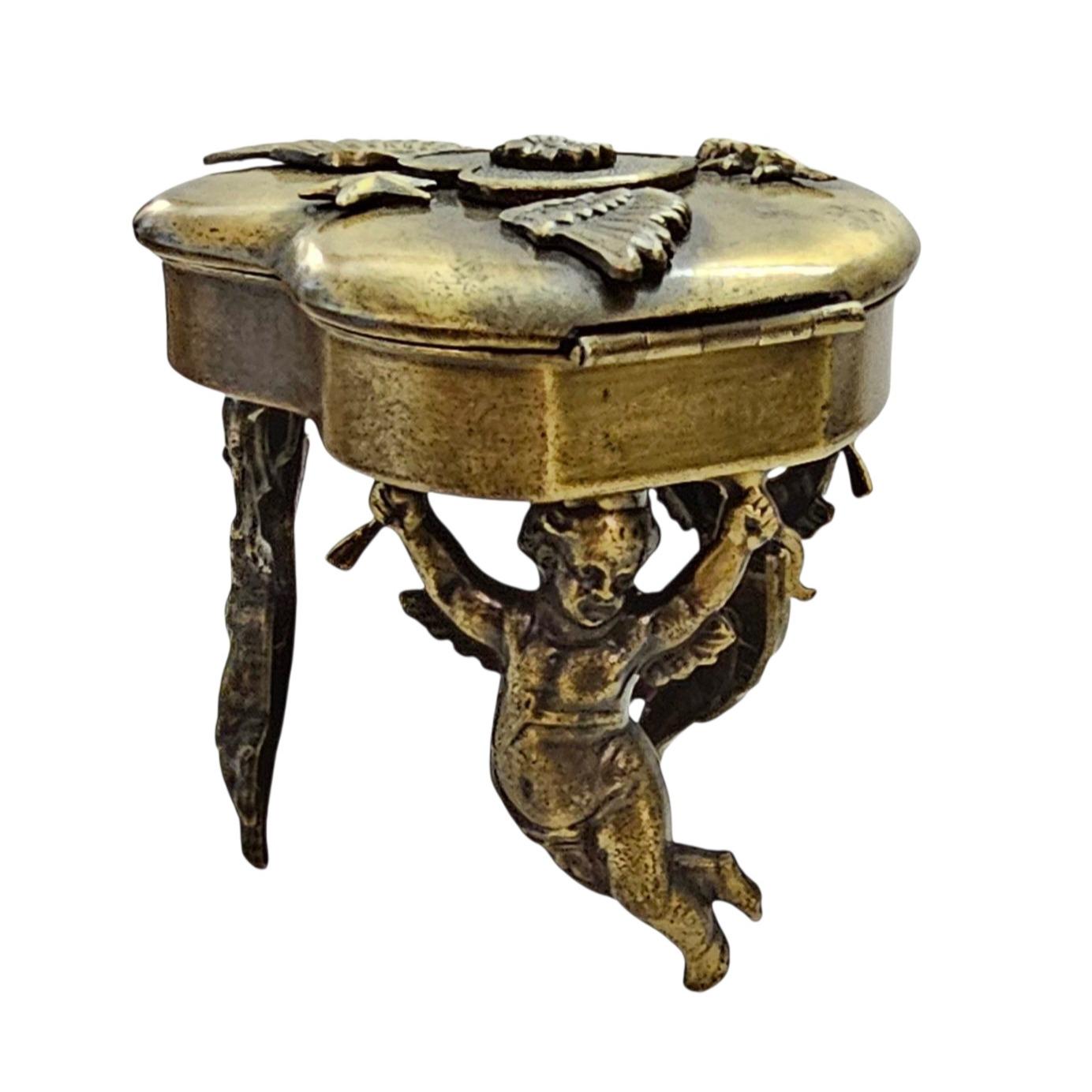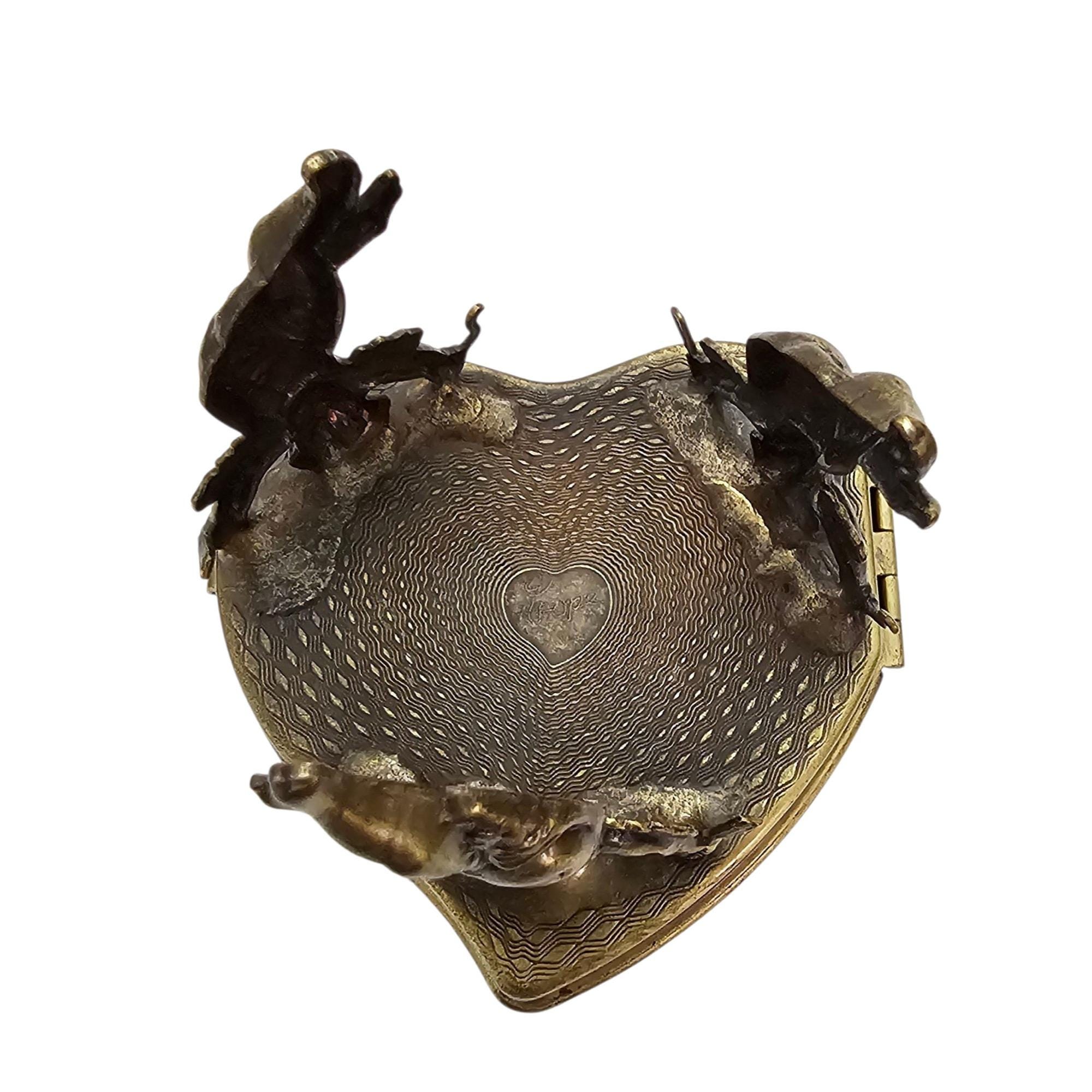 WWII Cherub Heart Brass Trinket Box With Mirror, C219