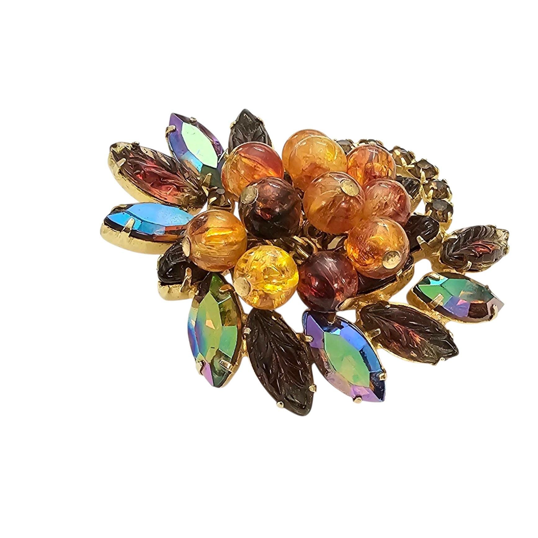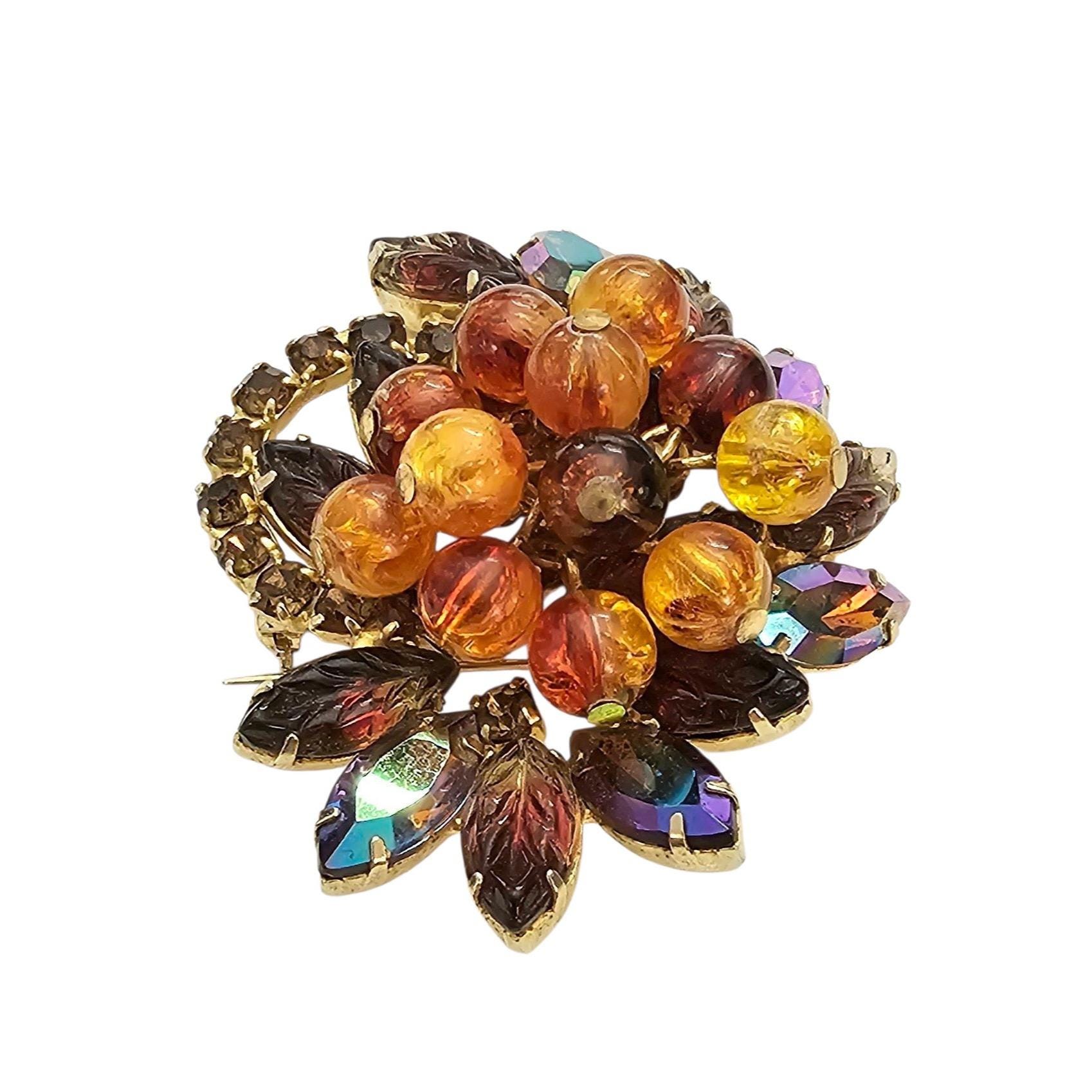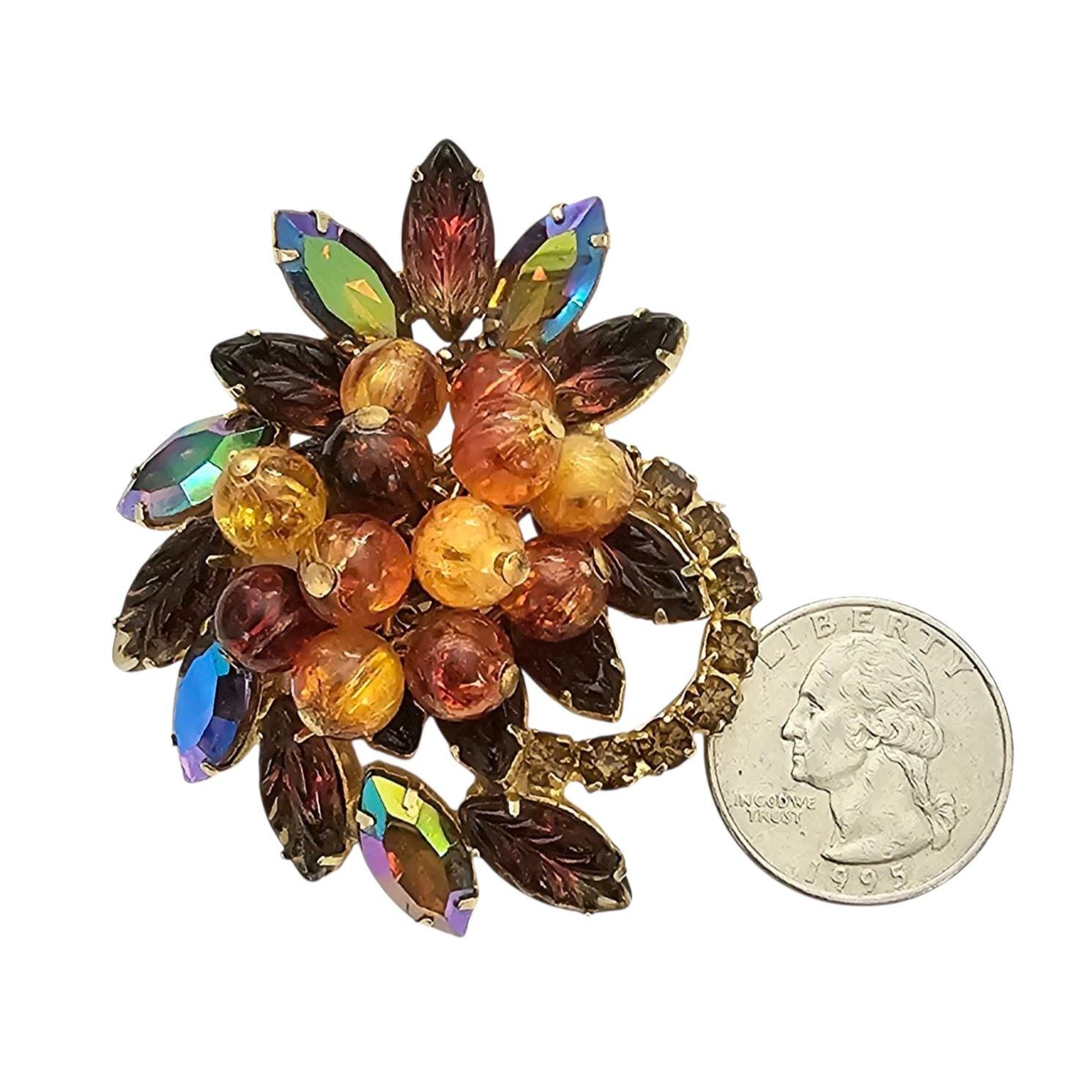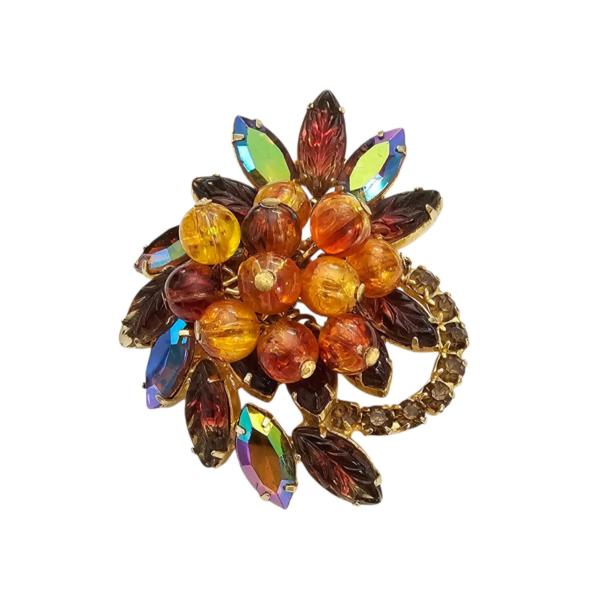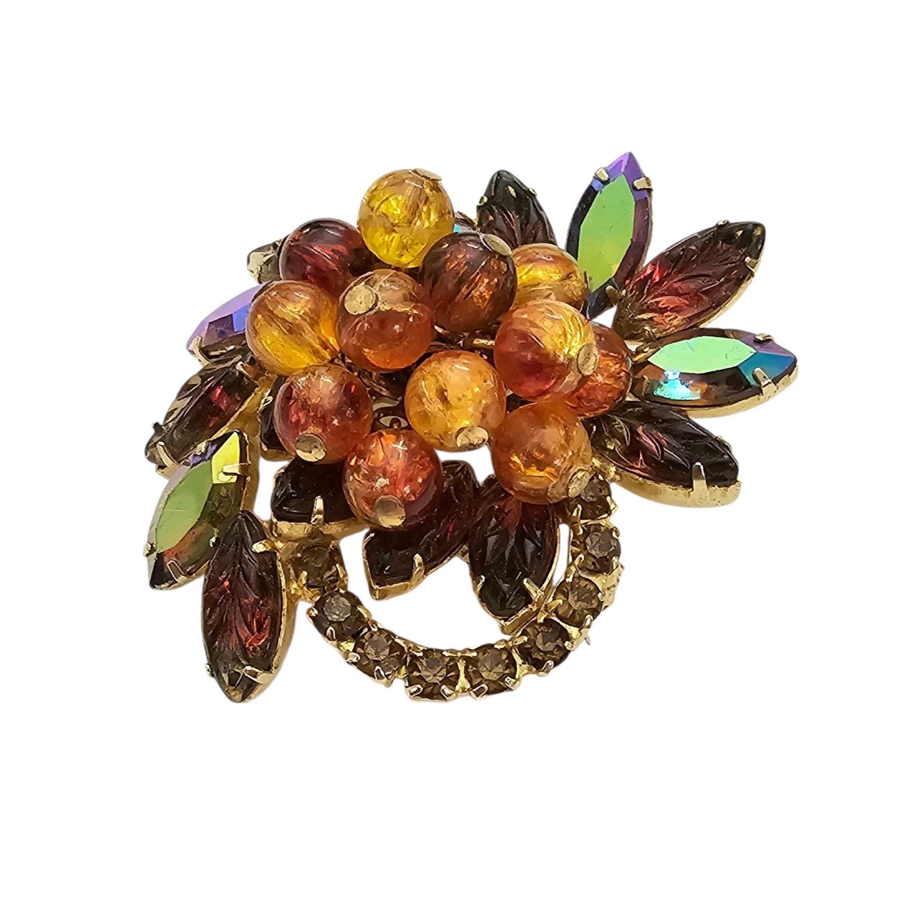 Vintage Purple Gold Givre Brooch AB Rhinestone Autumn Fall Cluster Pin, C220