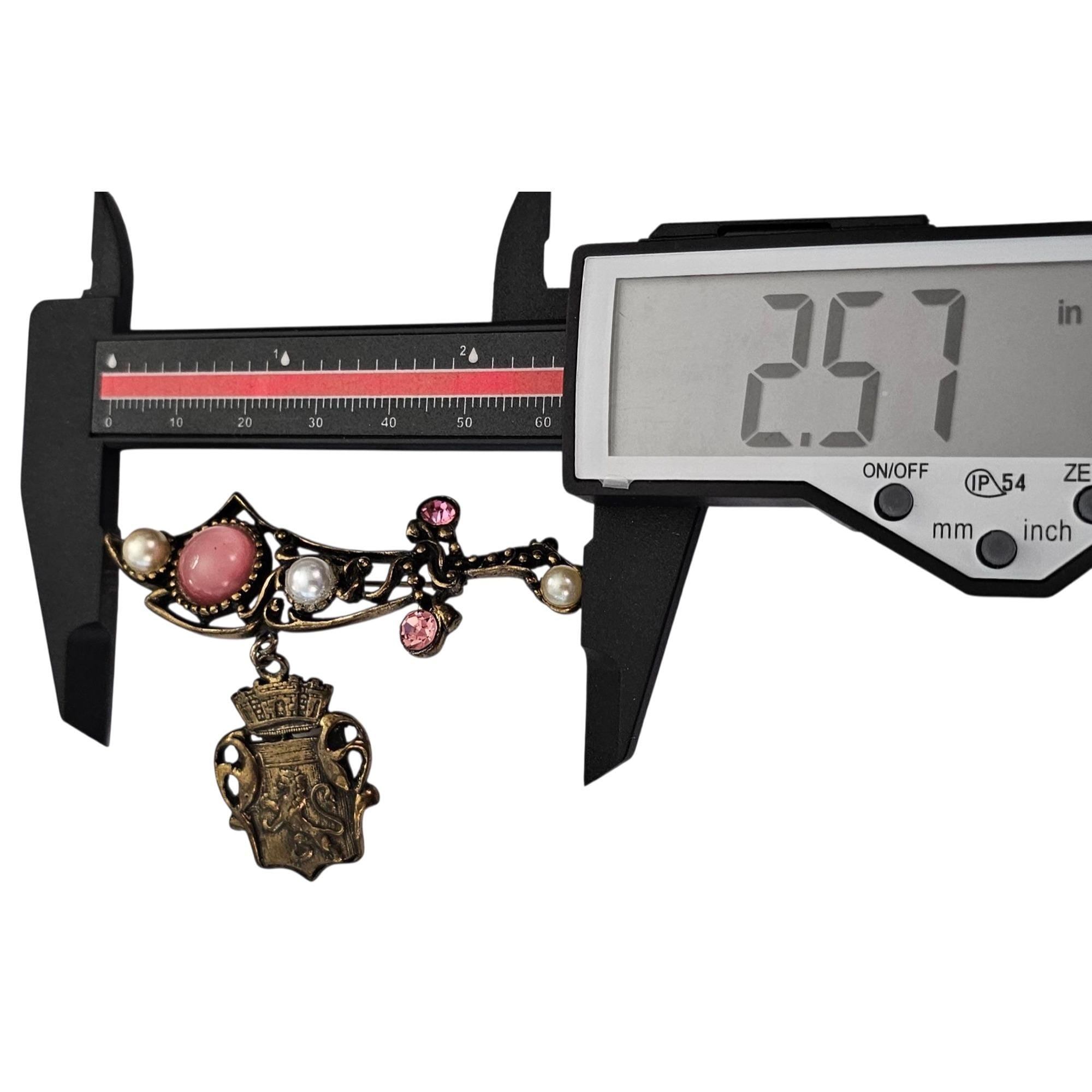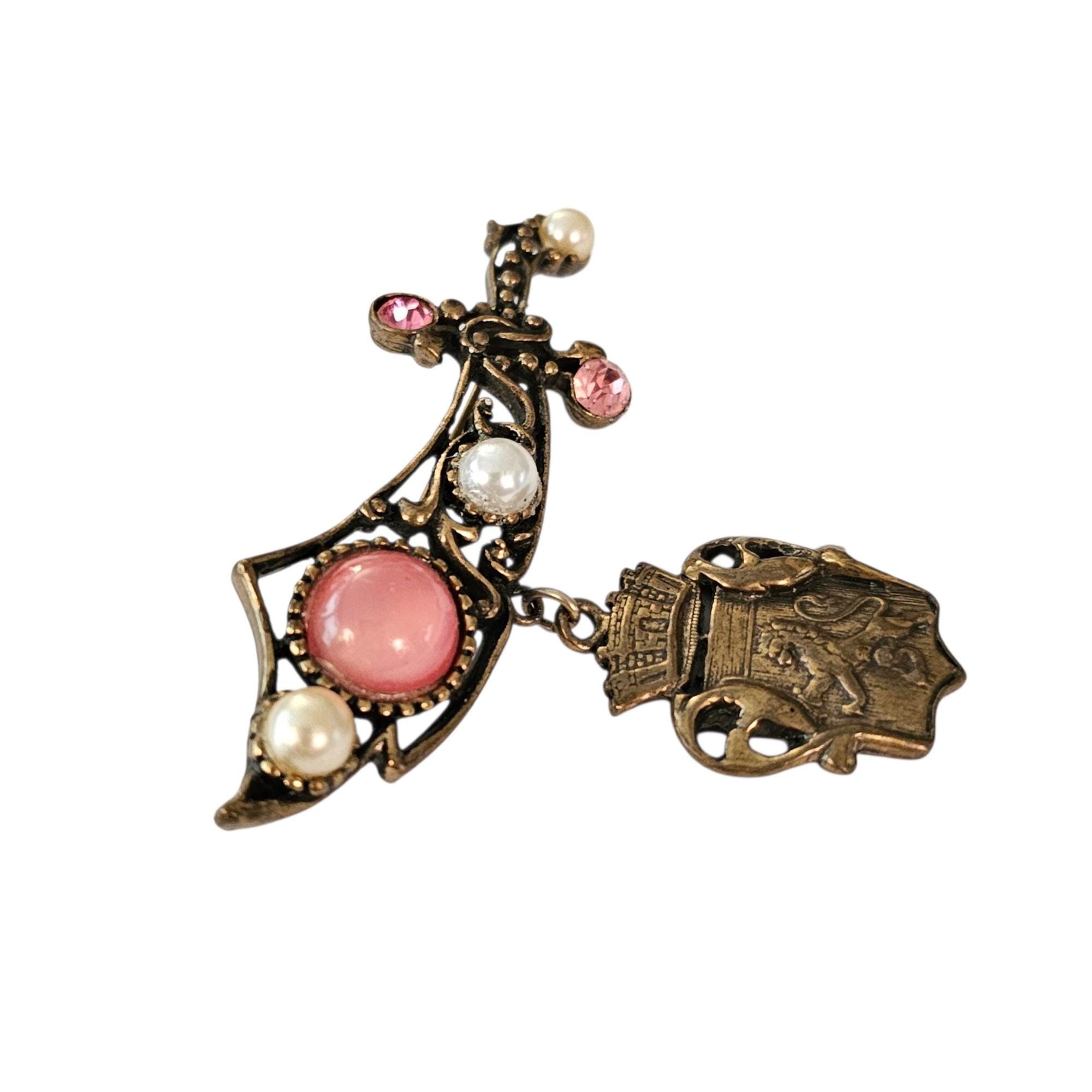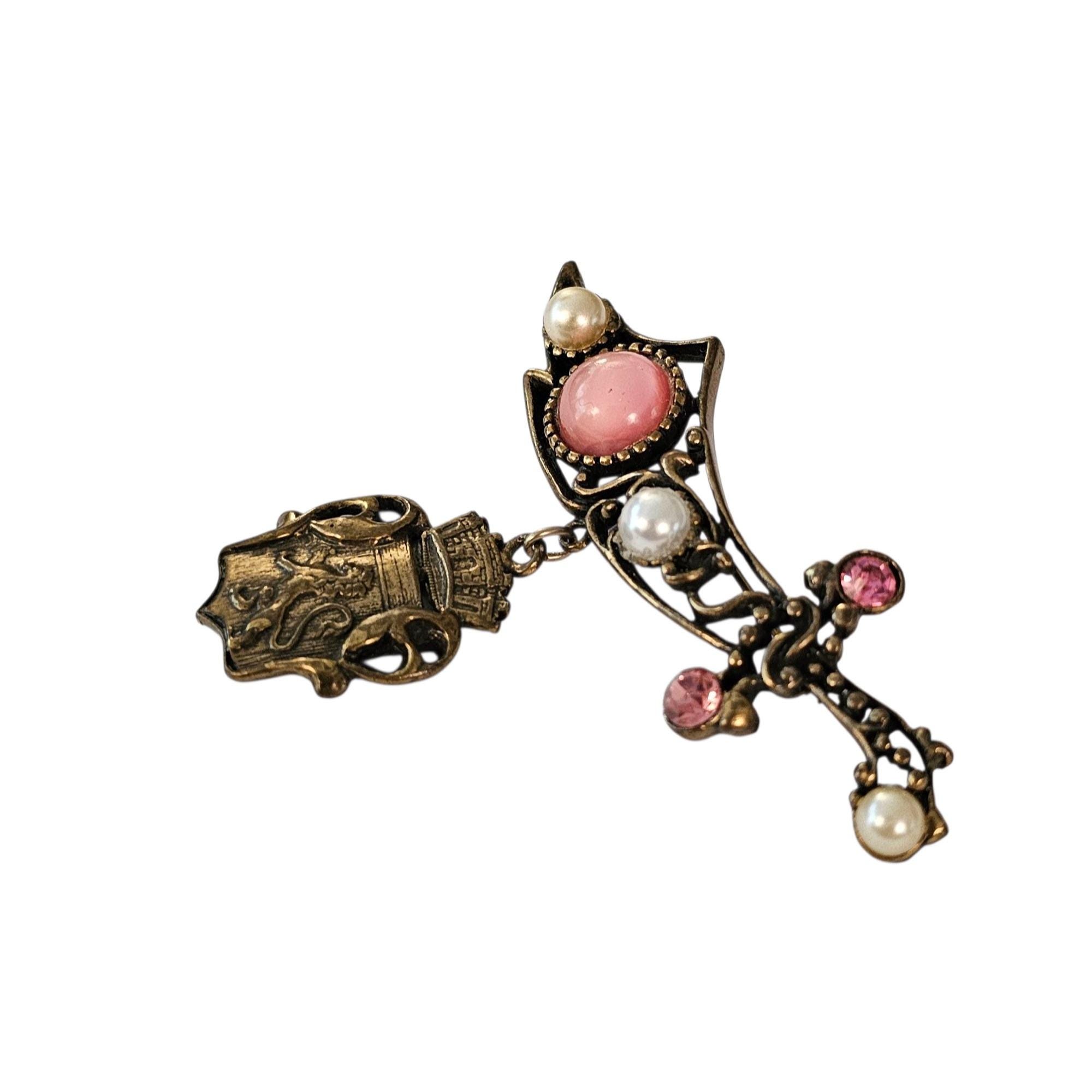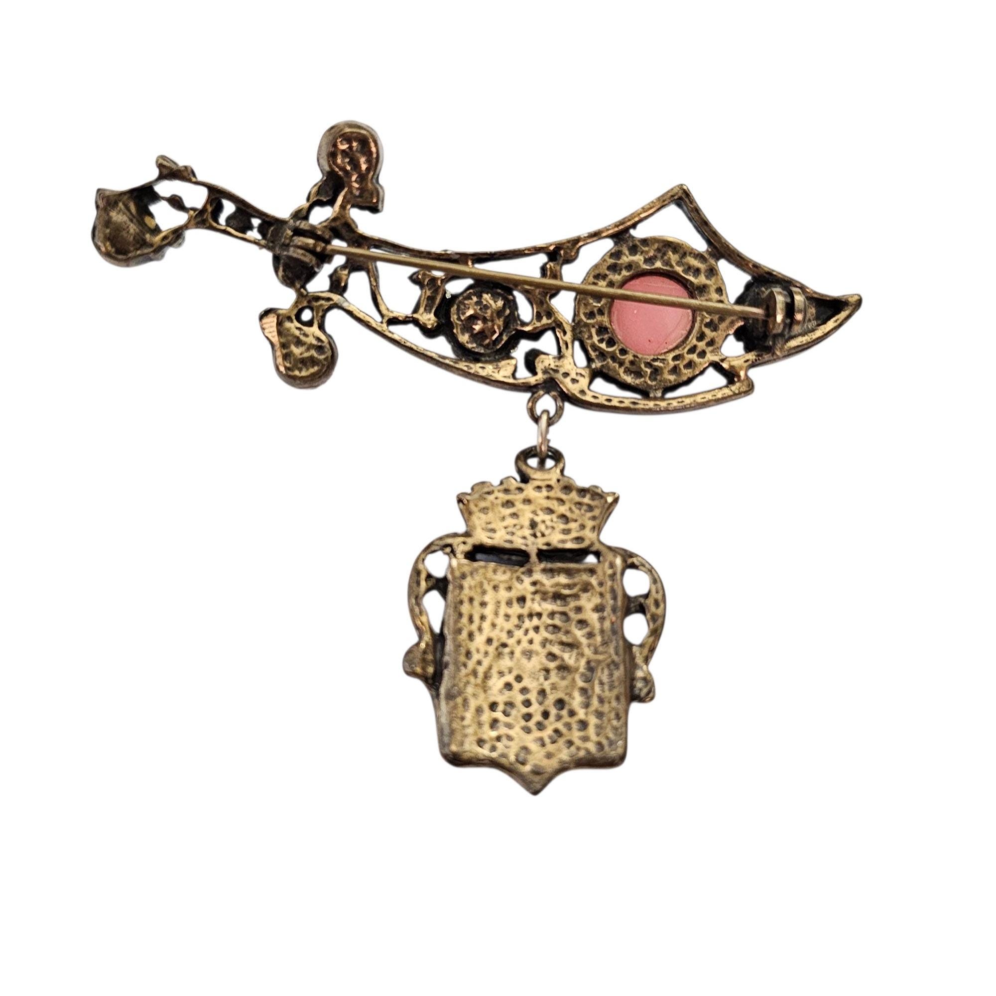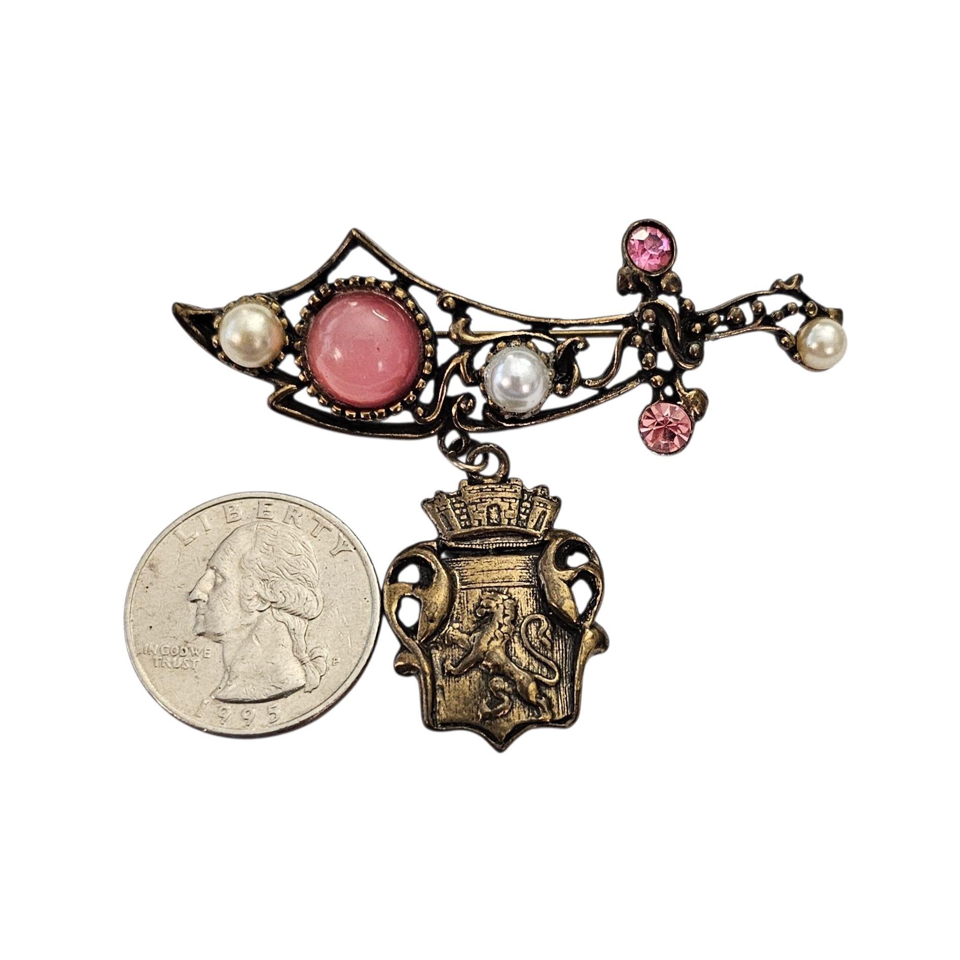 Vintage Sword Rhinestone Brooch Shield Griffith Dangle Pin, C216