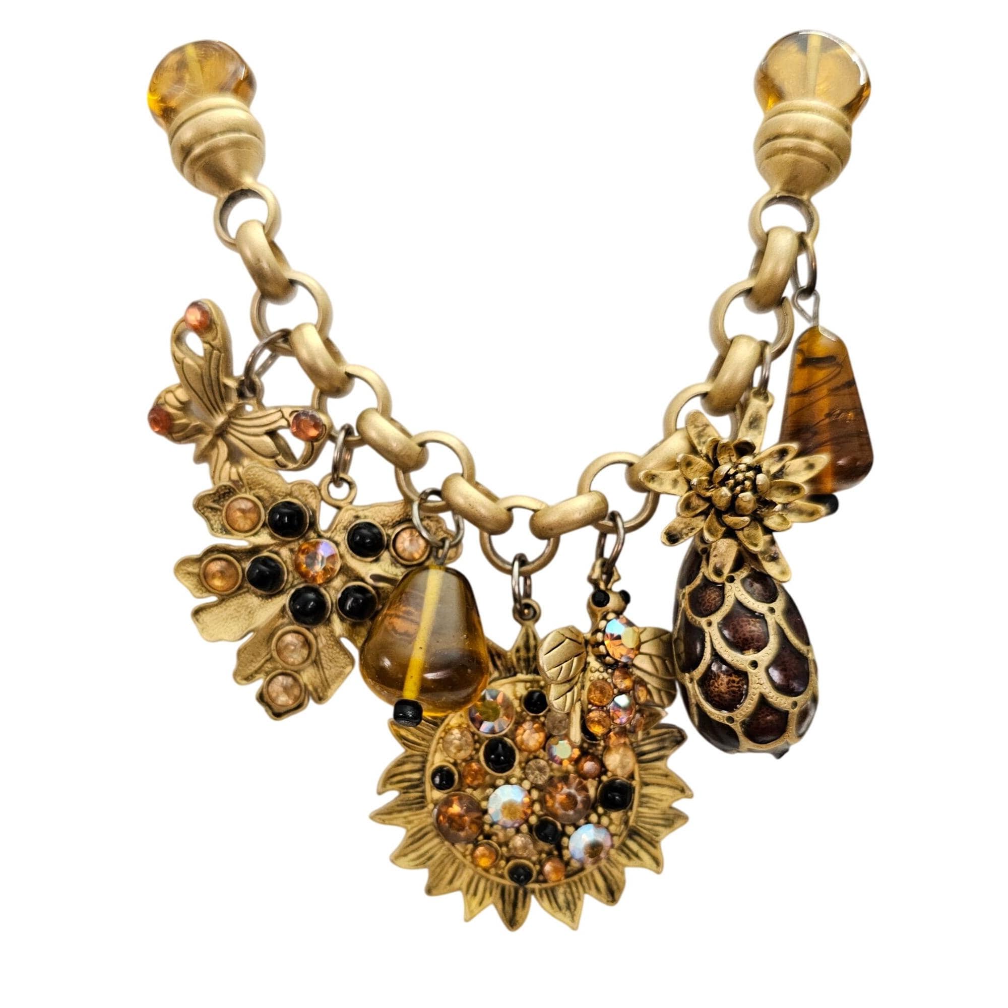 • Sunflower centerpiece, bee, butterfly, and maple leaf charm