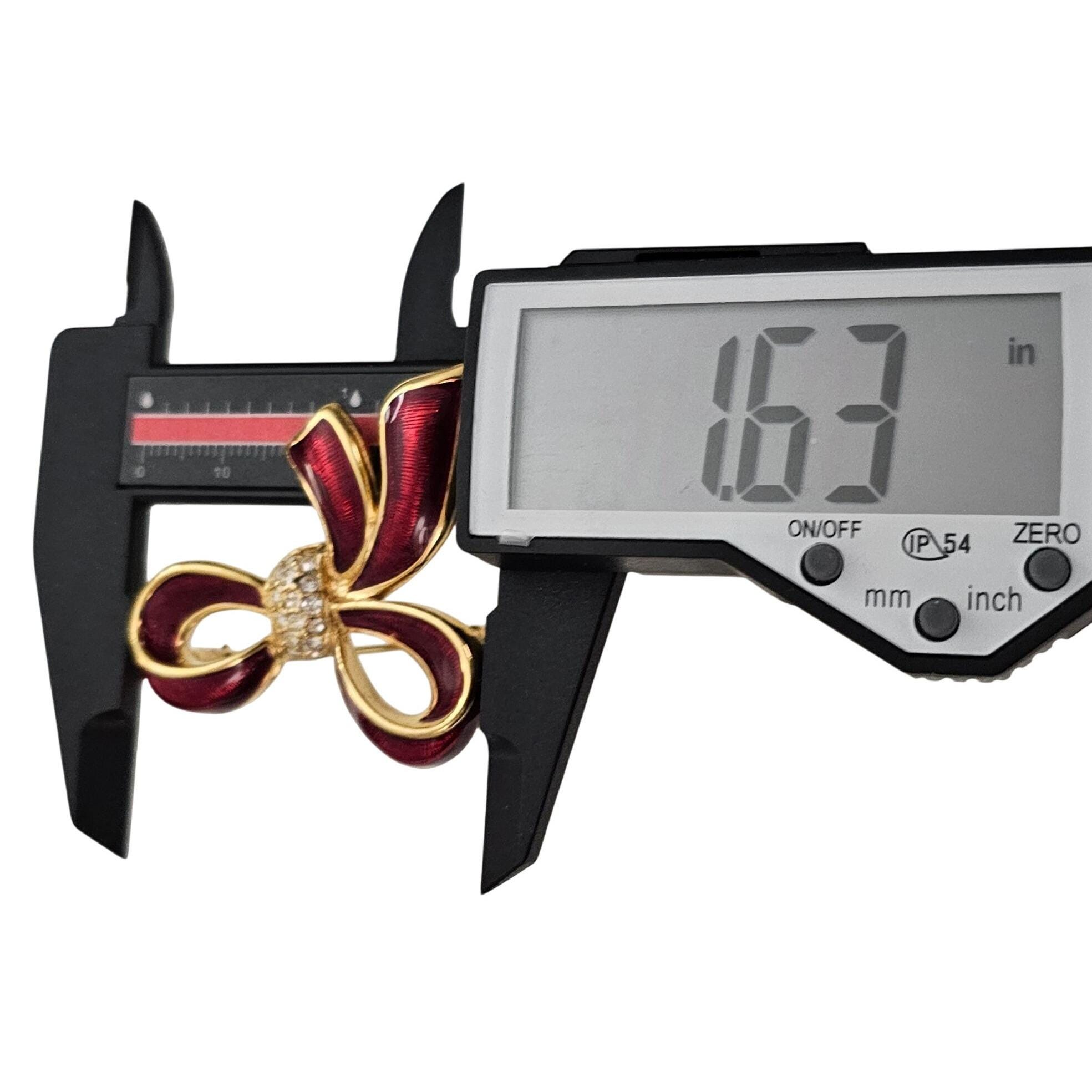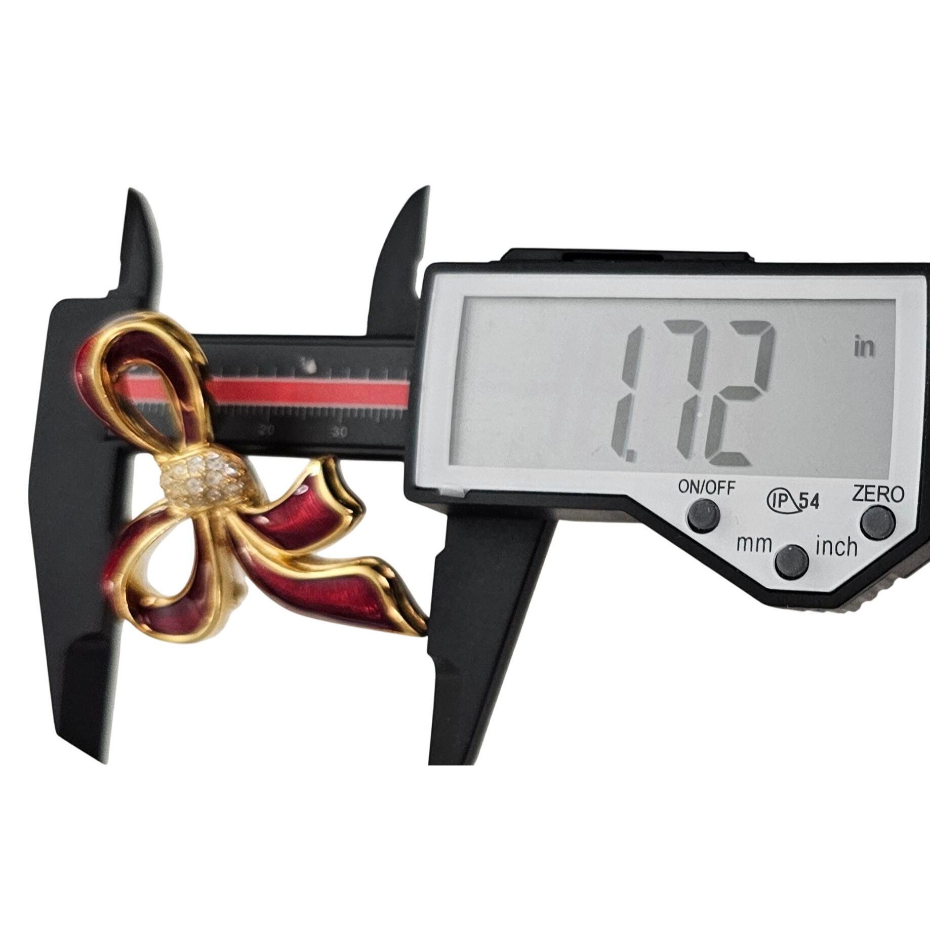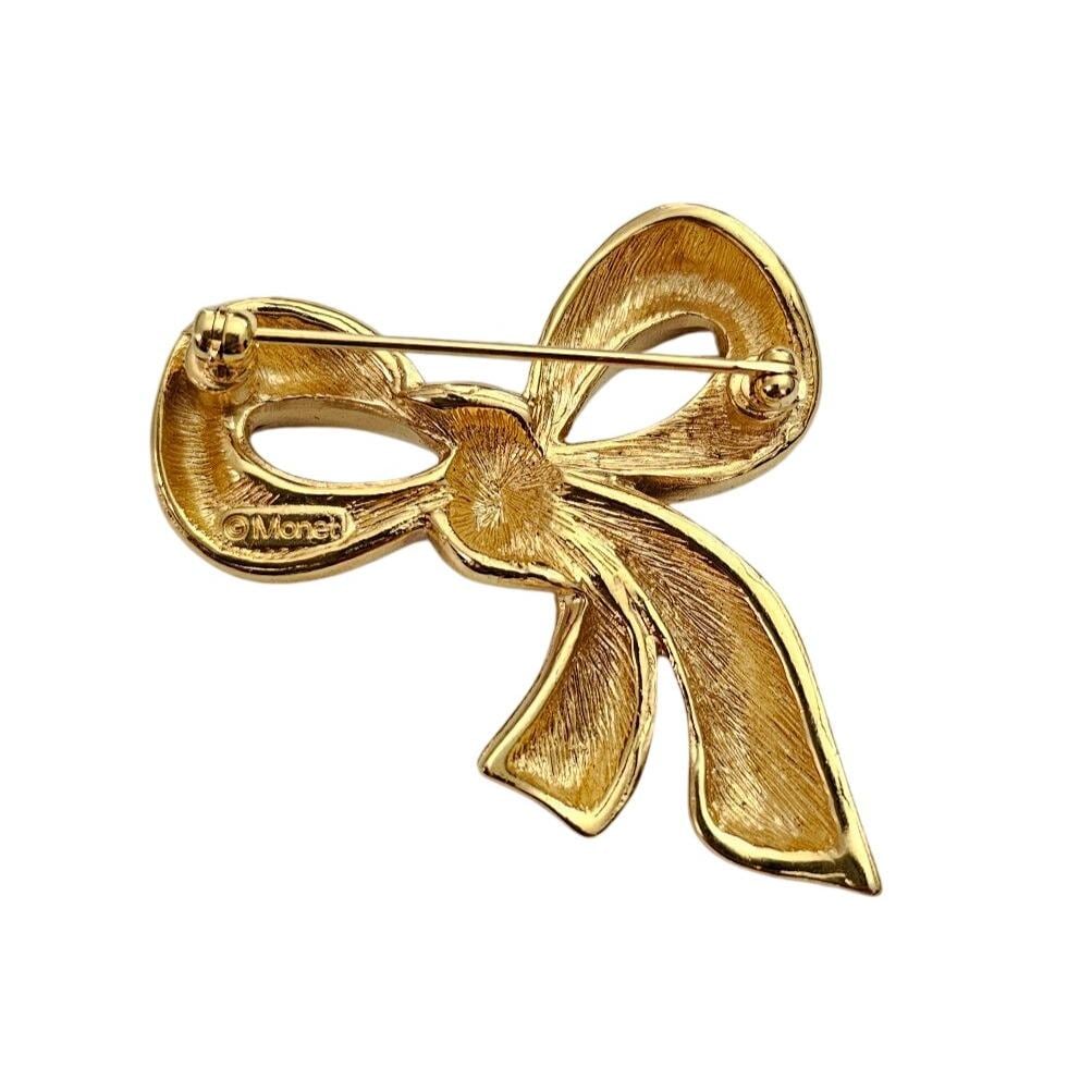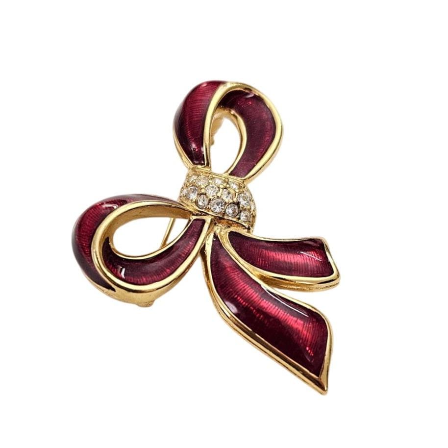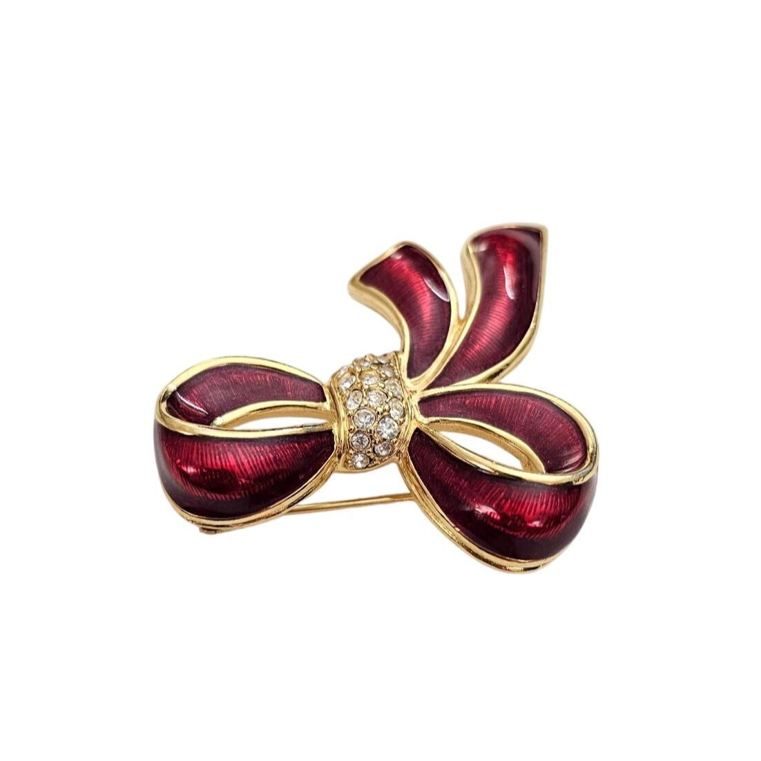 Monet Red Bow Brooch Clear Rhinestone Pin Signed, C244