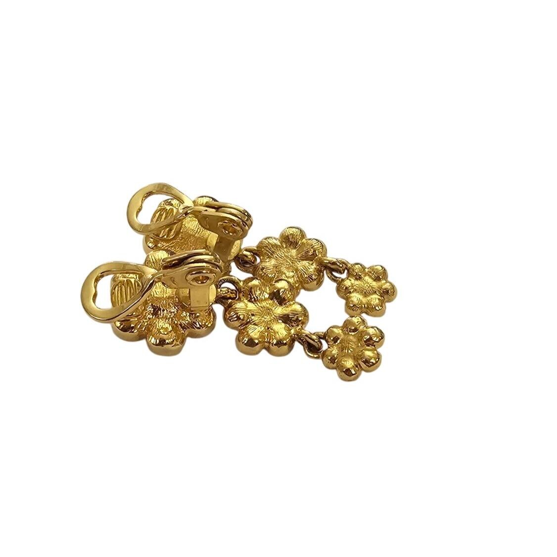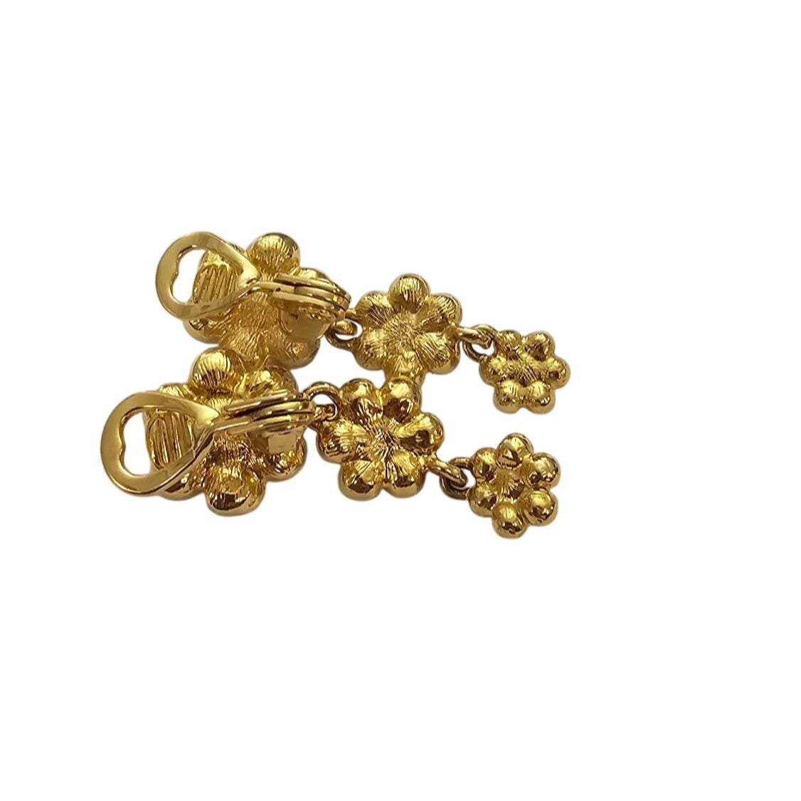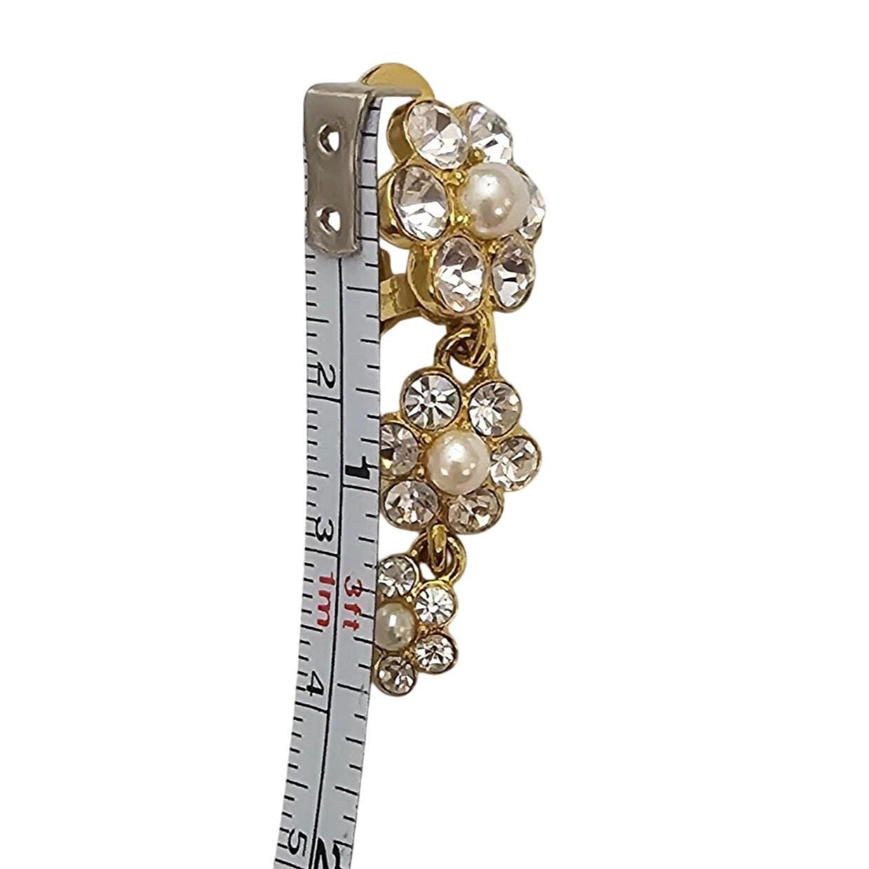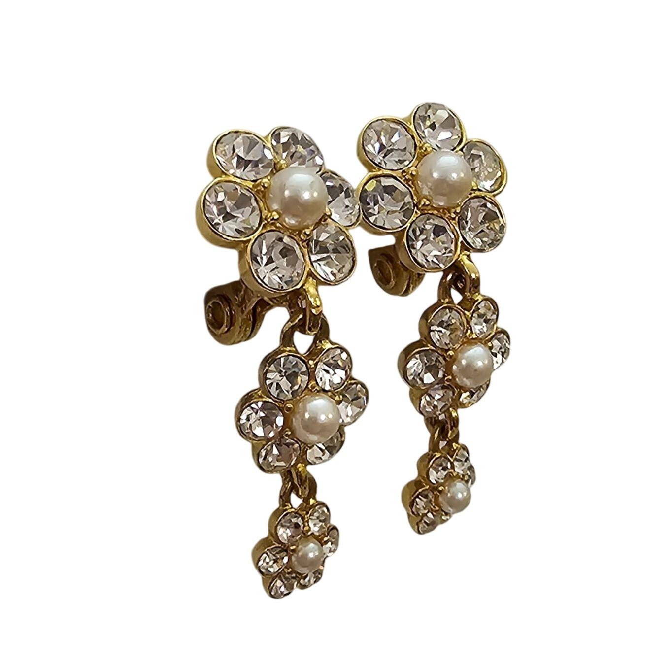 Monet Gold Tone Clip On Clear Rhinestone Faux Pearl Flower Charm Dangle Earrings, C234