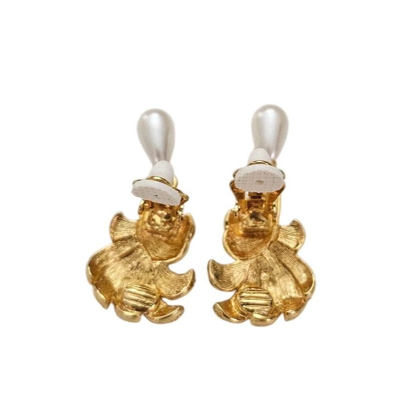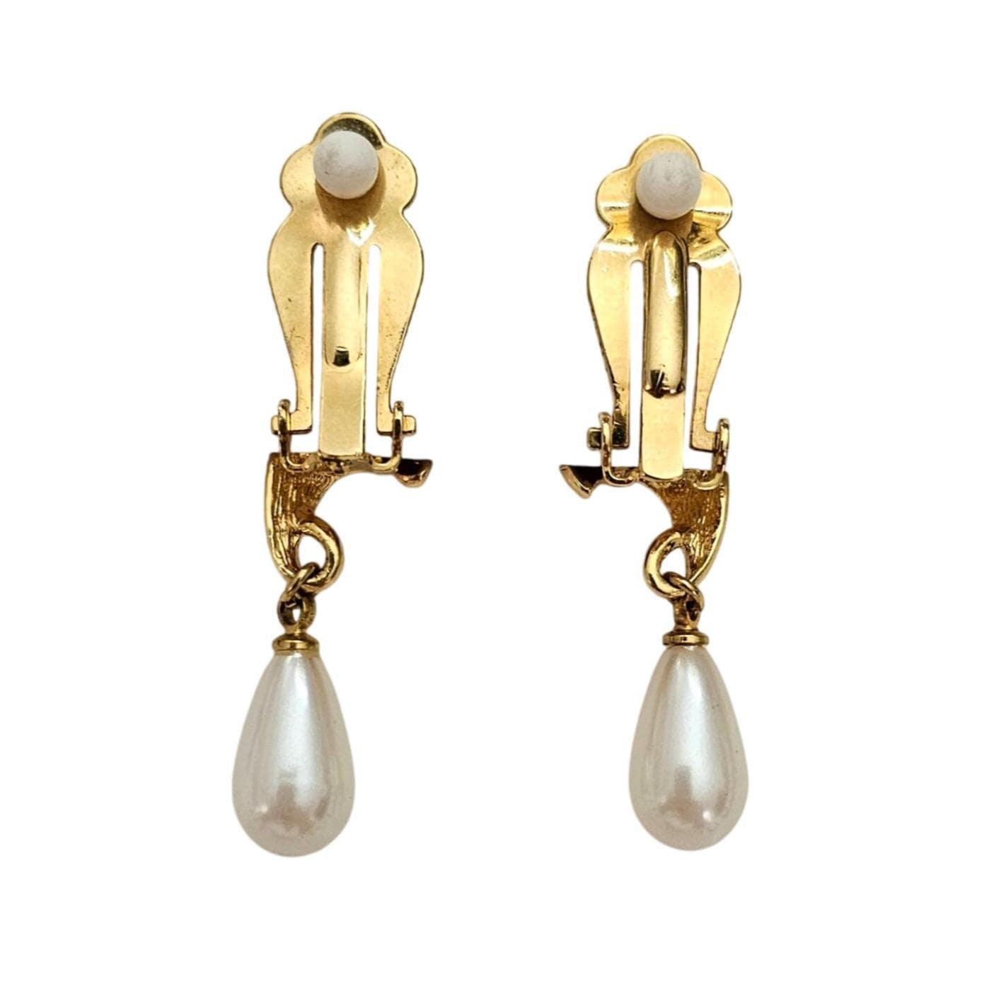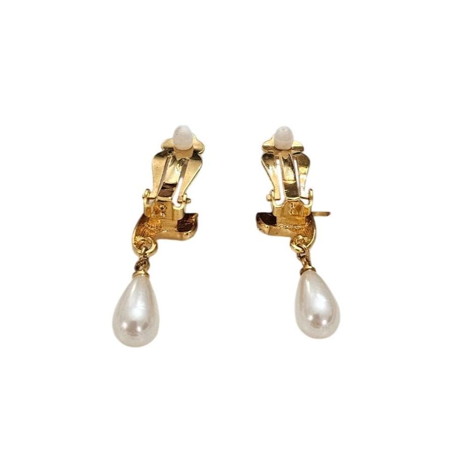 • Gold Tone Faux Pearl Drop Dangle Clip On Earrings