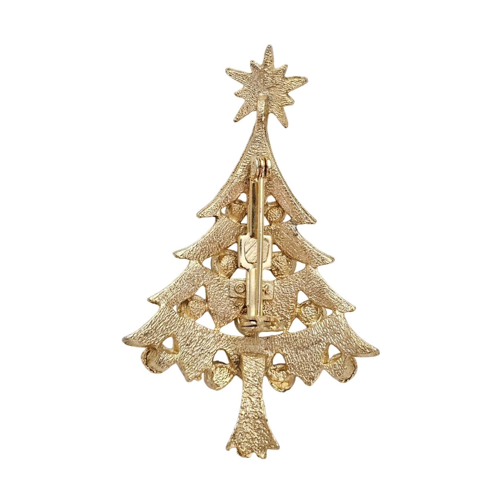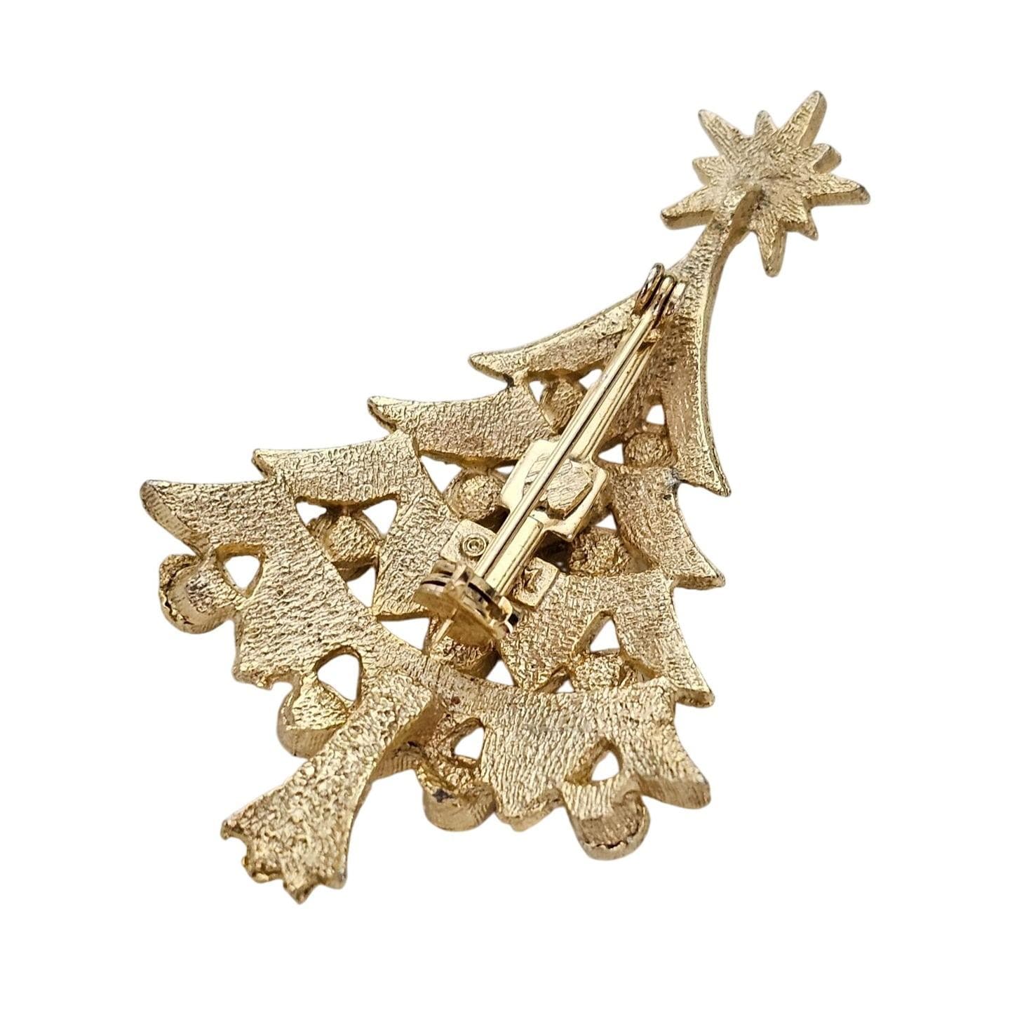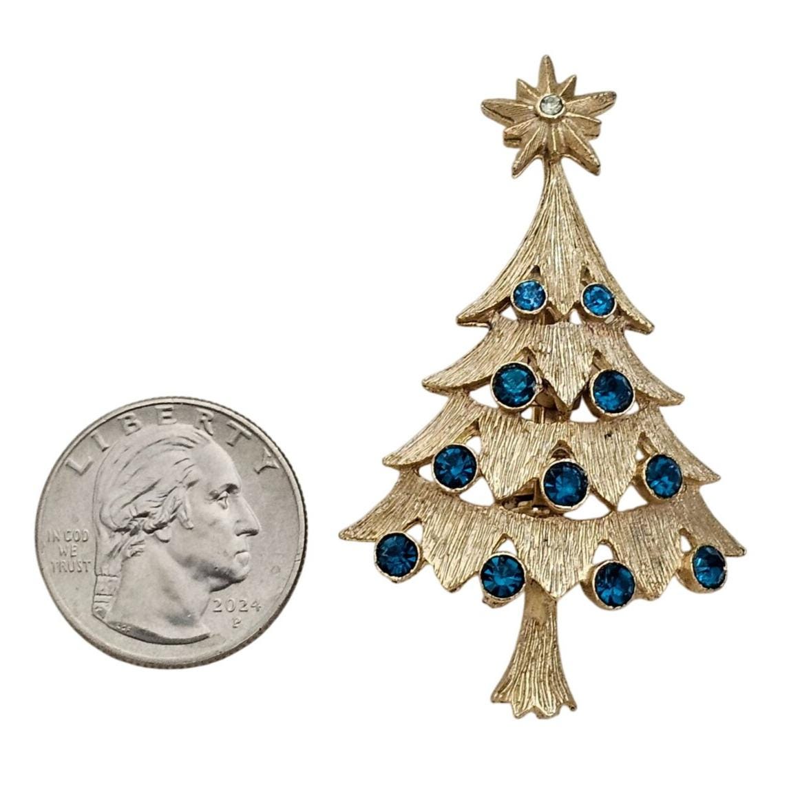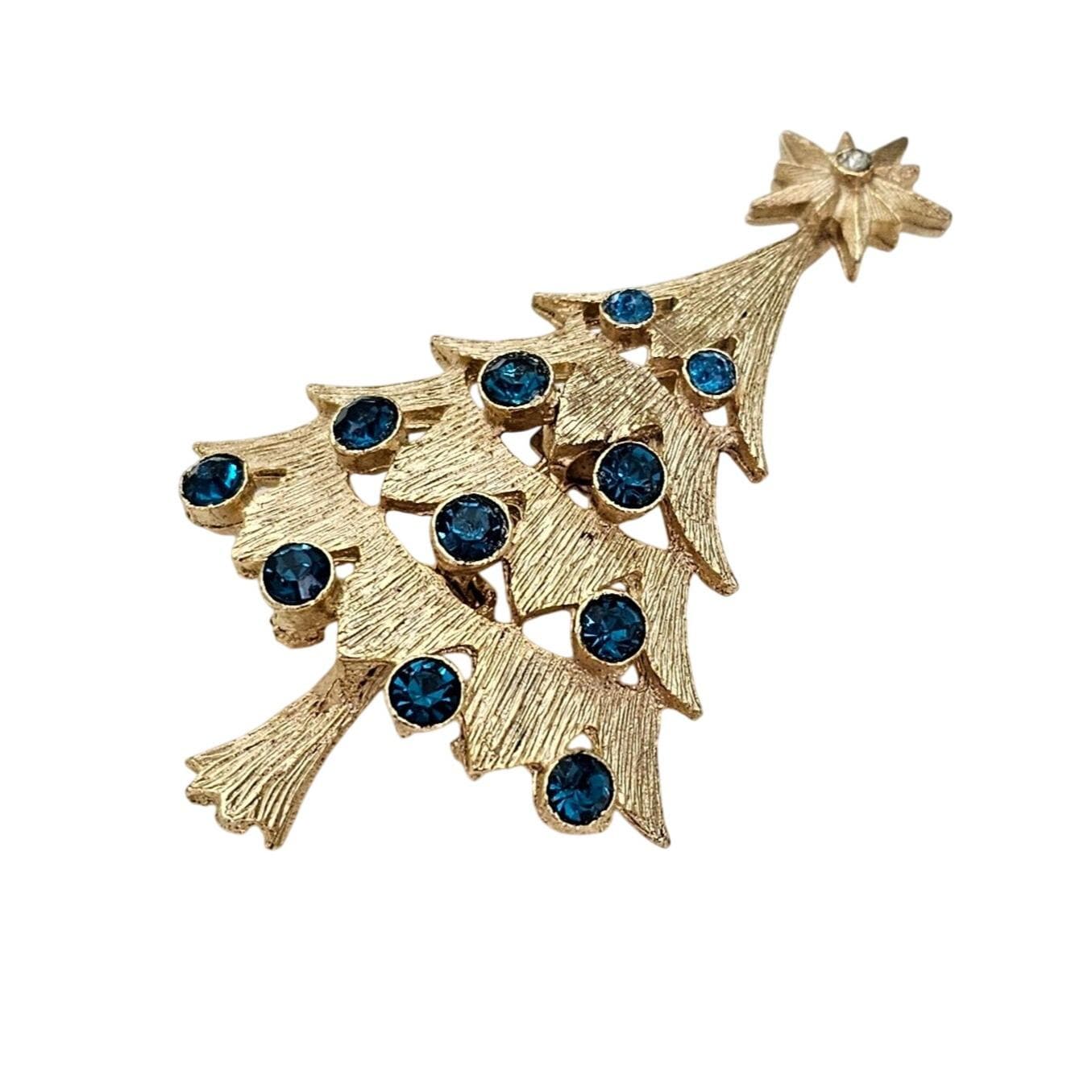 Gold Tone Robin's Egg Blue Rhinestones Christmas Tree Brooch, C256