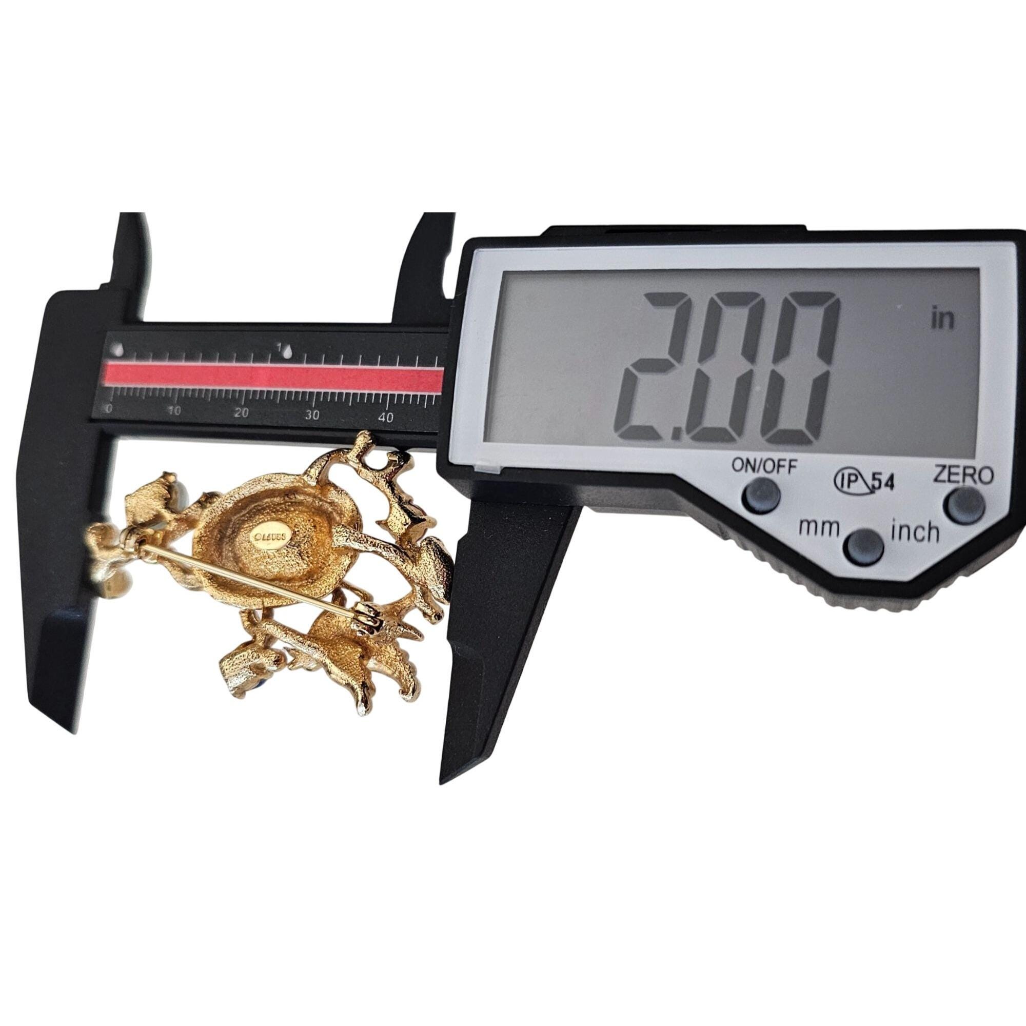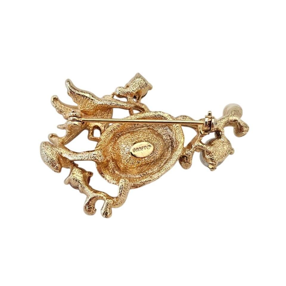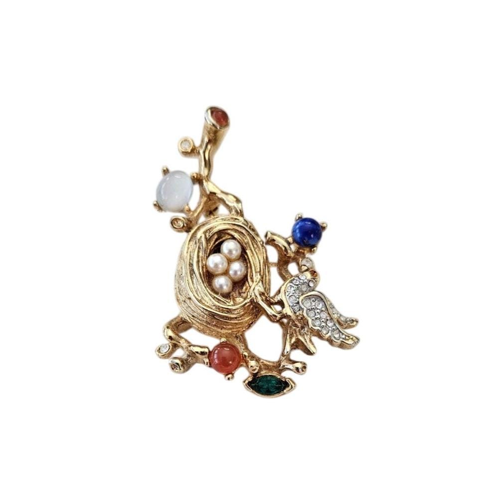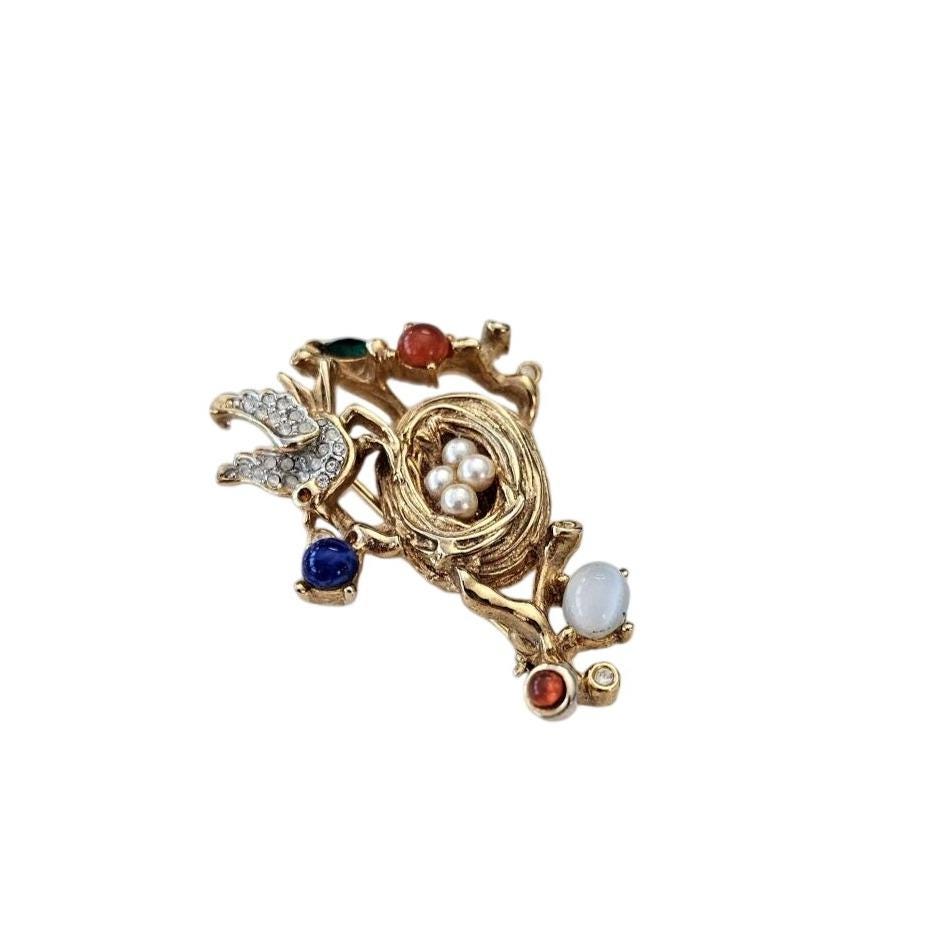 Craft Bird Brooch, Eggs Nest Rhinestone Pin Signed, C251