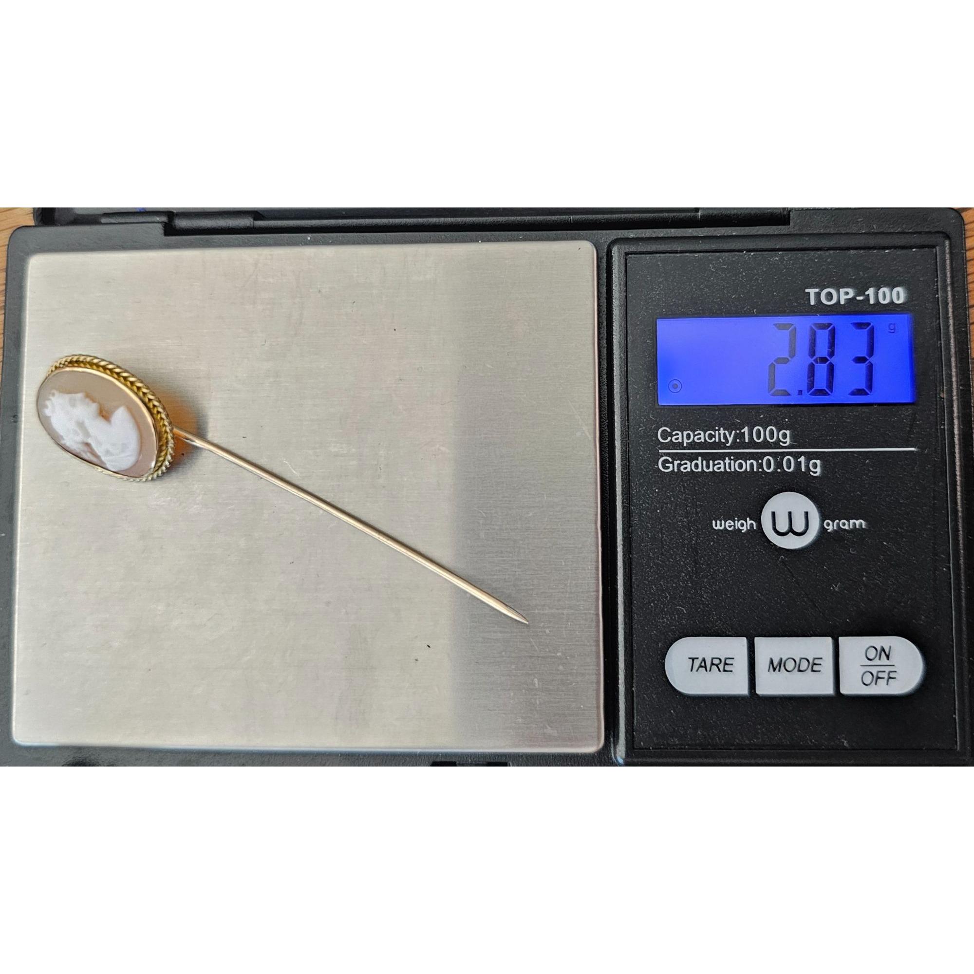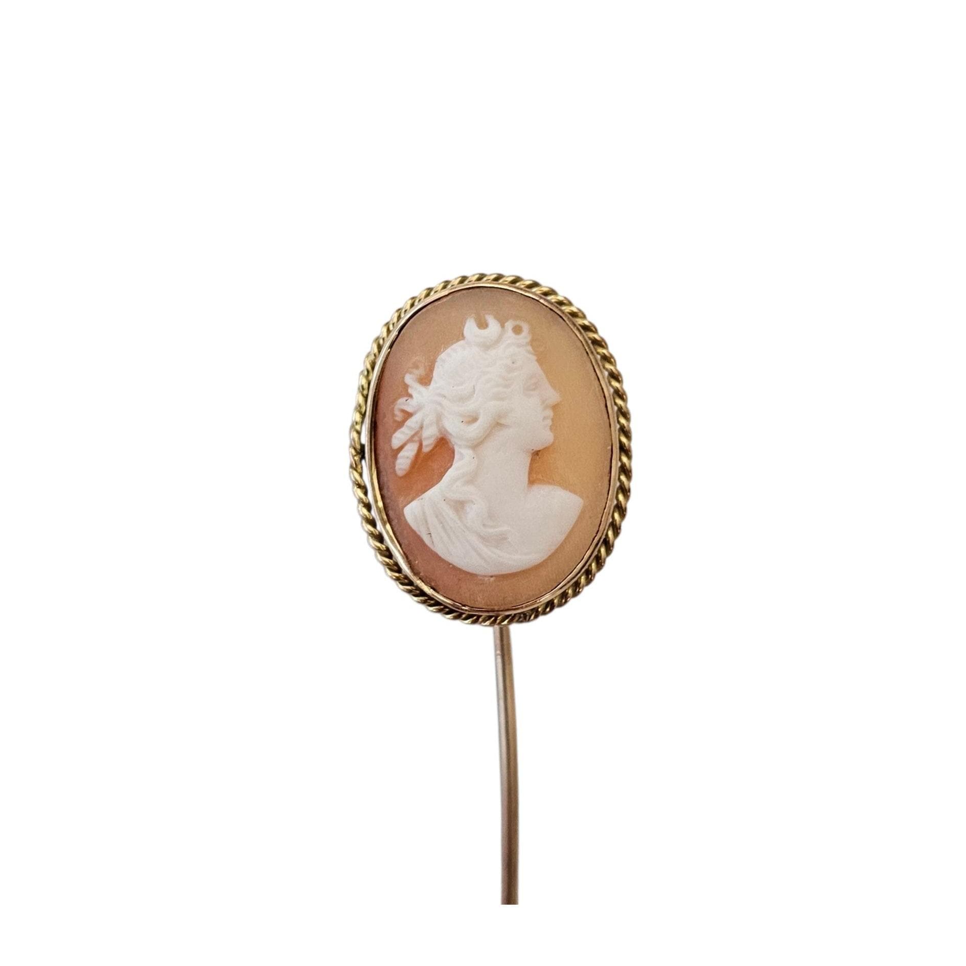 10K Yellow Gold Cameo Stick, Lapel Cameo Pin C275