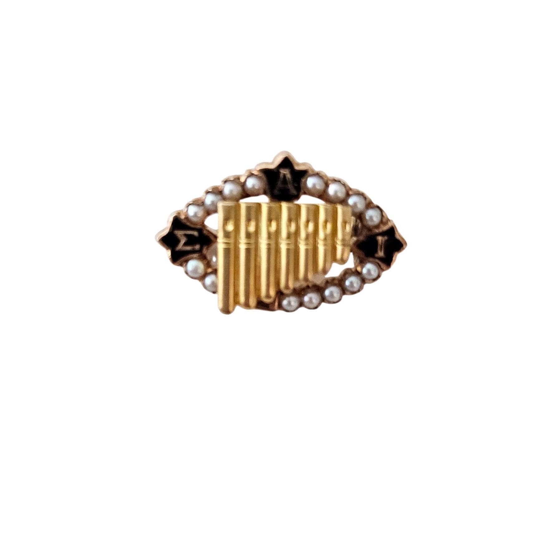 Sigma Alpha Iota Sai Pan Flute Music Fraternity Pin 10K Gold Pearl Pin C292