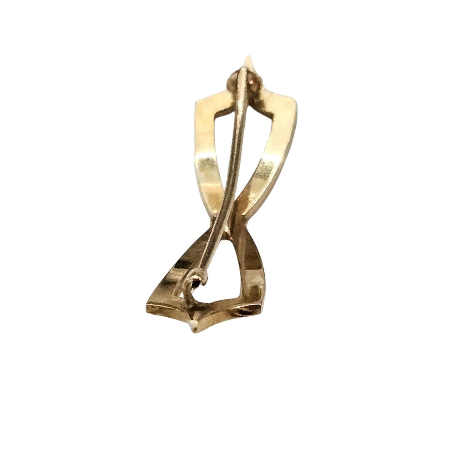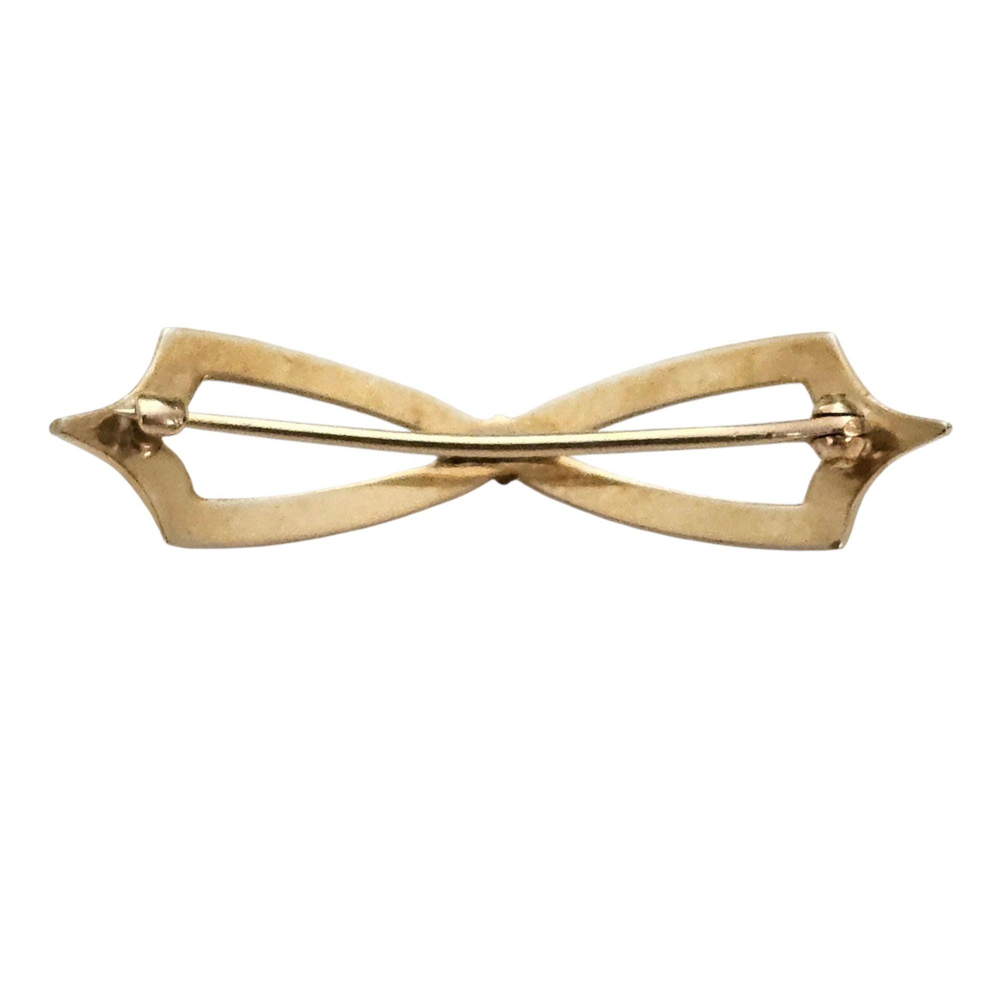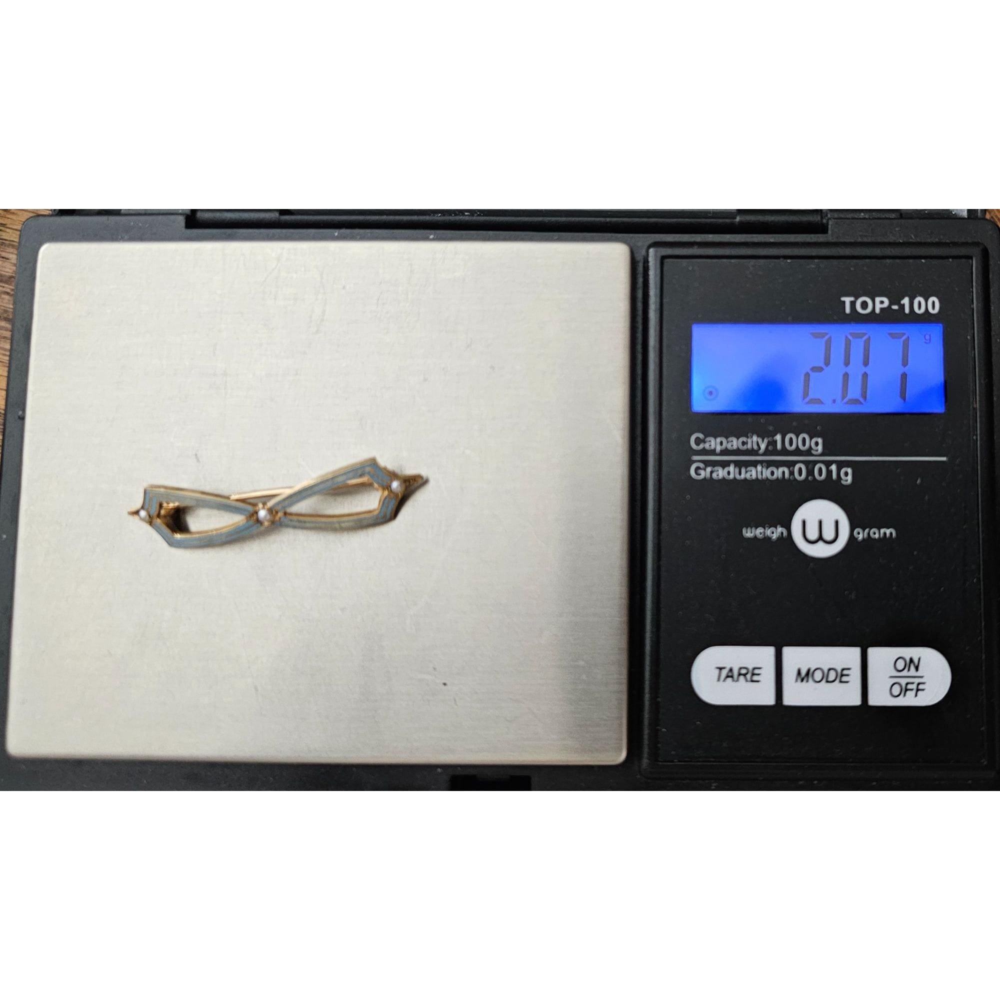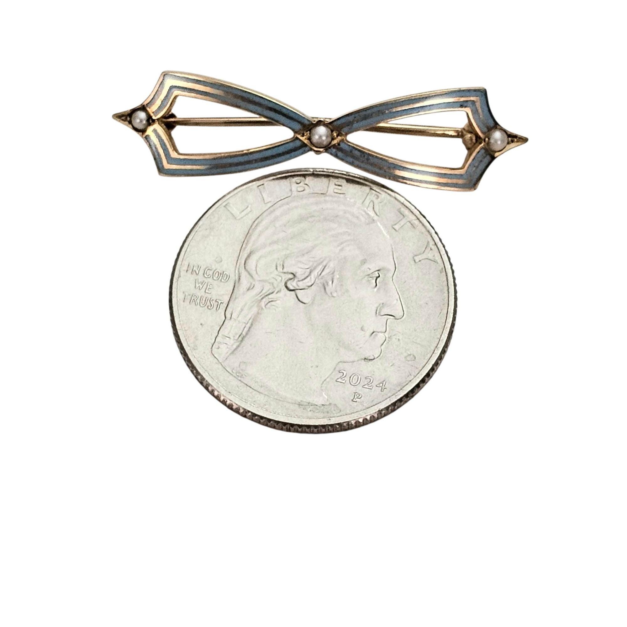 14K Yellow Gold Victorian Bow Brooch Blue Enamel, Pearls Pin C-Clasp C287