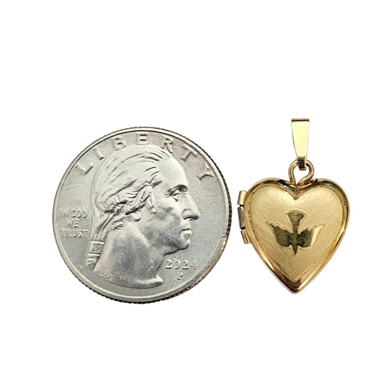 14K Gold Filled Heart Locket Pendant Dove Design C301
