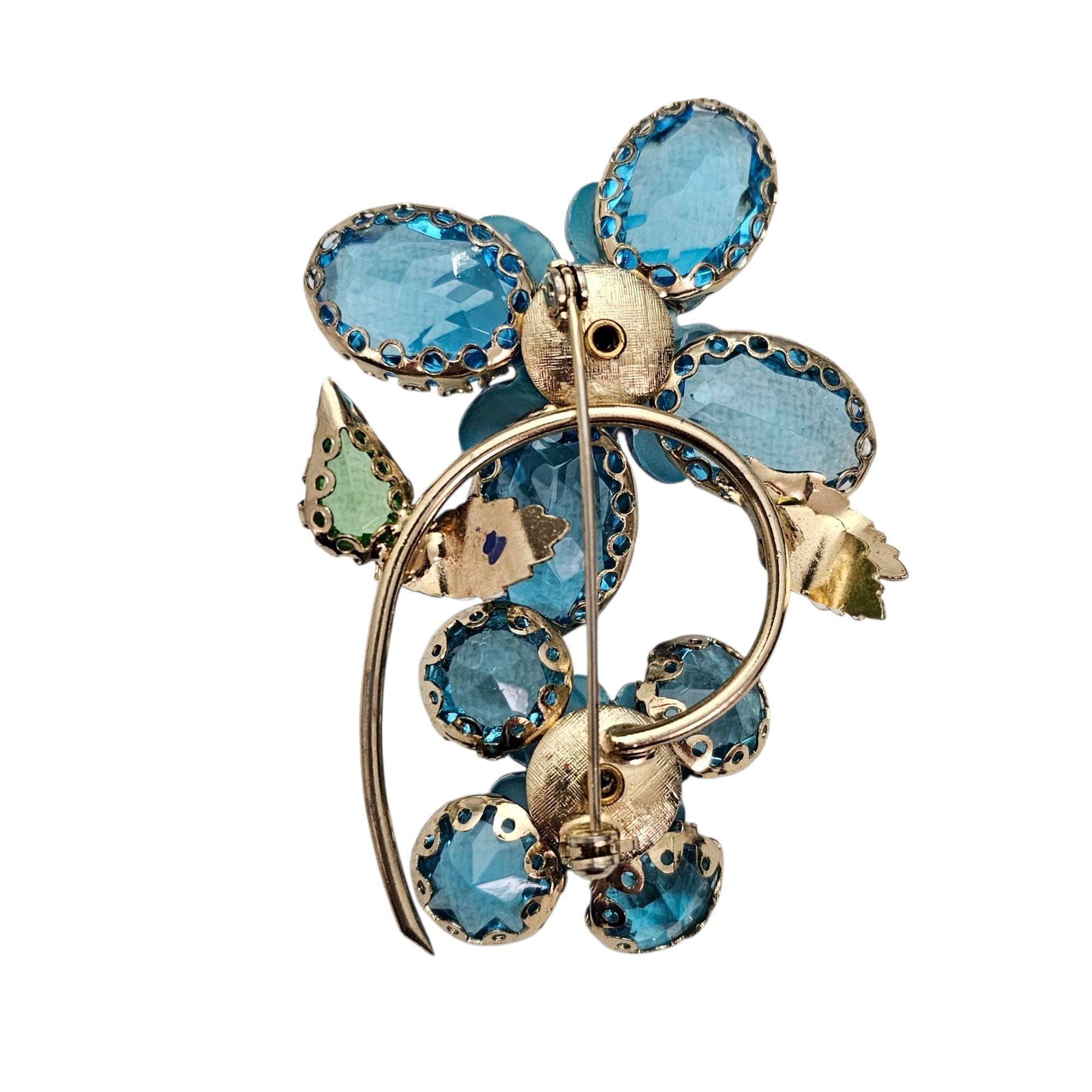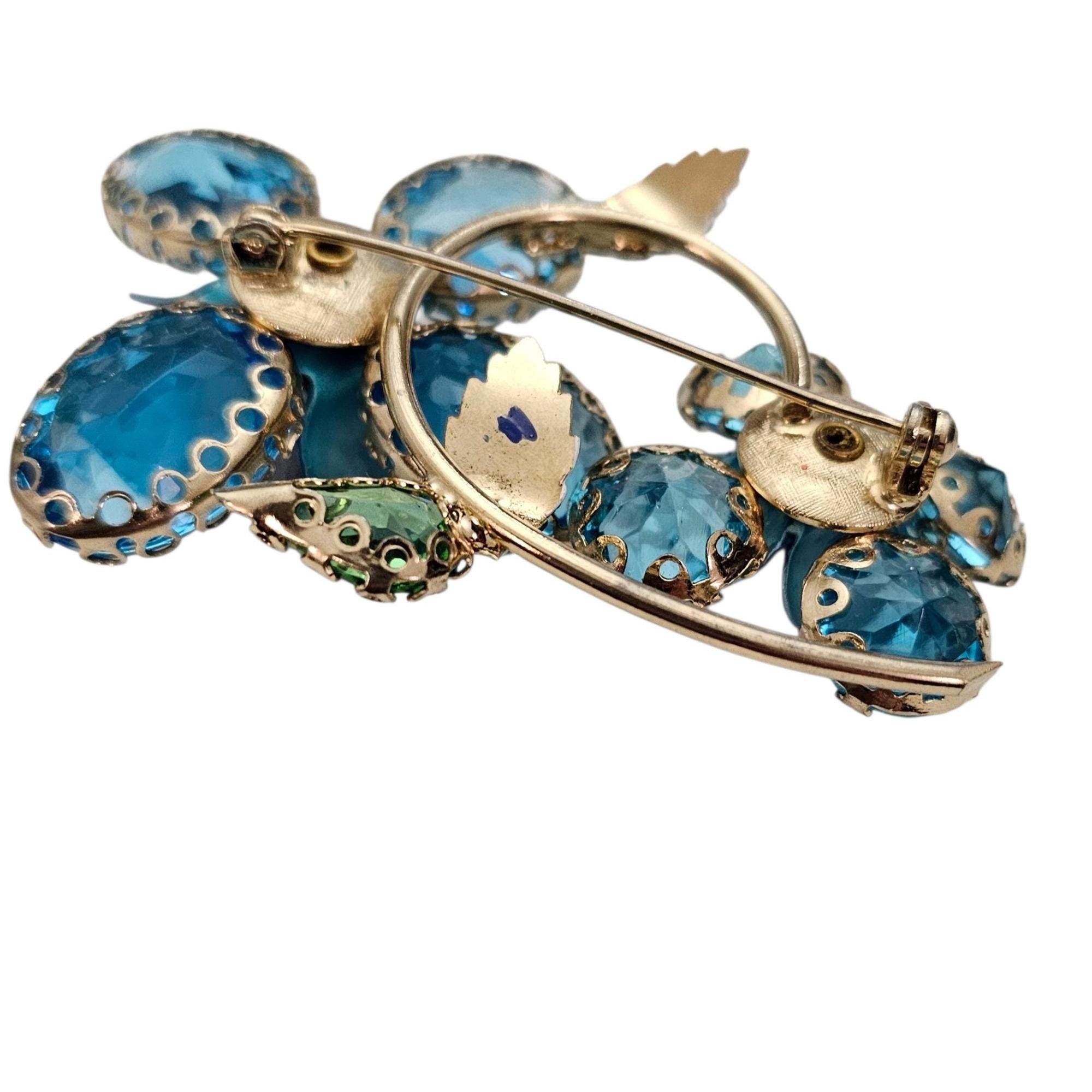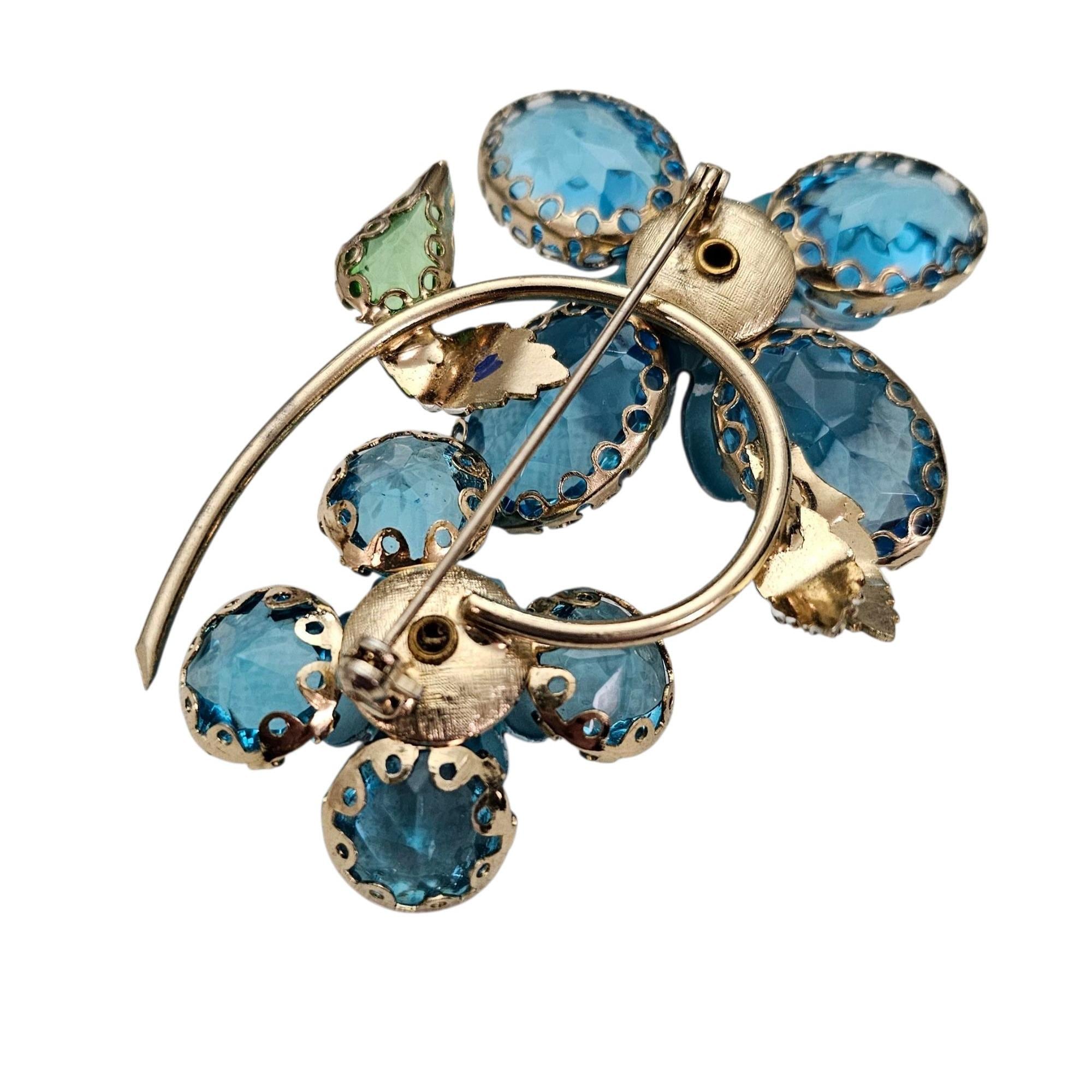 Blue Enamel And Caged Rhinestone Flower Brooch C316