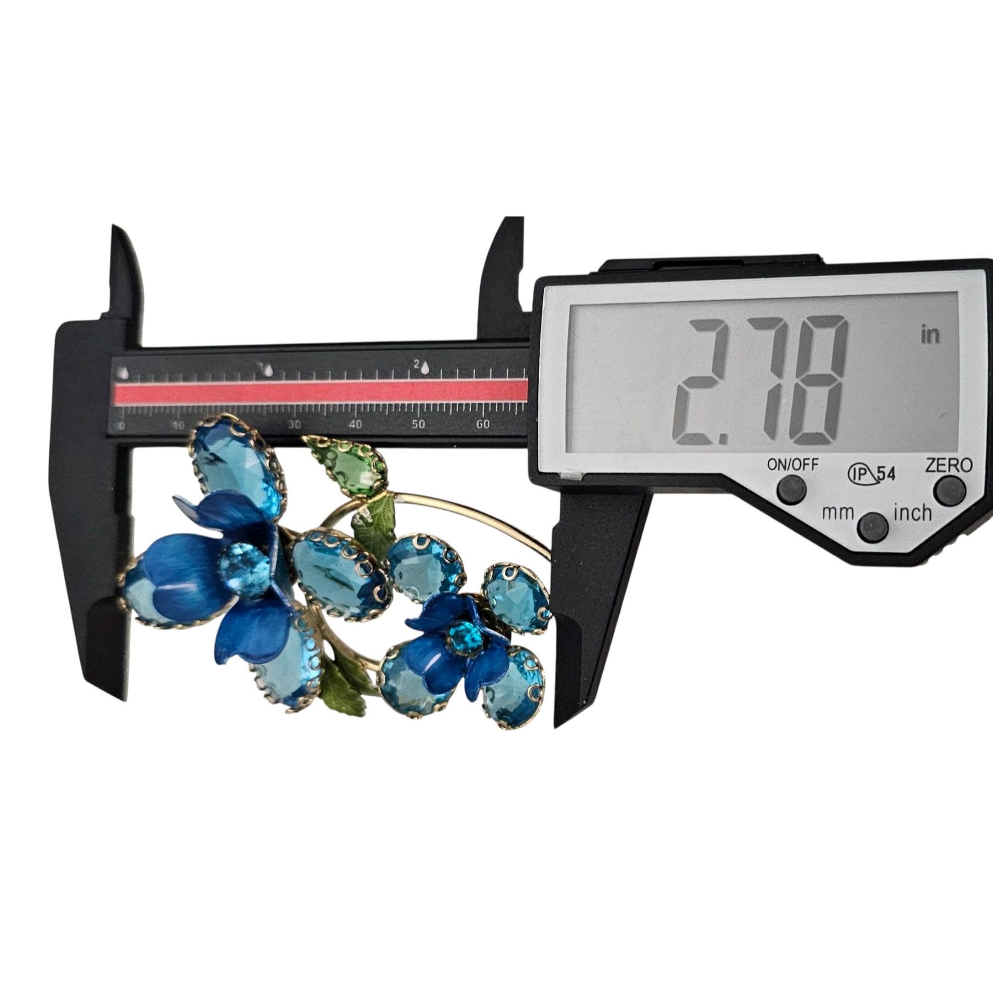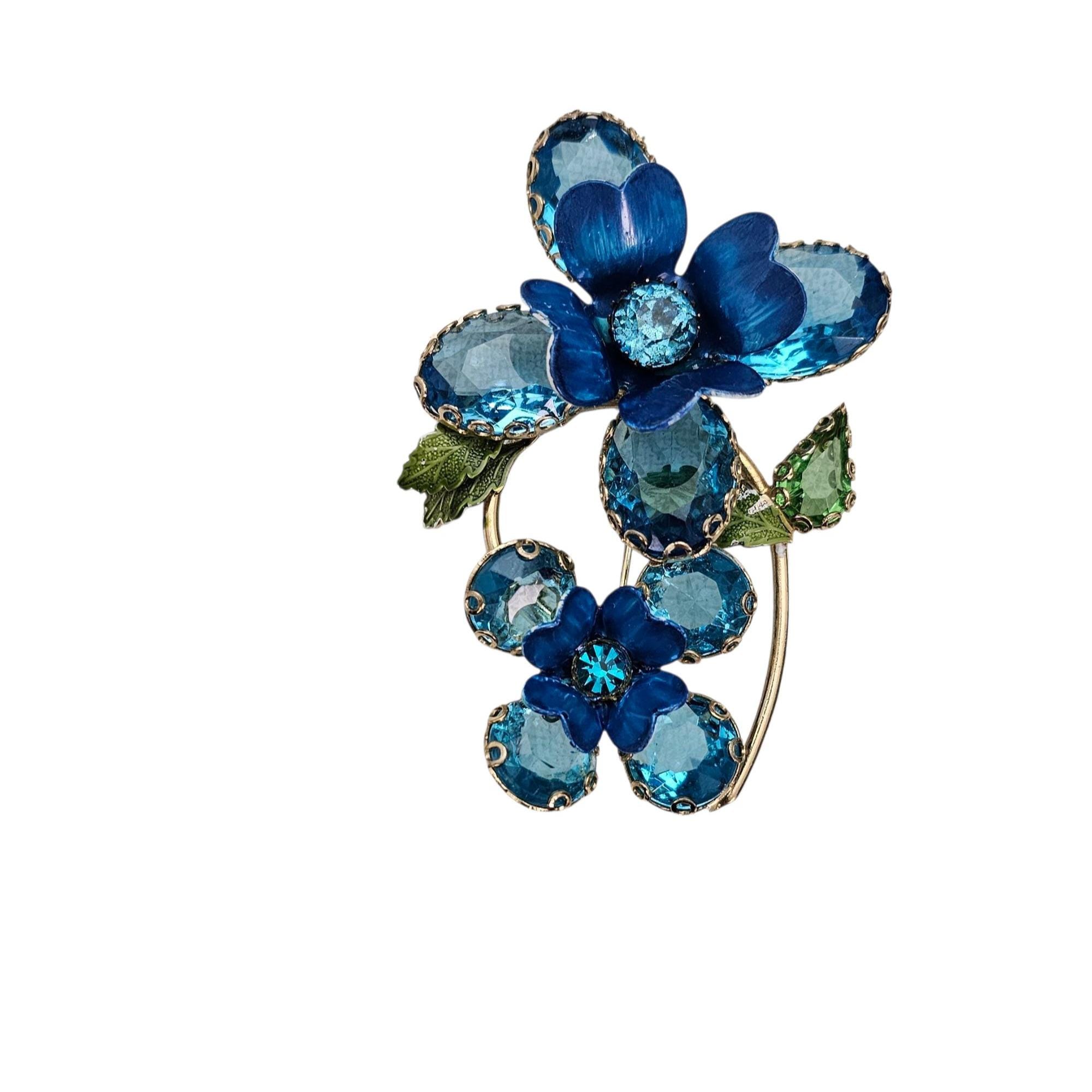 • Blue Enamel Rhinestone Petals Flower Brooch