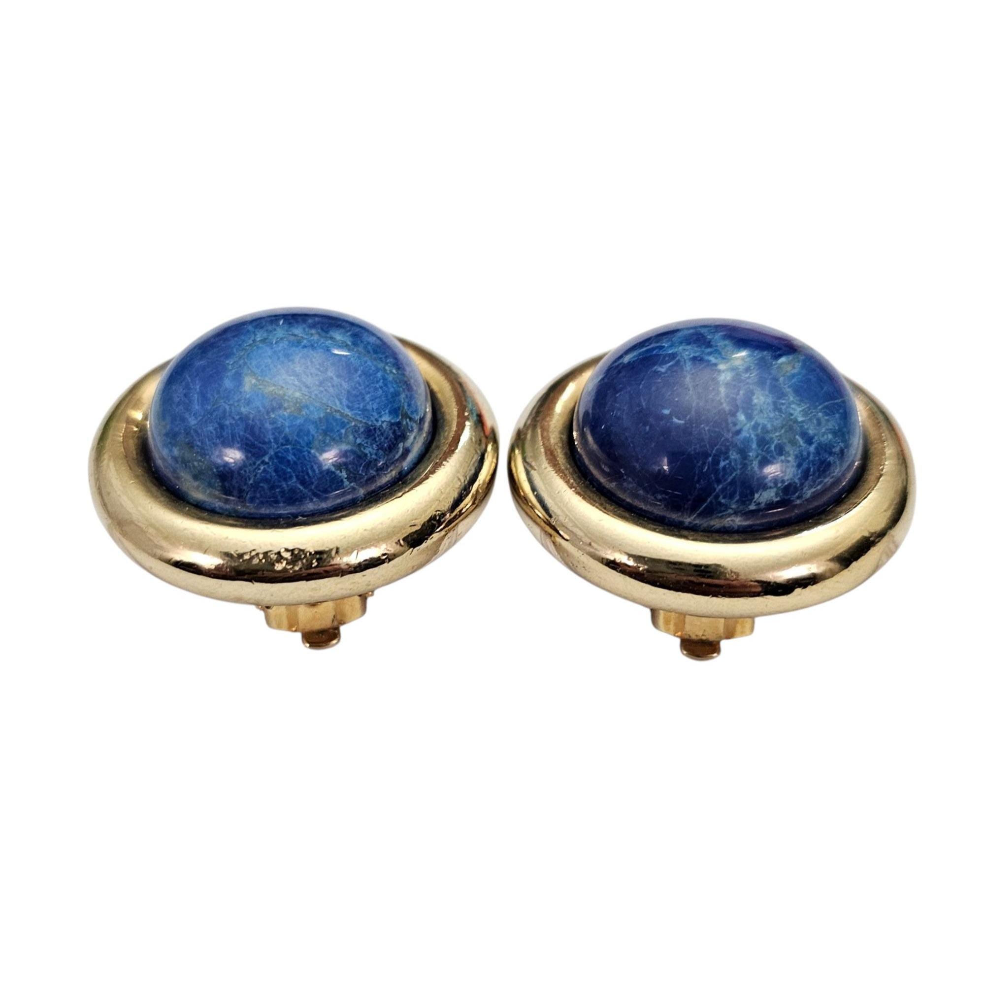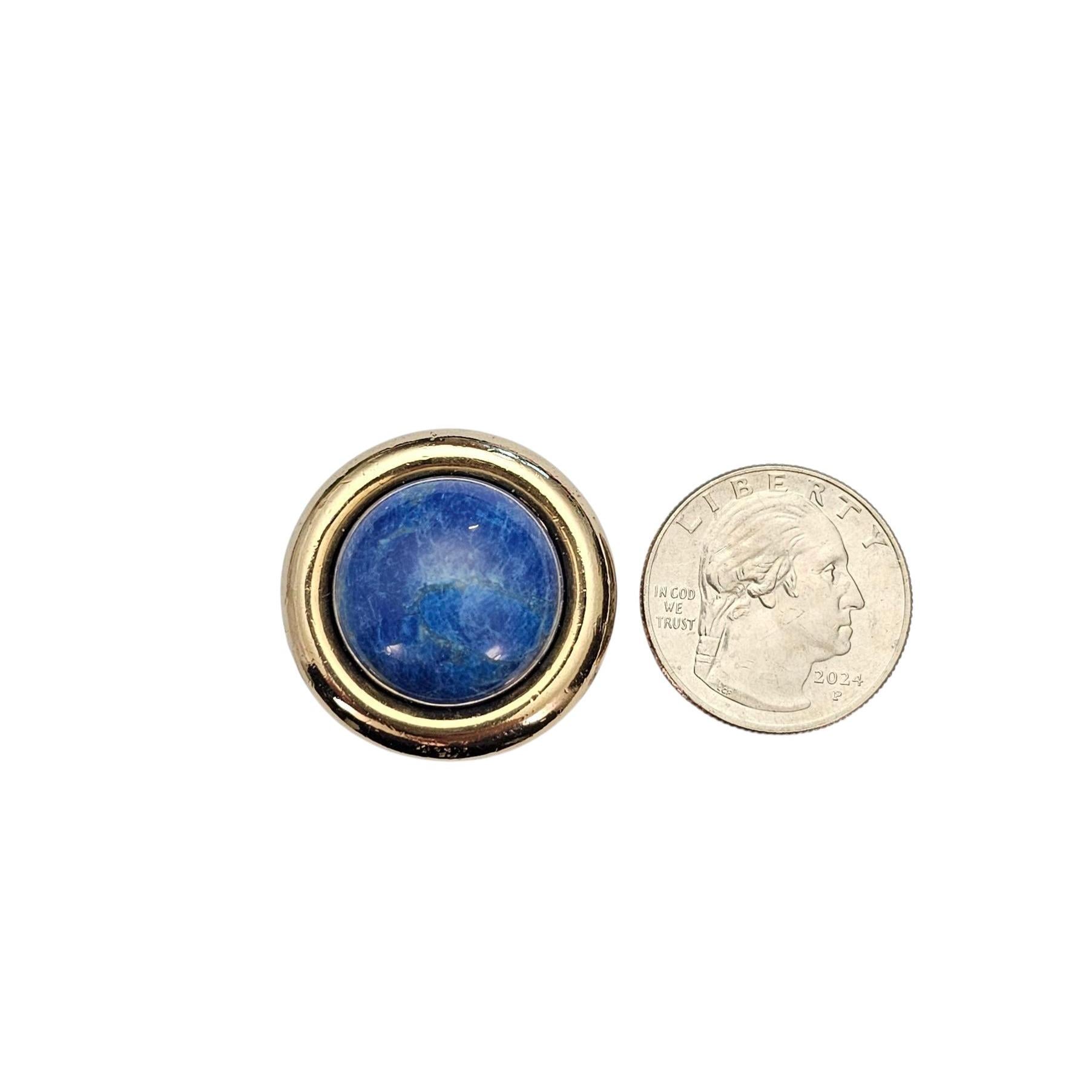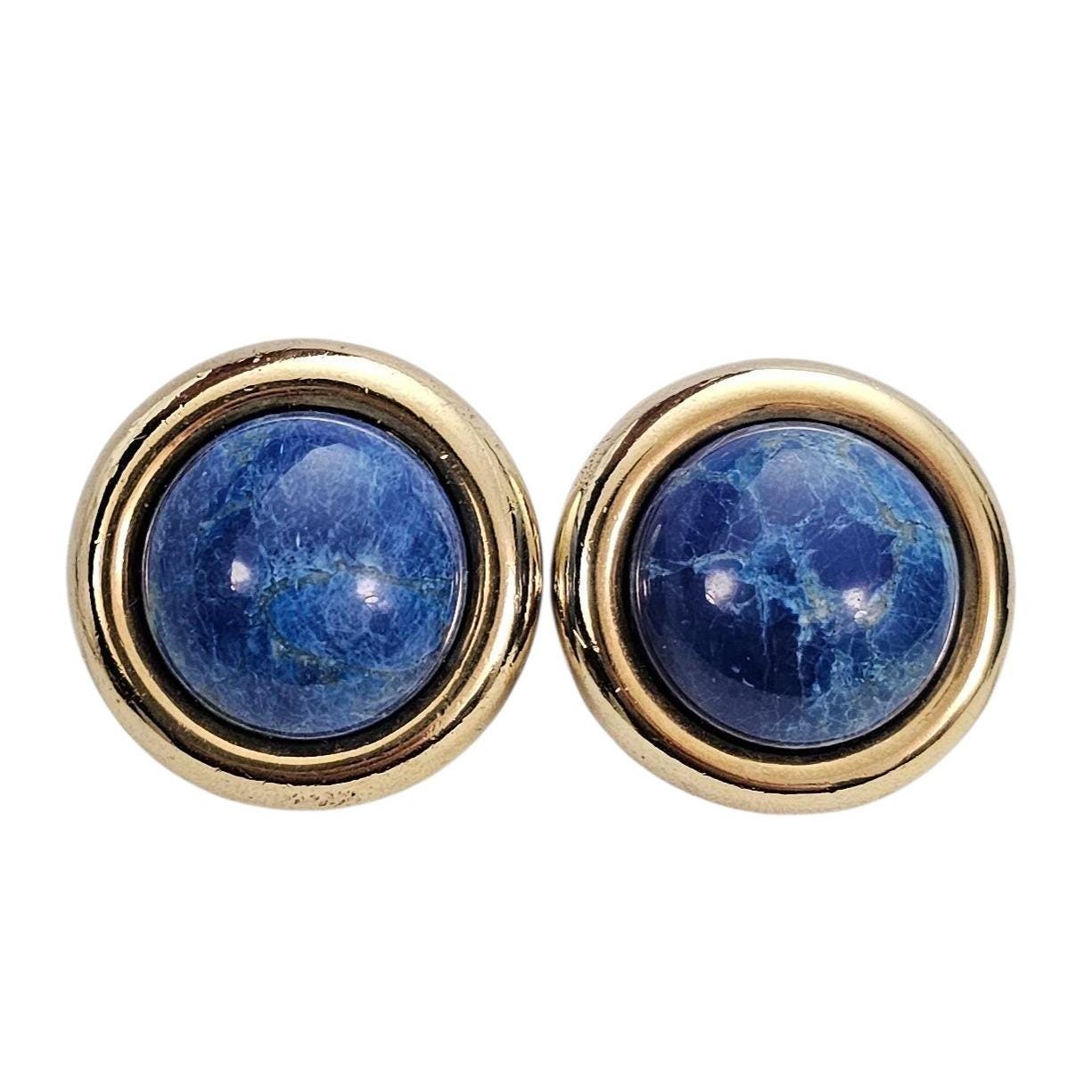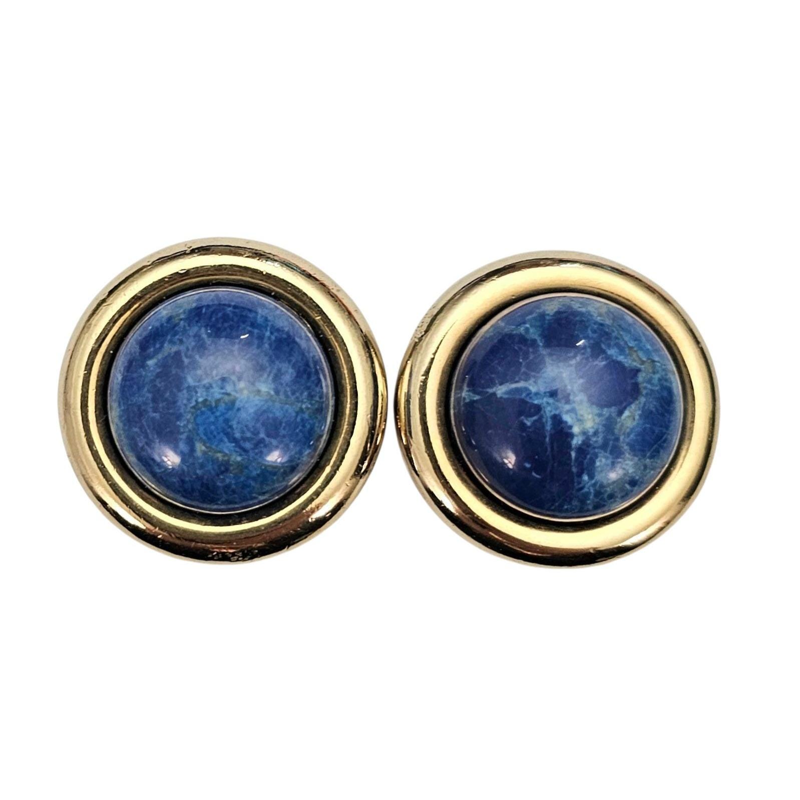 Gold Tone Blue Marbled Stone Clip On Earrings C308