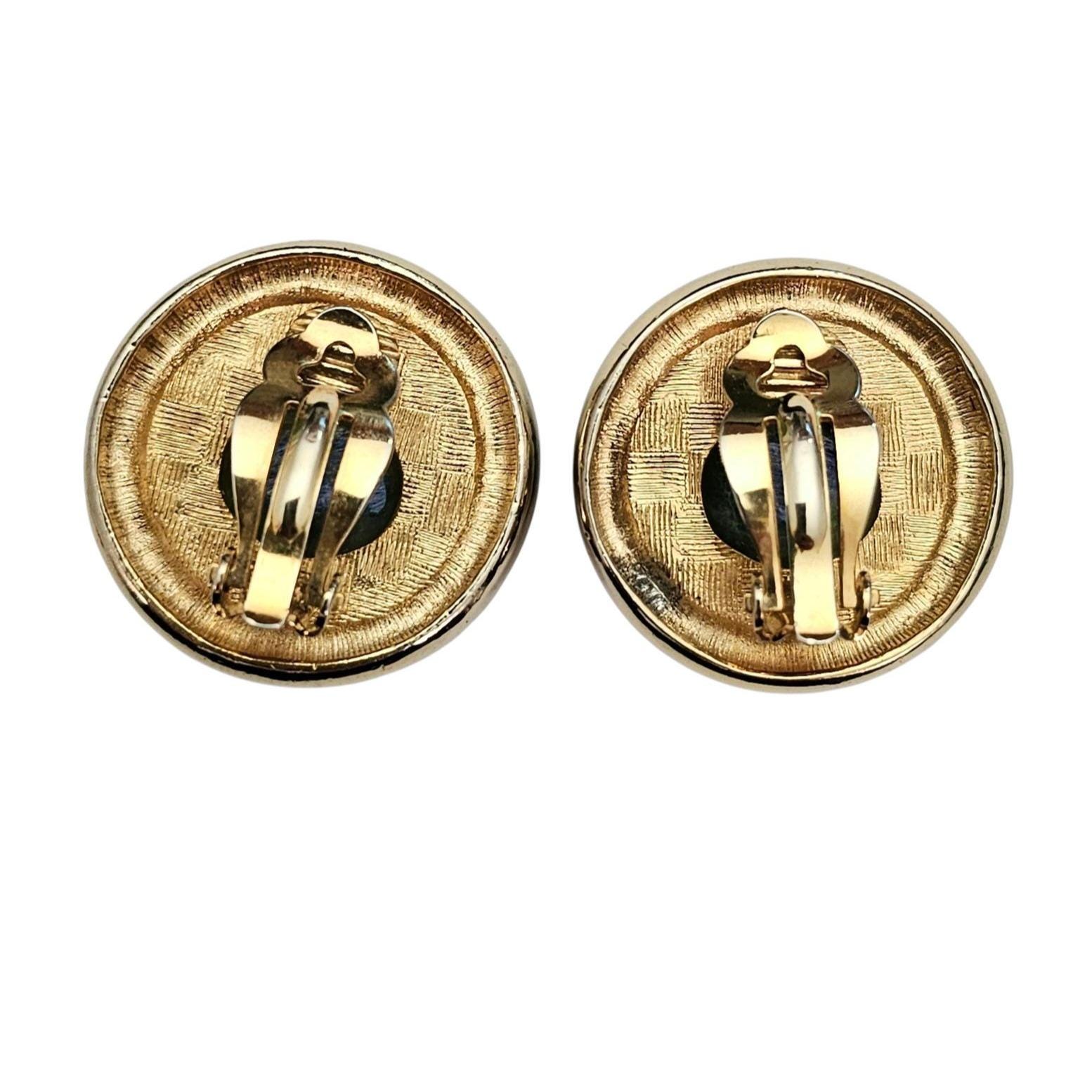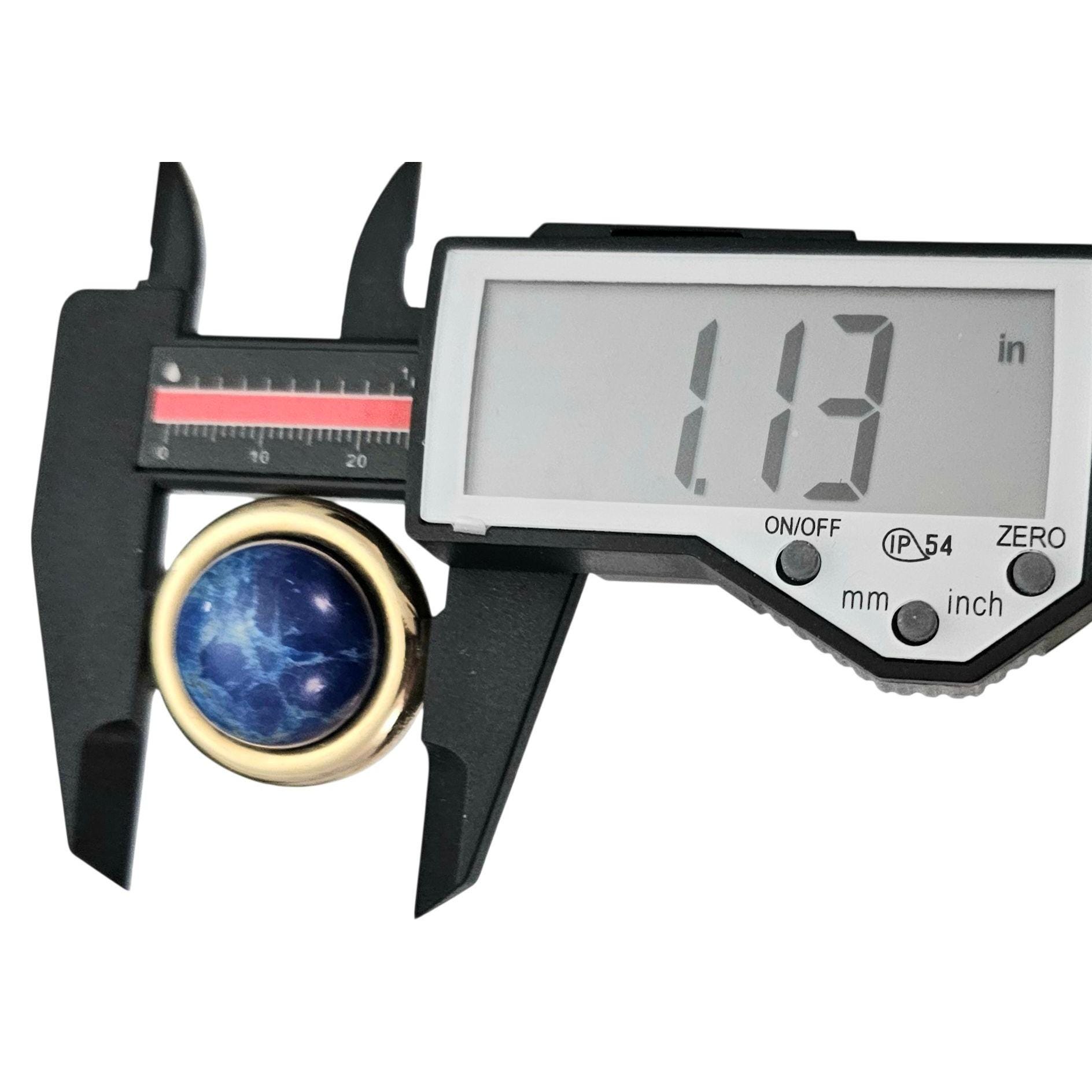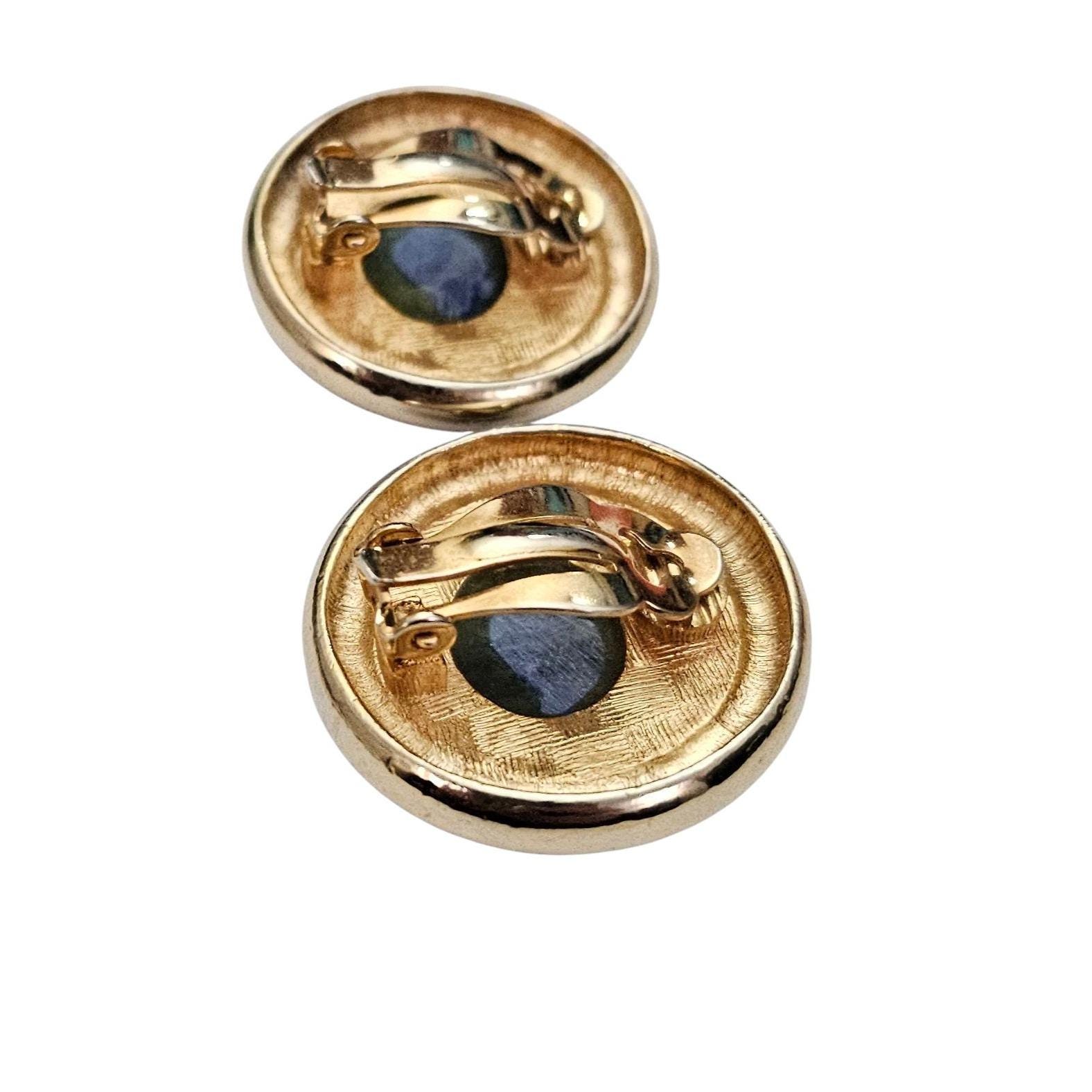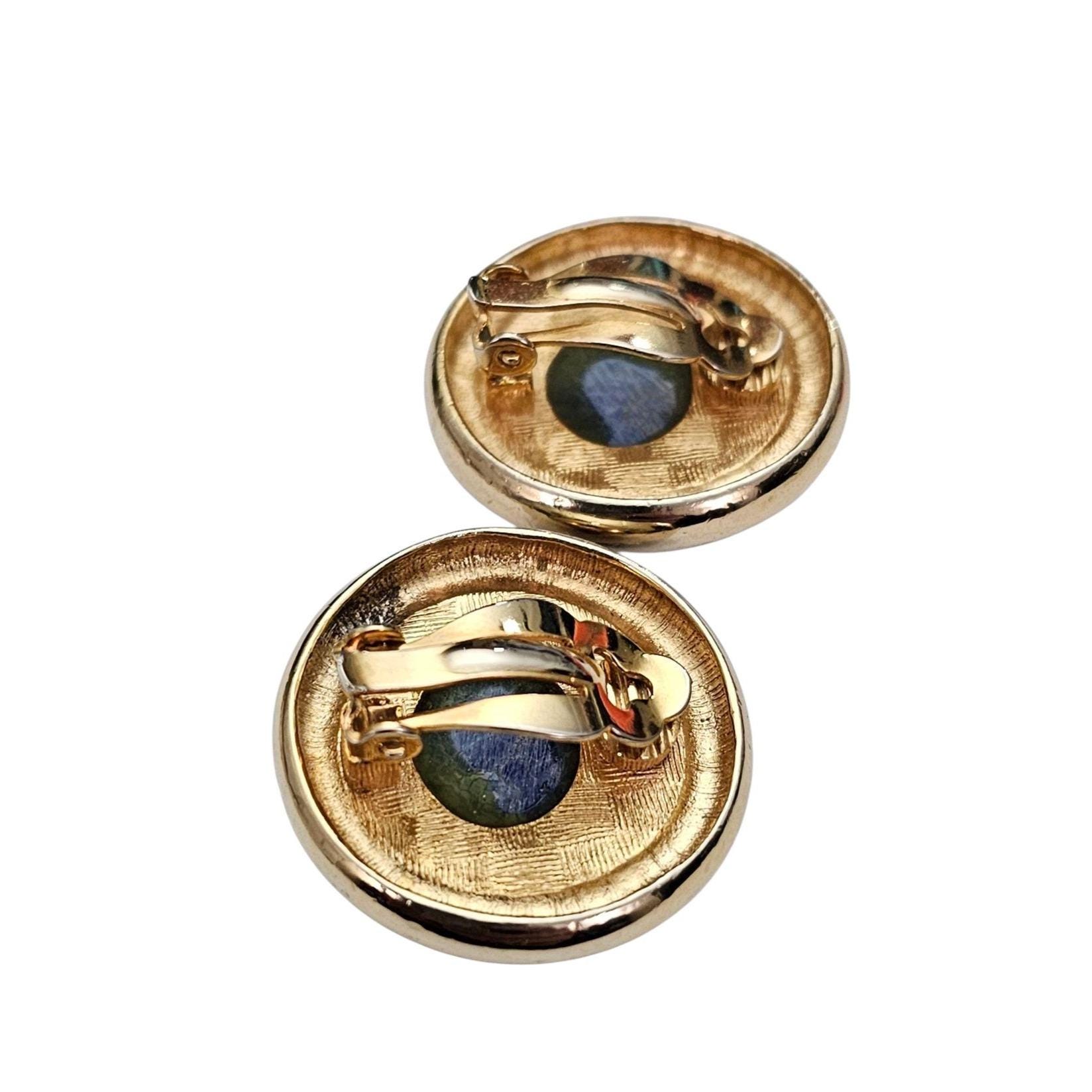 Gold Tone Blue Marbled Stone Clip On Earrings C308