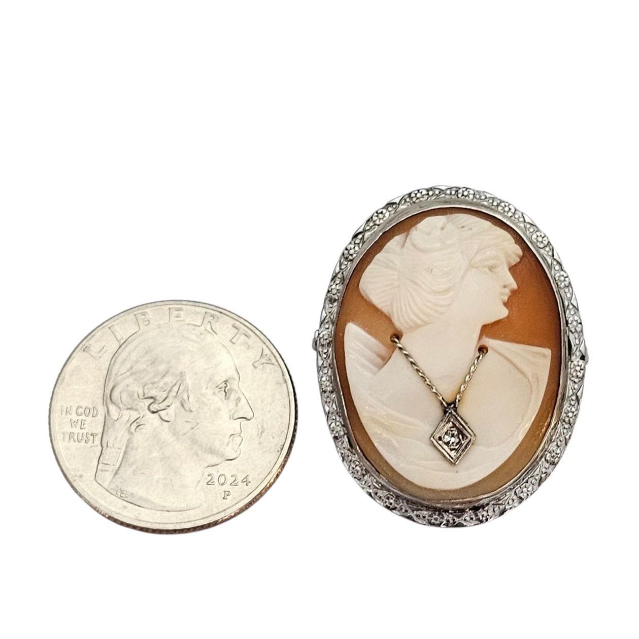 Sterling Silver Shell Carved Cameo Habille Brooch C317