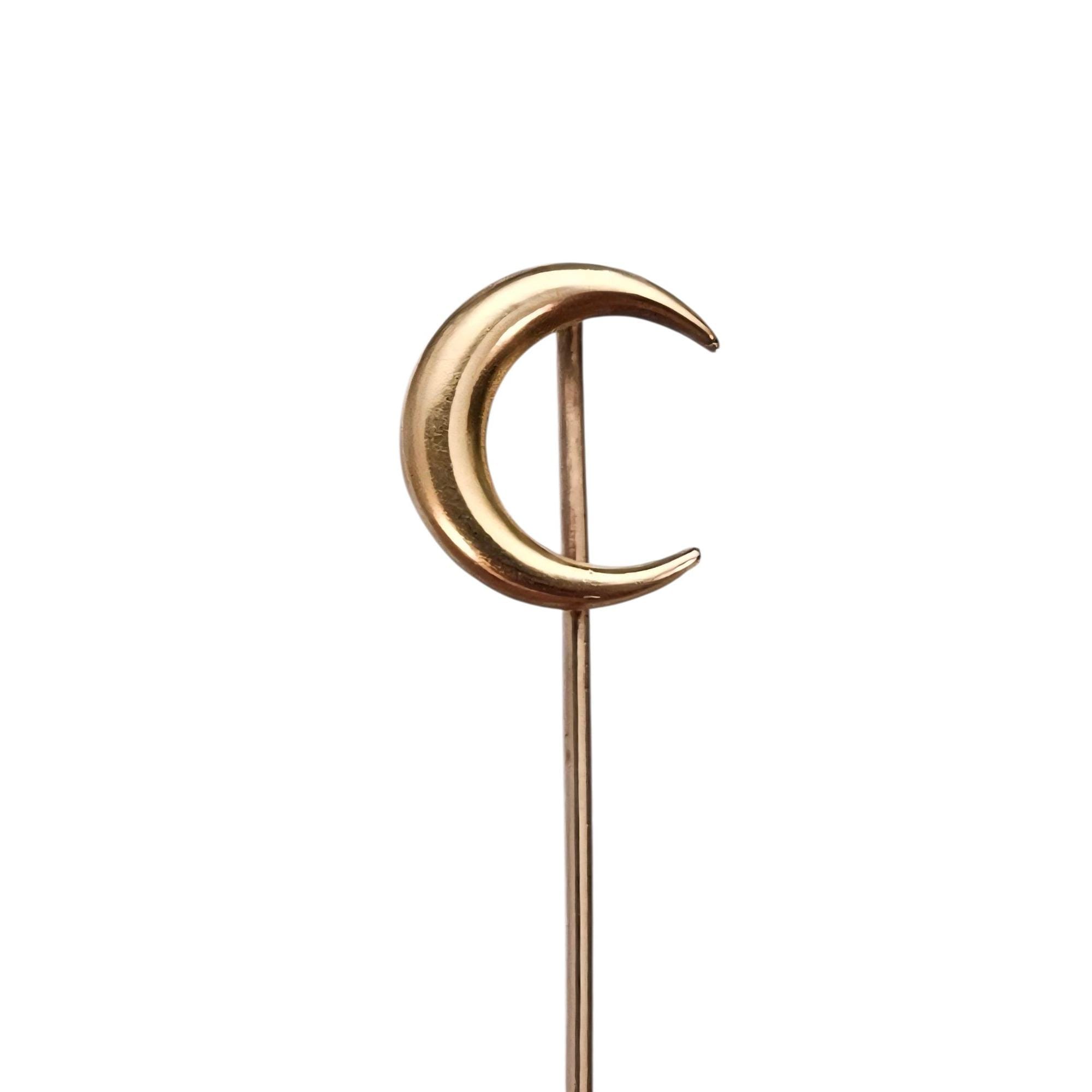 10K Yellow Gold Stick Crescent Moon Lapel Pin C319