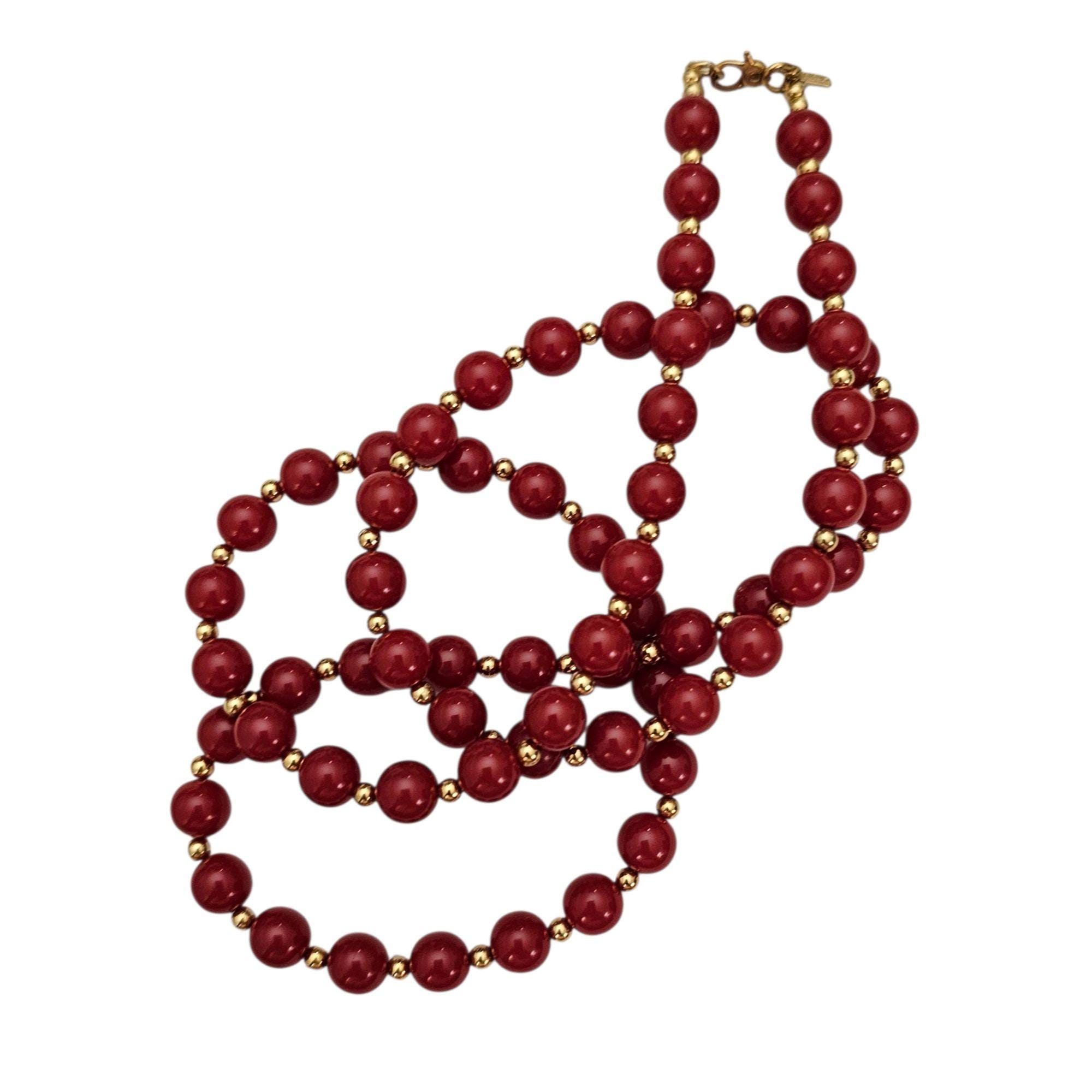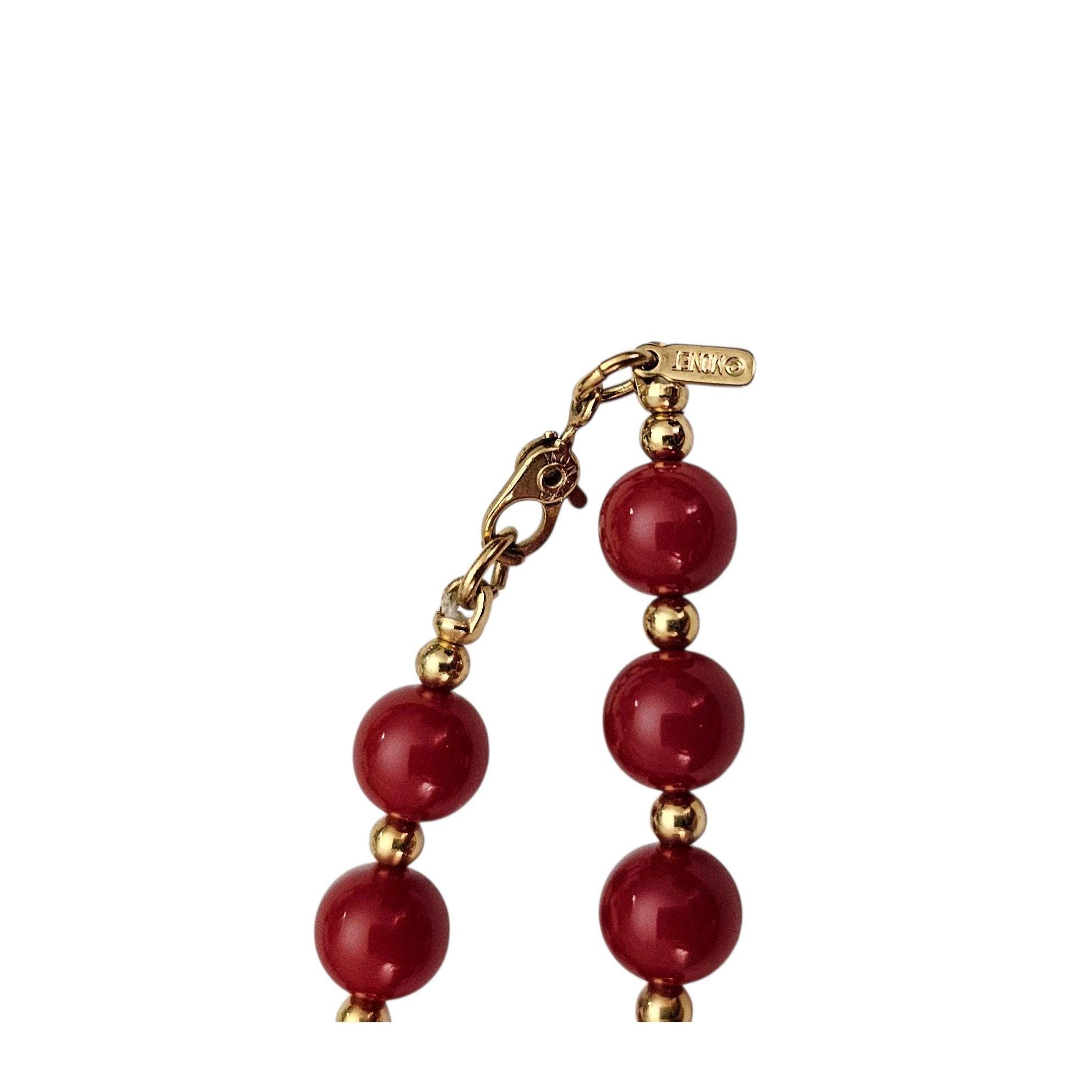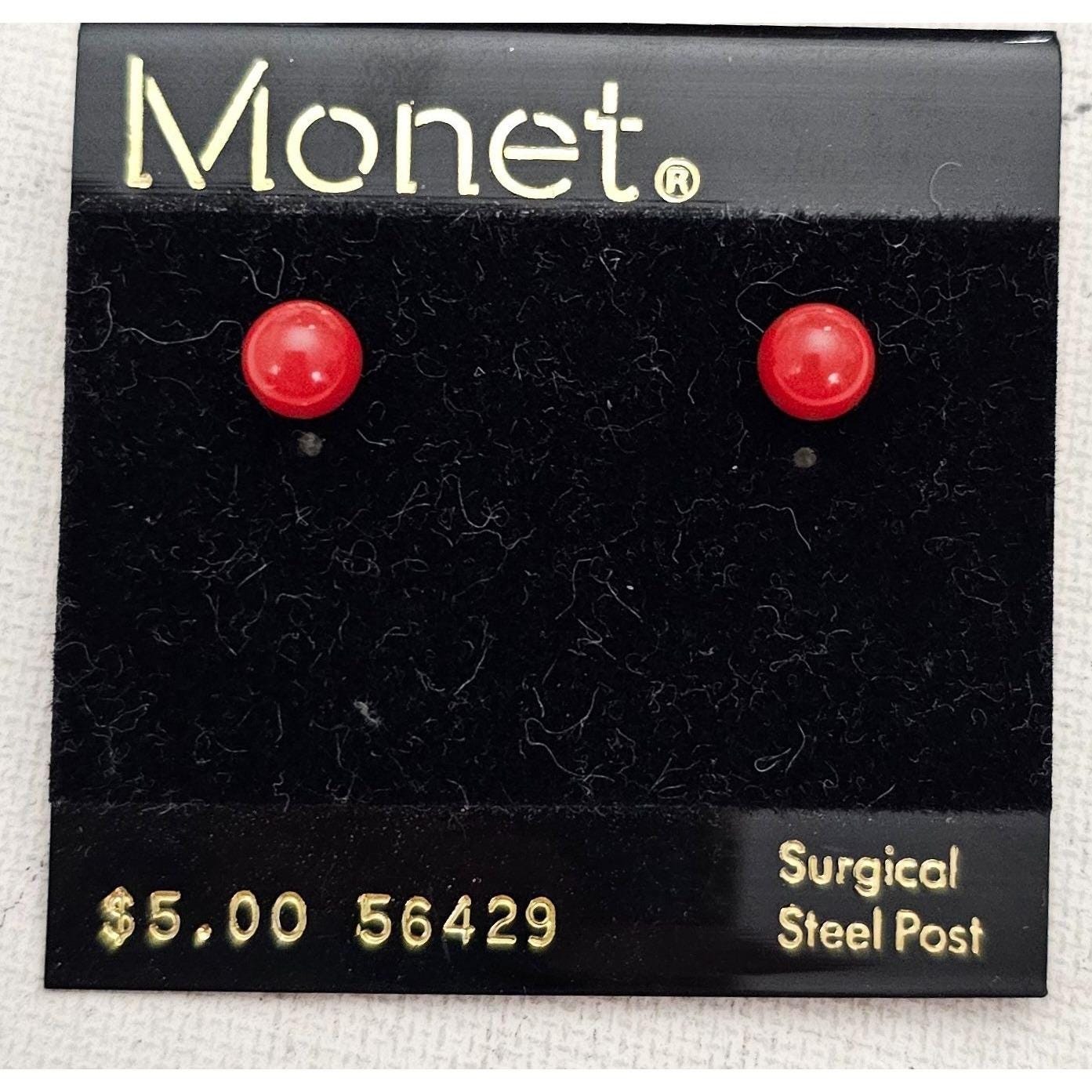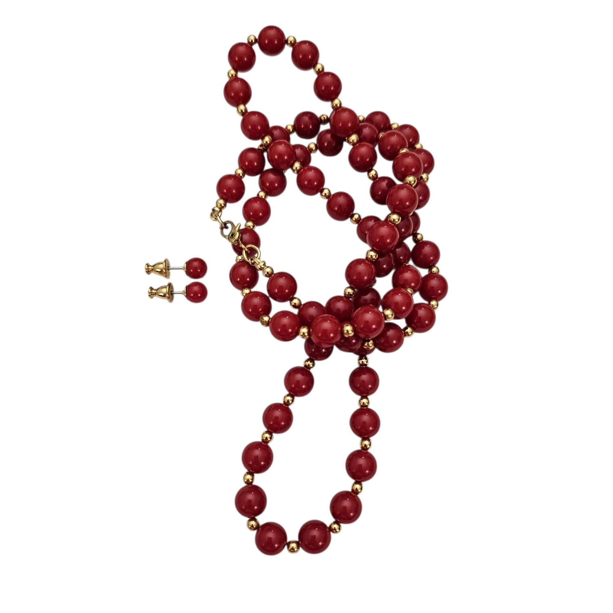 • Monet Red Bead Necklace And Ball Post Earrings Set