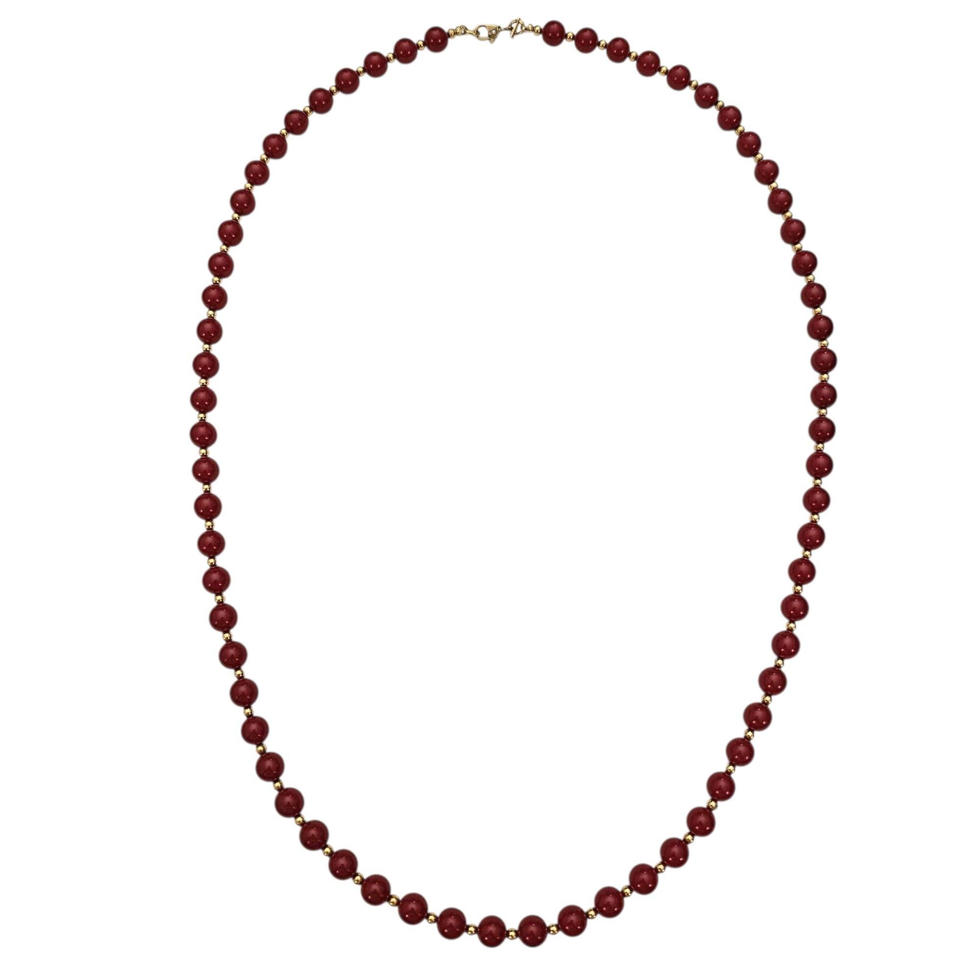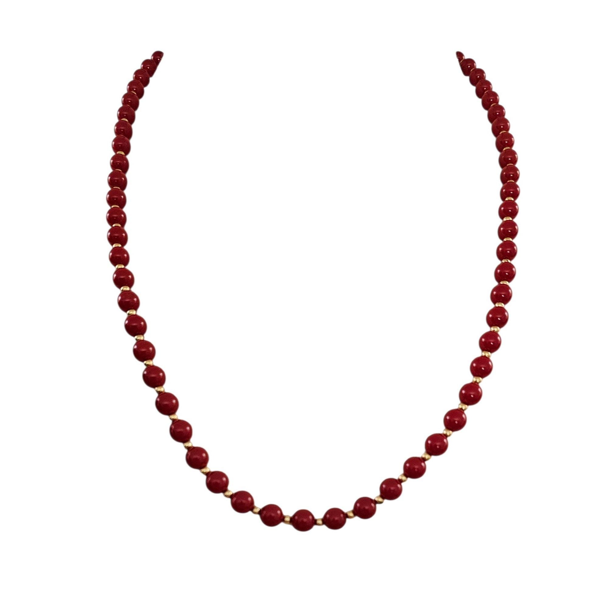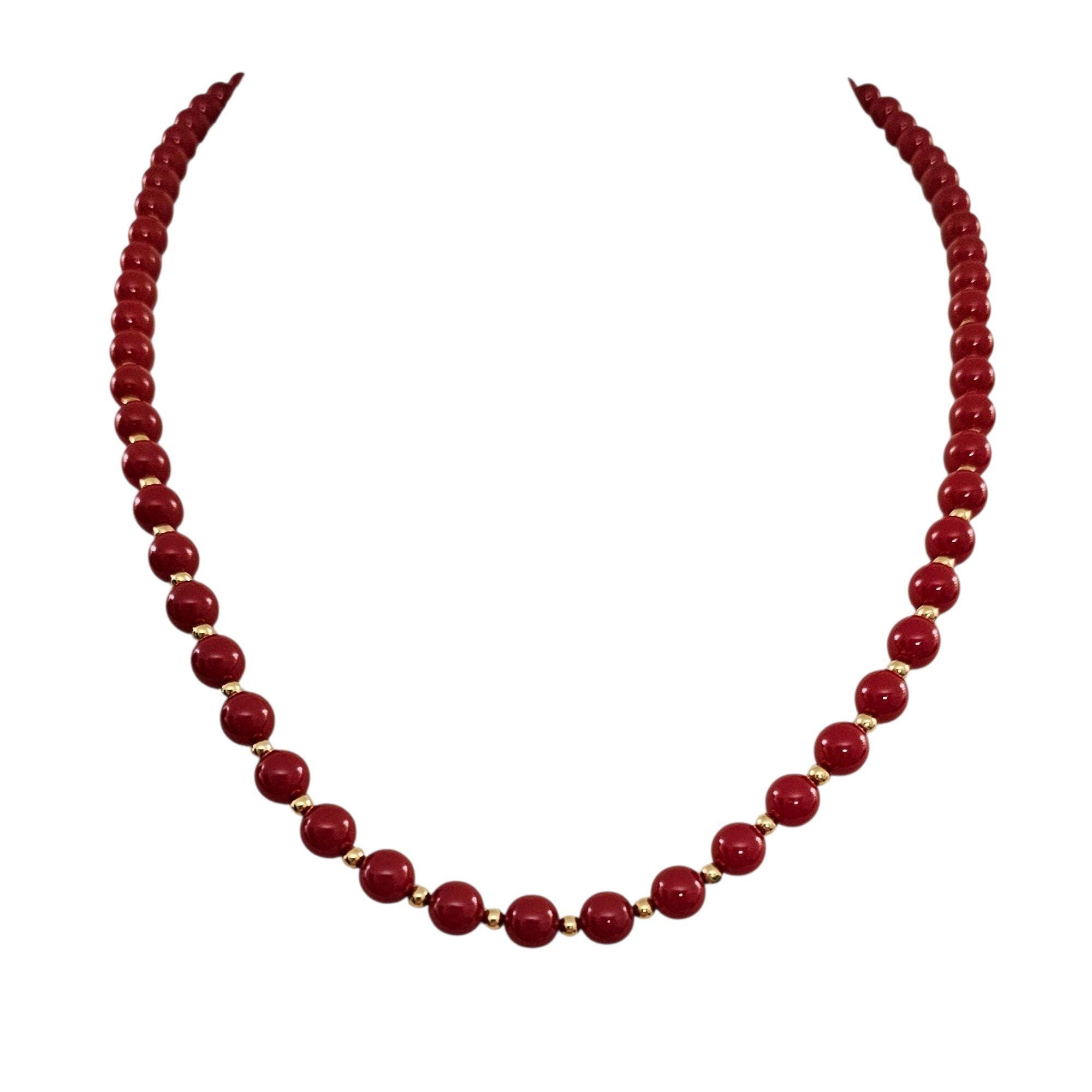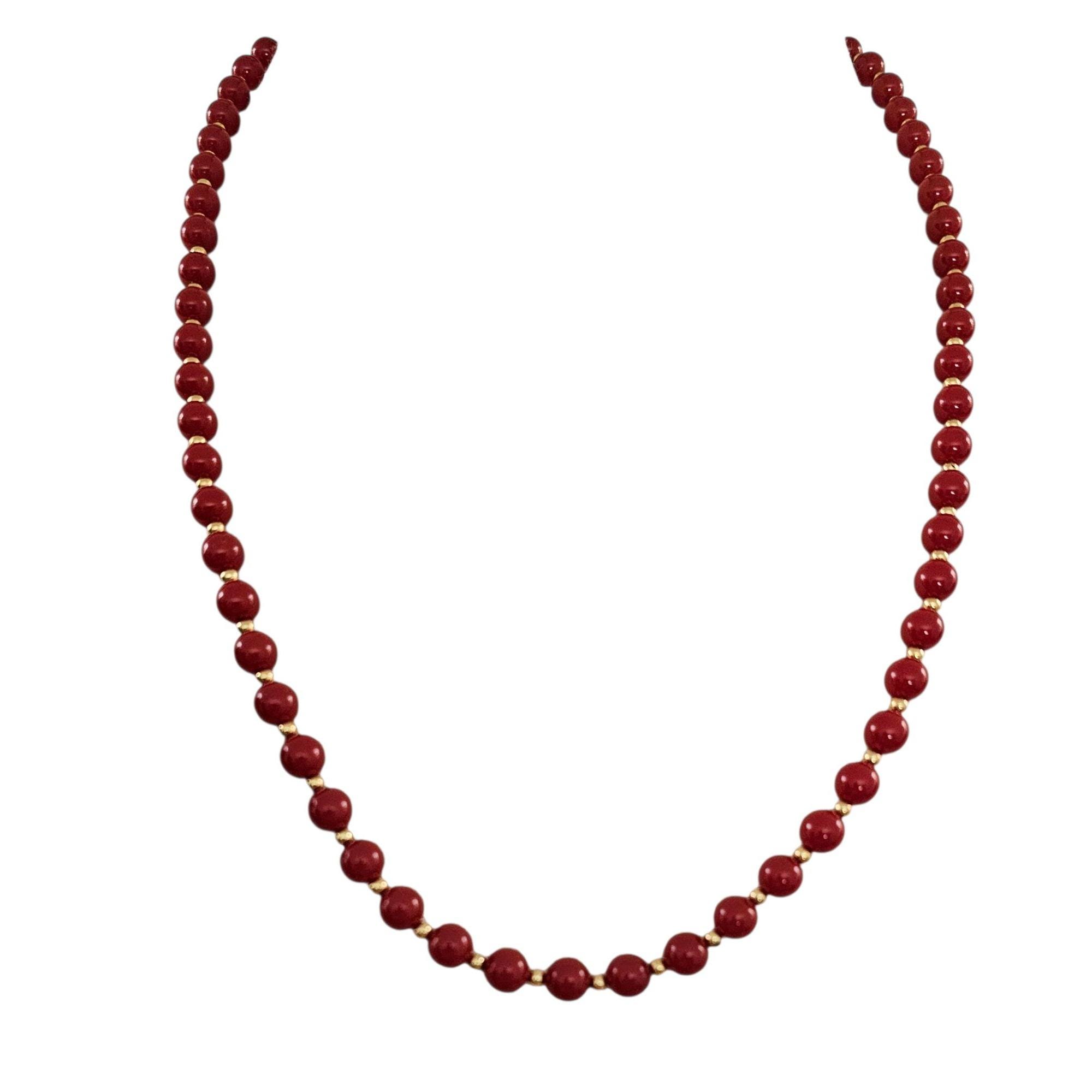 • Monet Red Bead Necklace And Ball Post Earrings Set