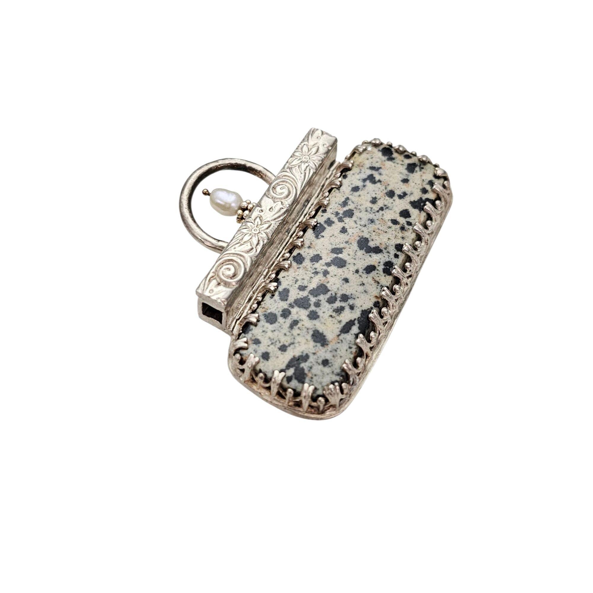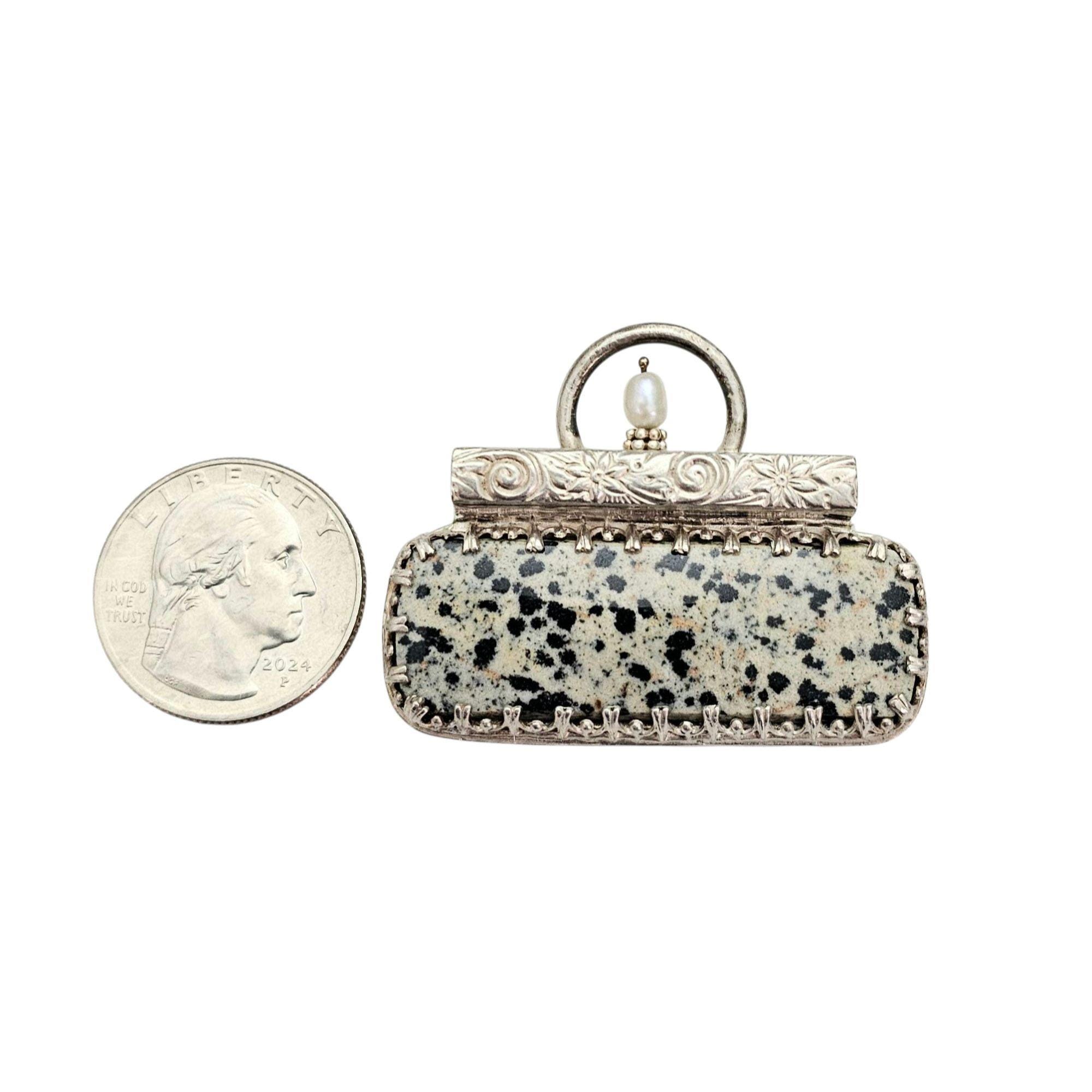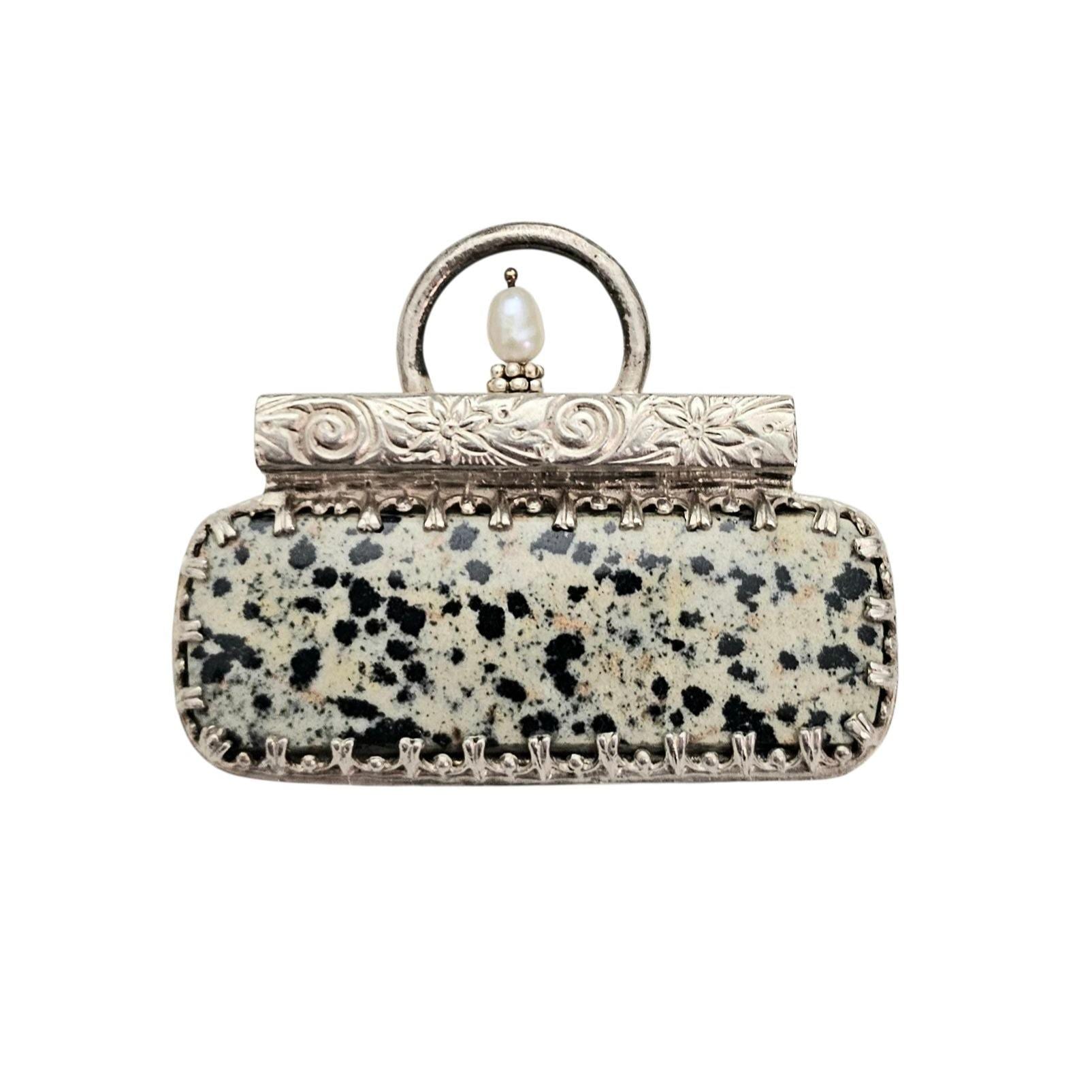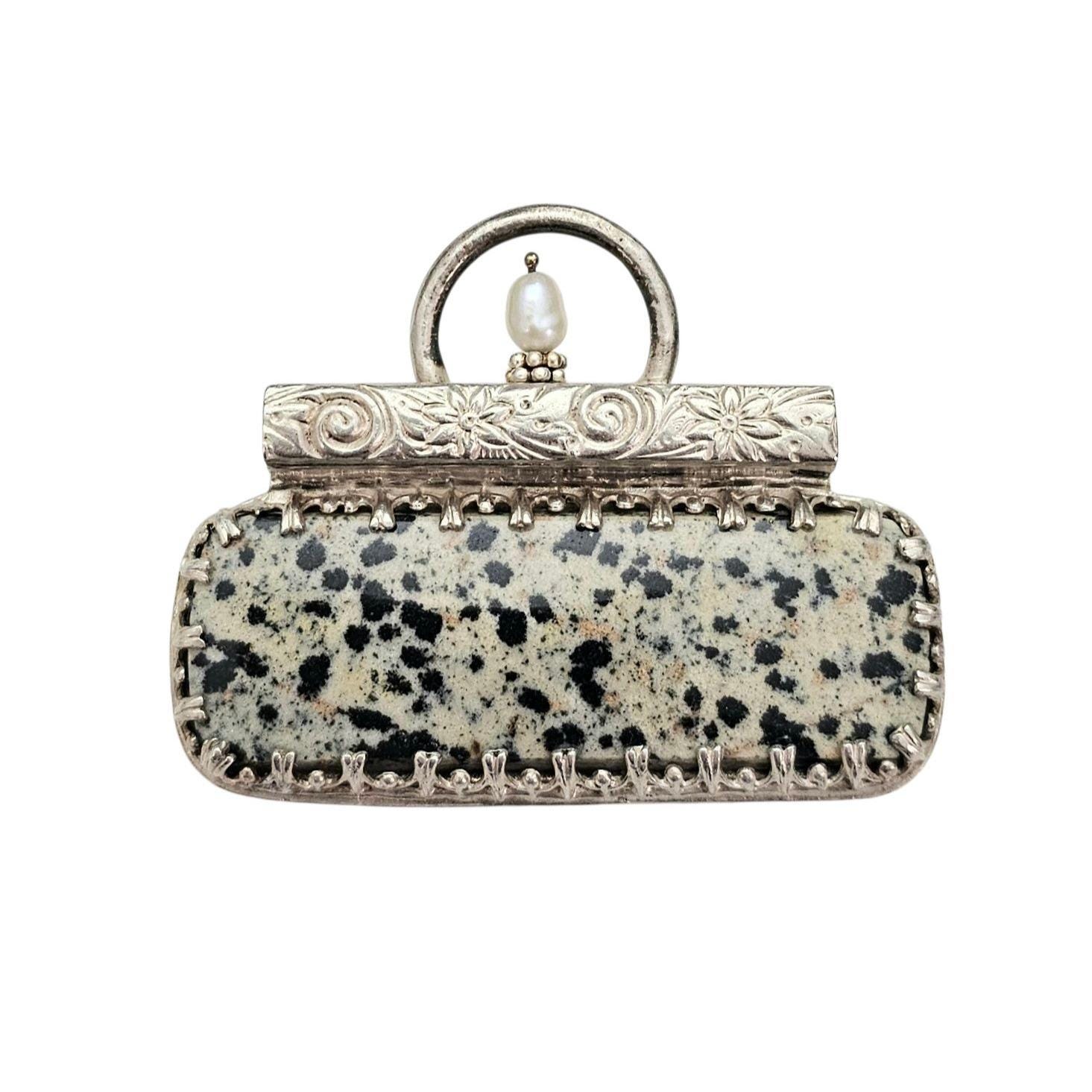 ELYN Blake Sterling Dalmatian Jasper Purse Pendant Brooch Signed, C328