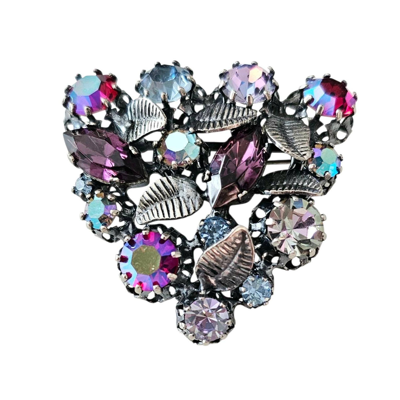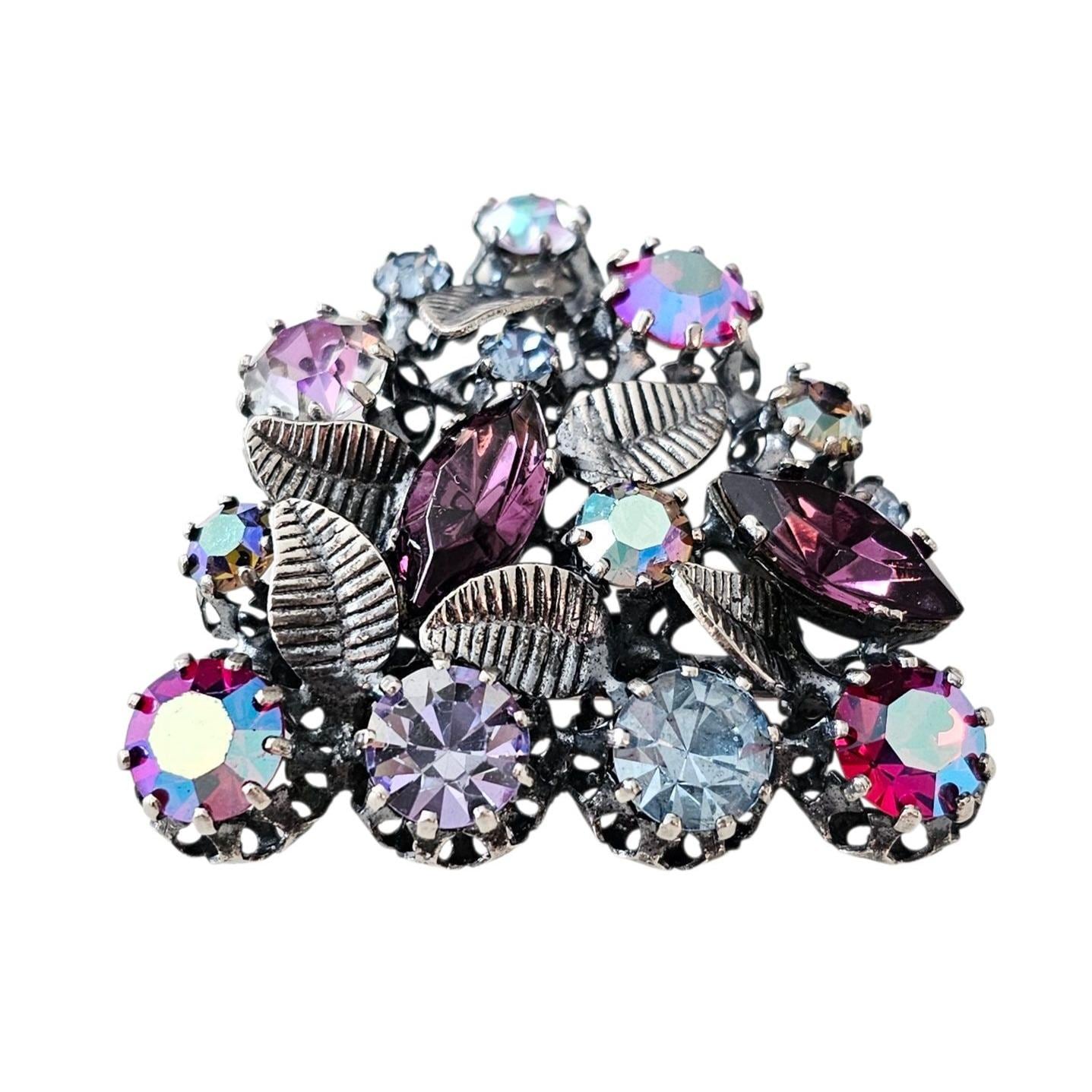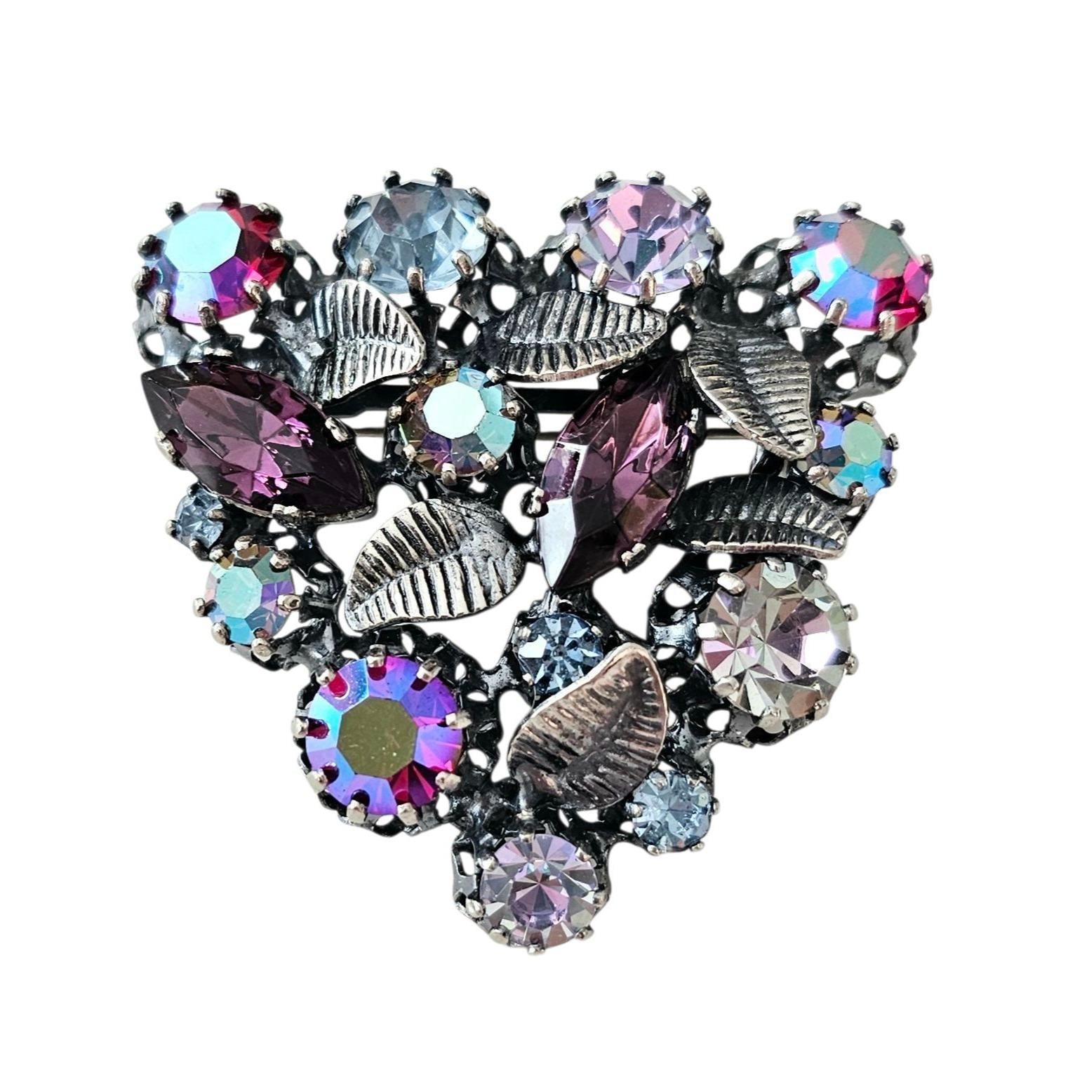 Austria Triangle Shaped Brooch Red Blue Purple AB Rhinestone Cluster Pin, C283