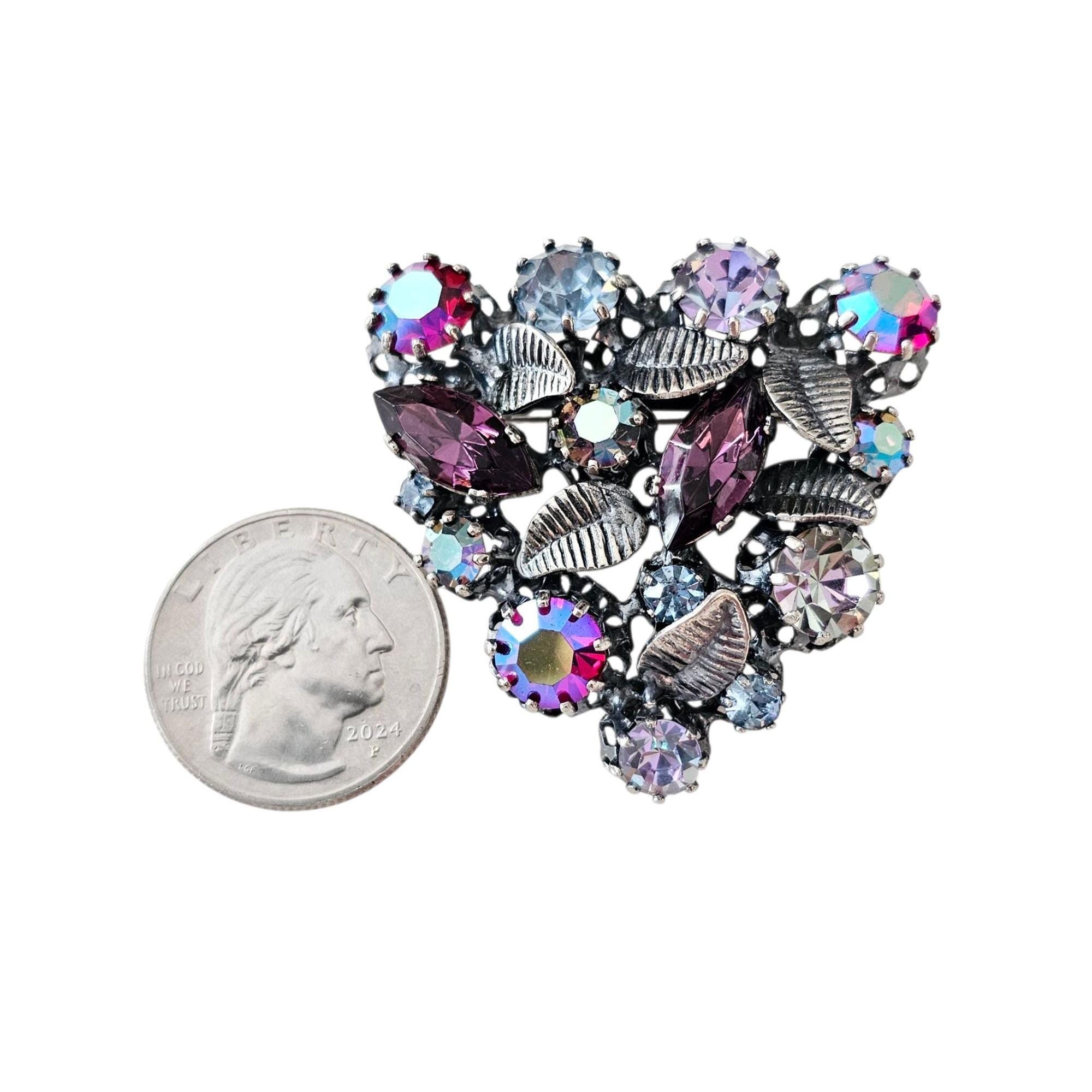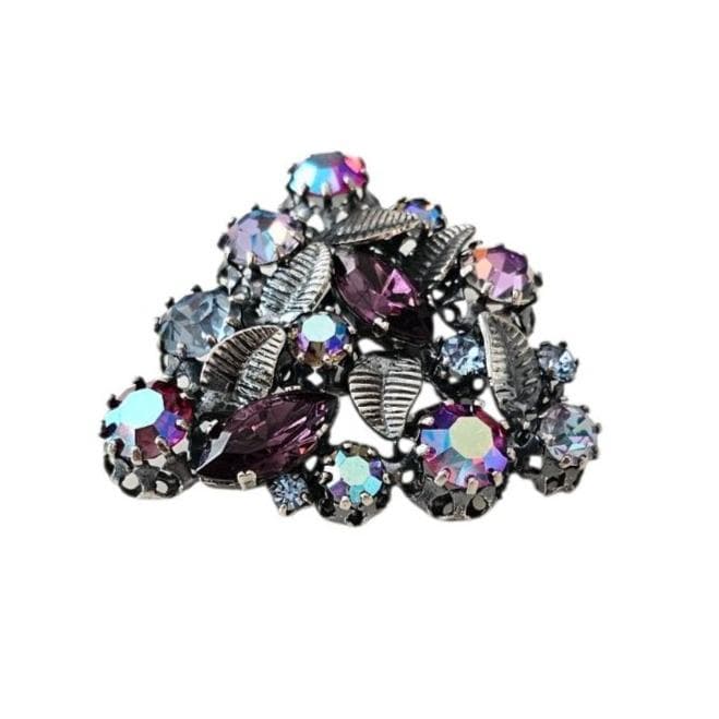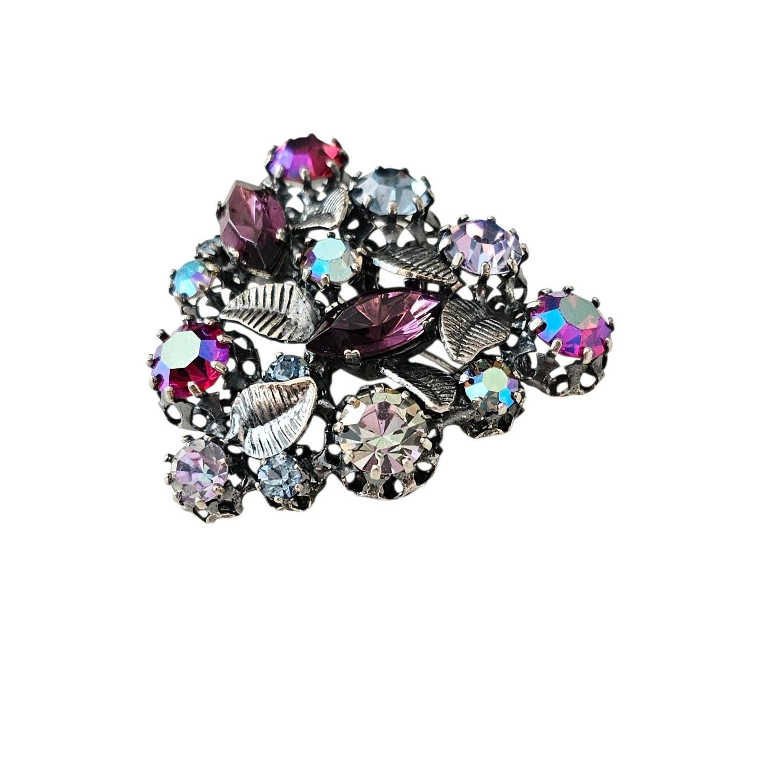 Austria Triangle Shaped Brooch Red Blue Purple AB Rhinestone Cluster Pin, C283