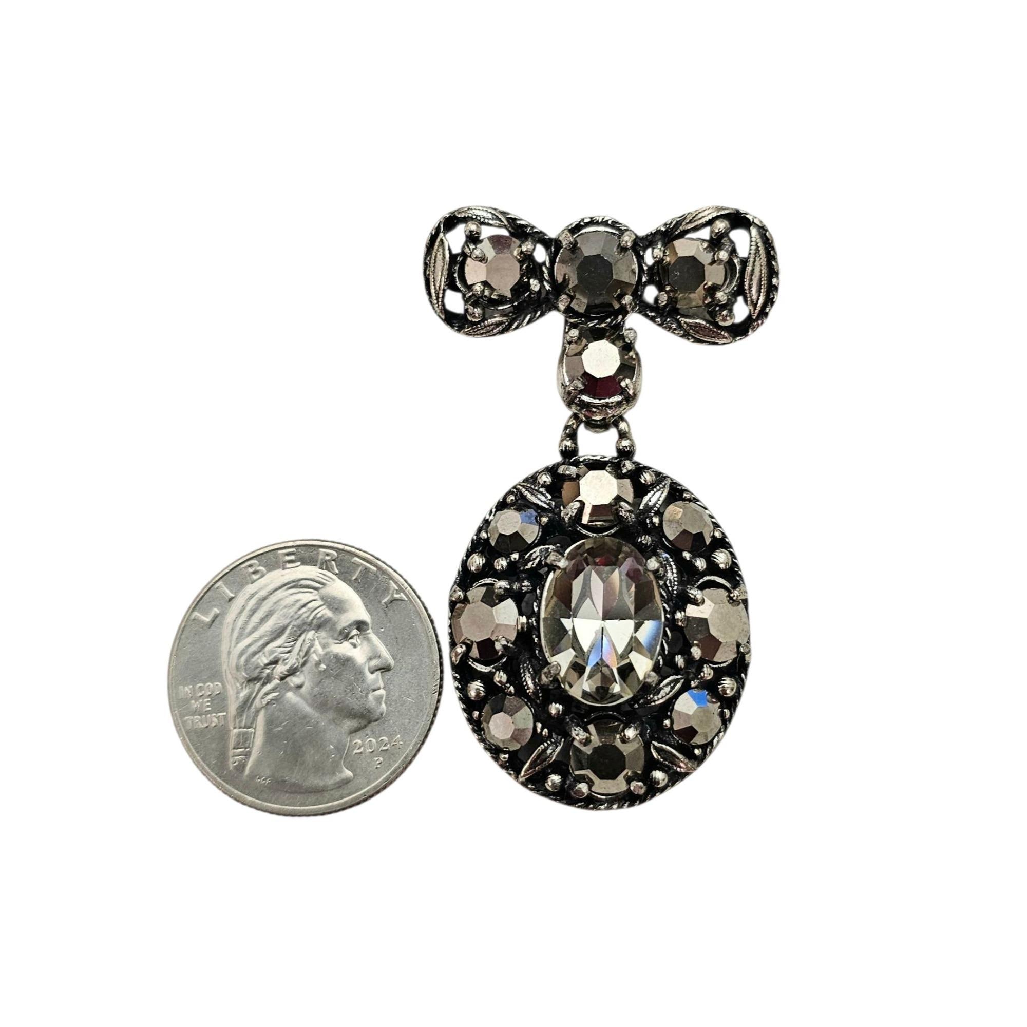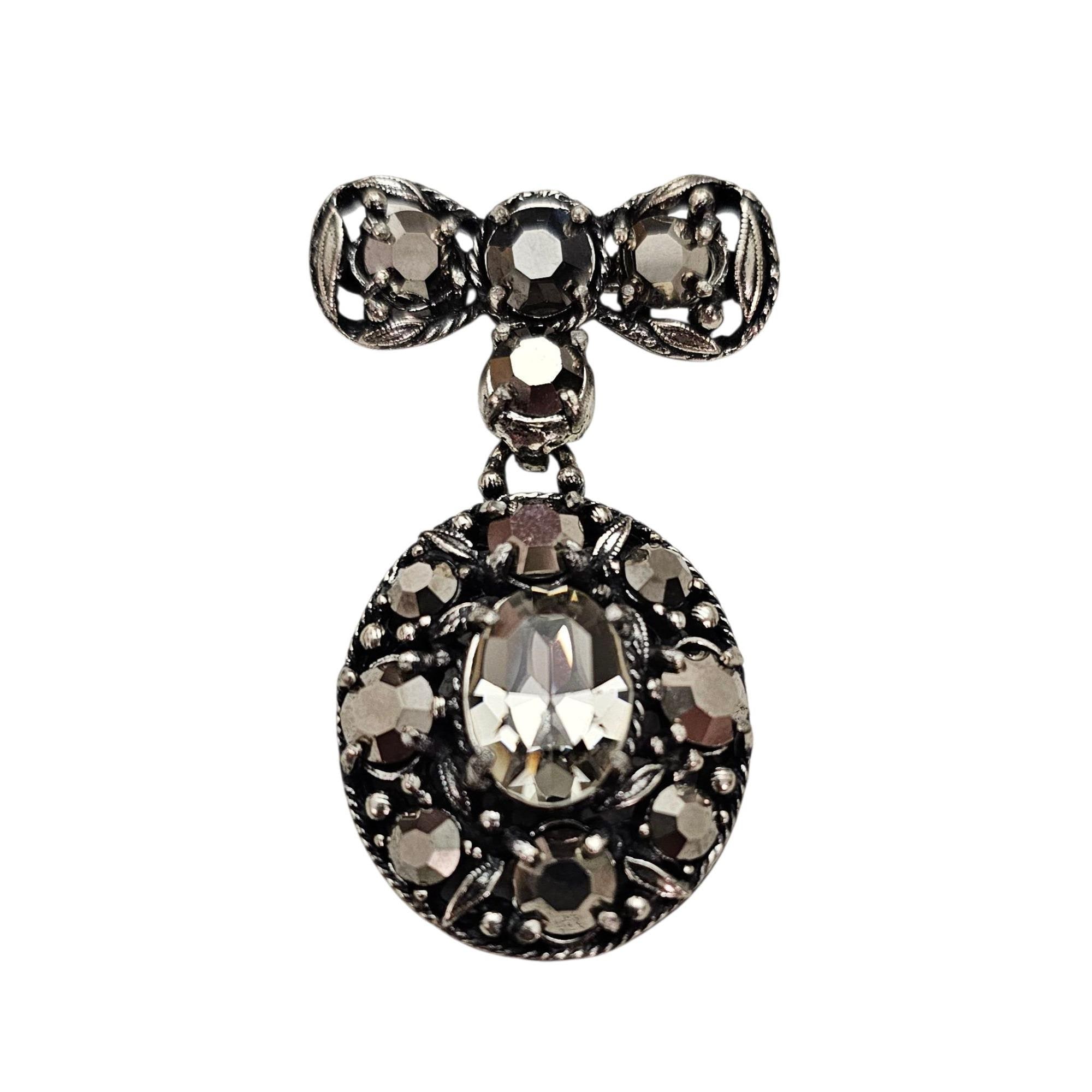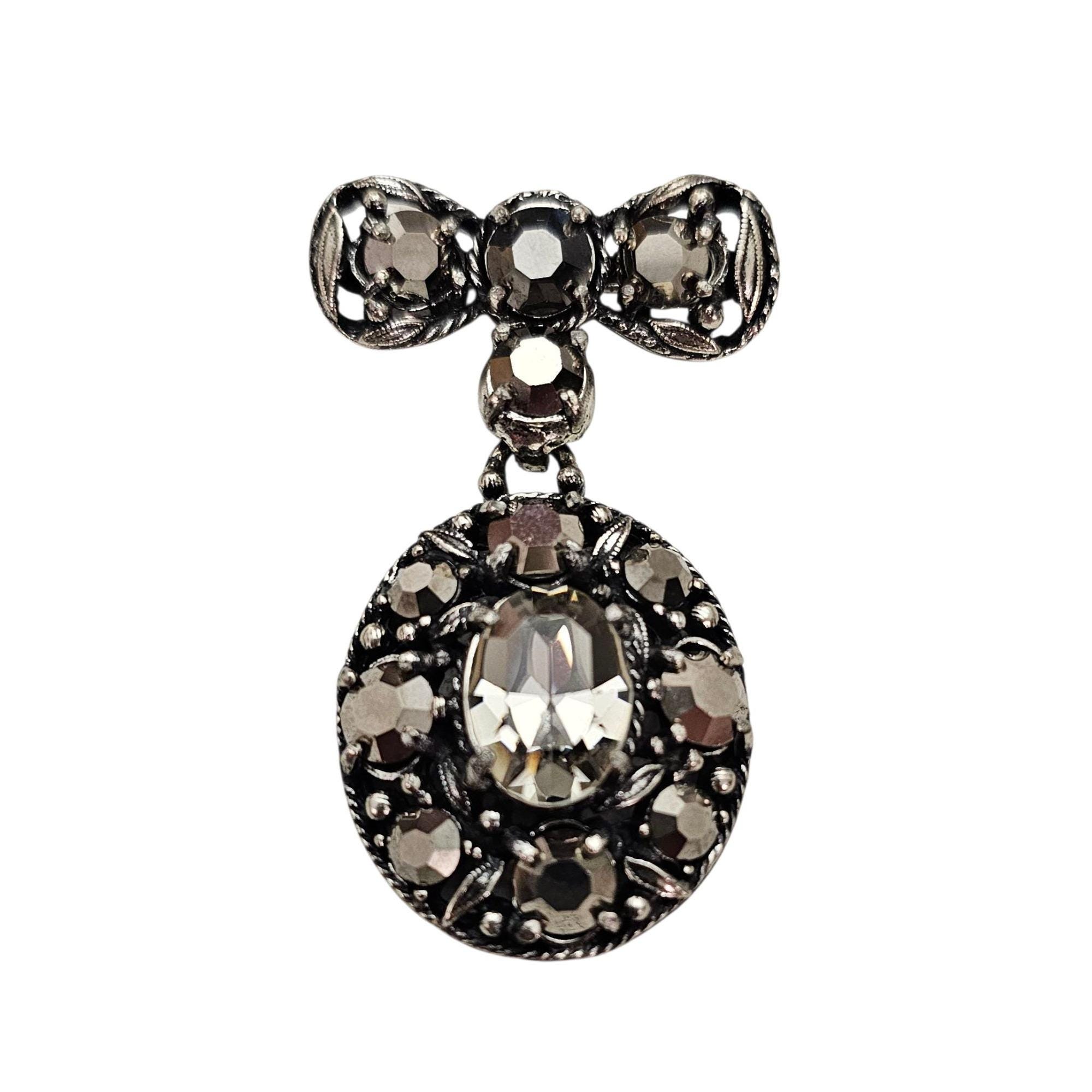Hobe Brooch Oval Dangle Bow Bar Rhinestone Pin, Signed C330