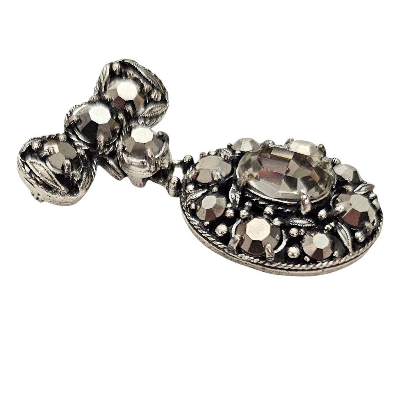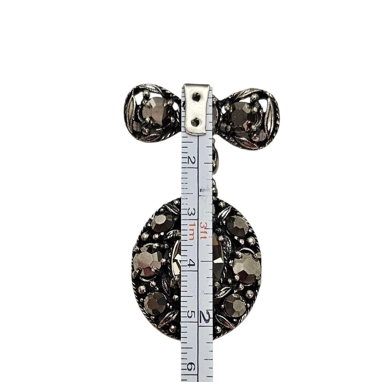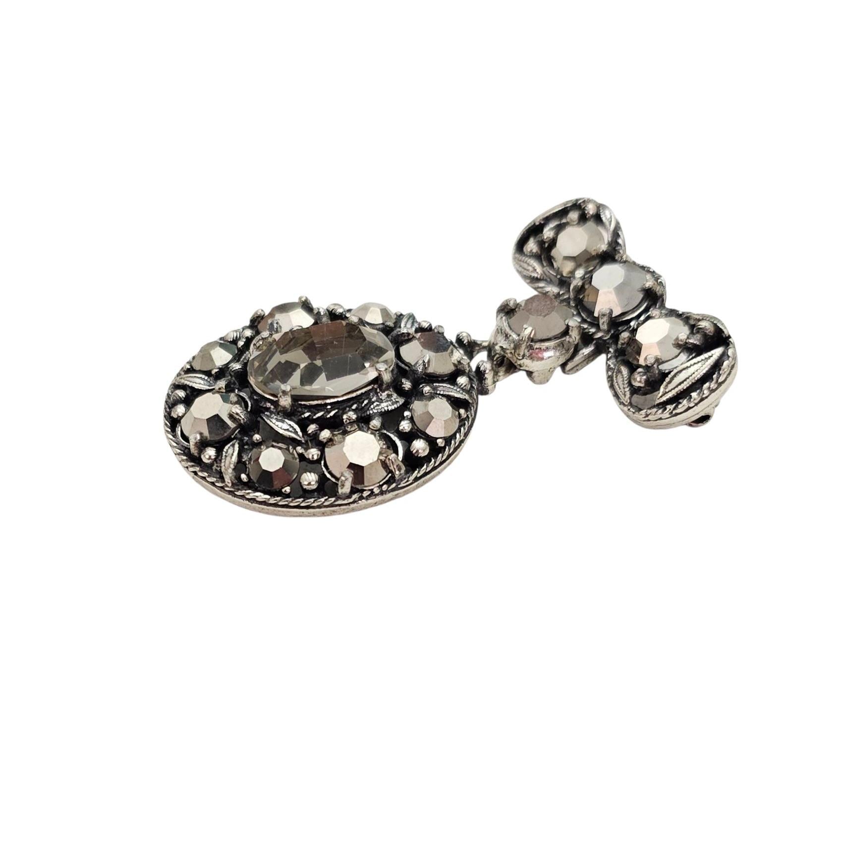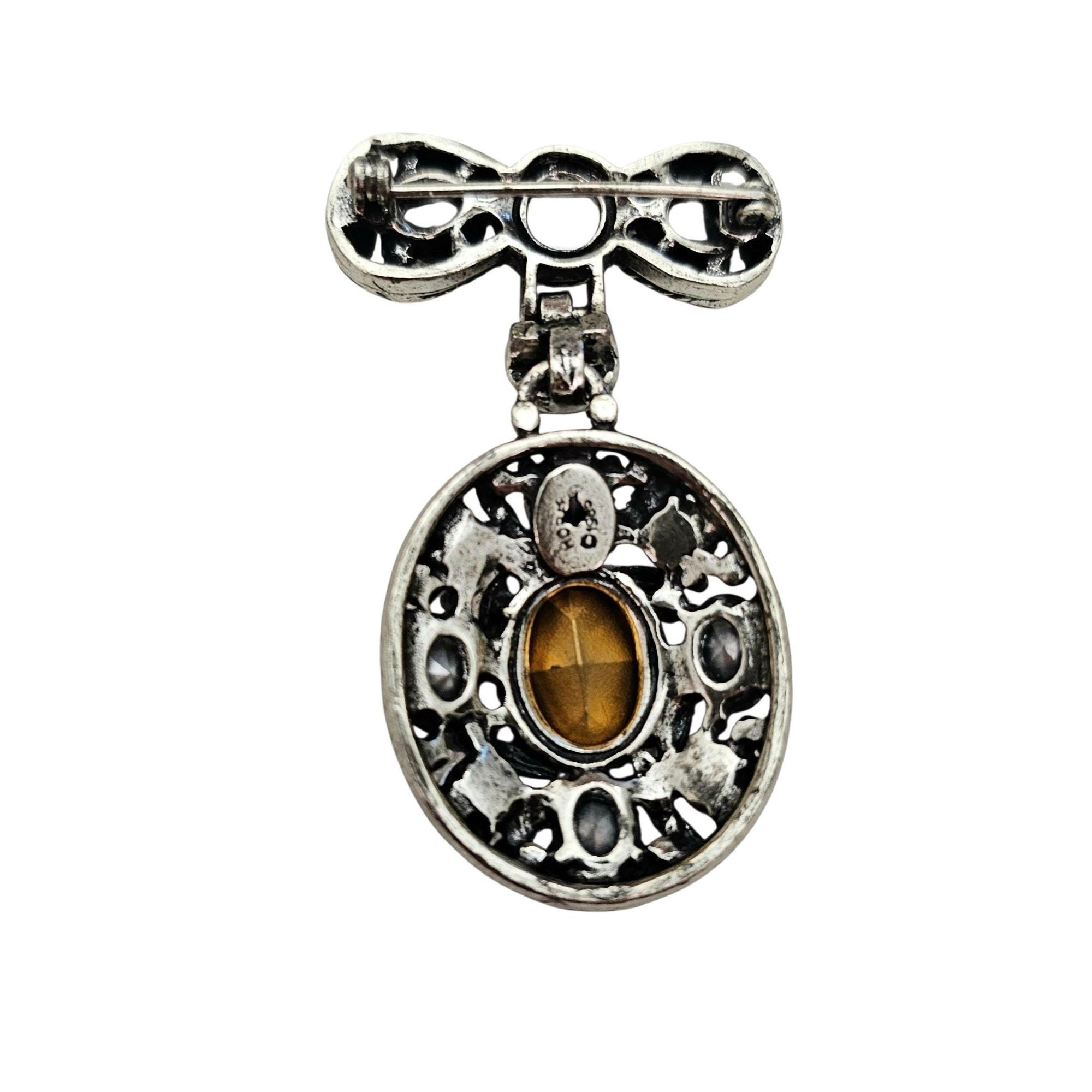 Hobe Brooch Oval Dangle Bow Bar Rhinestone Pin, Signed C330