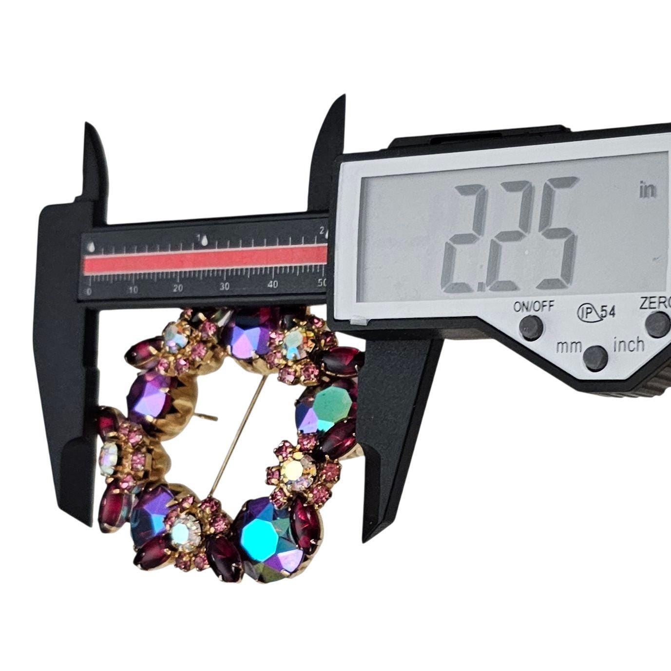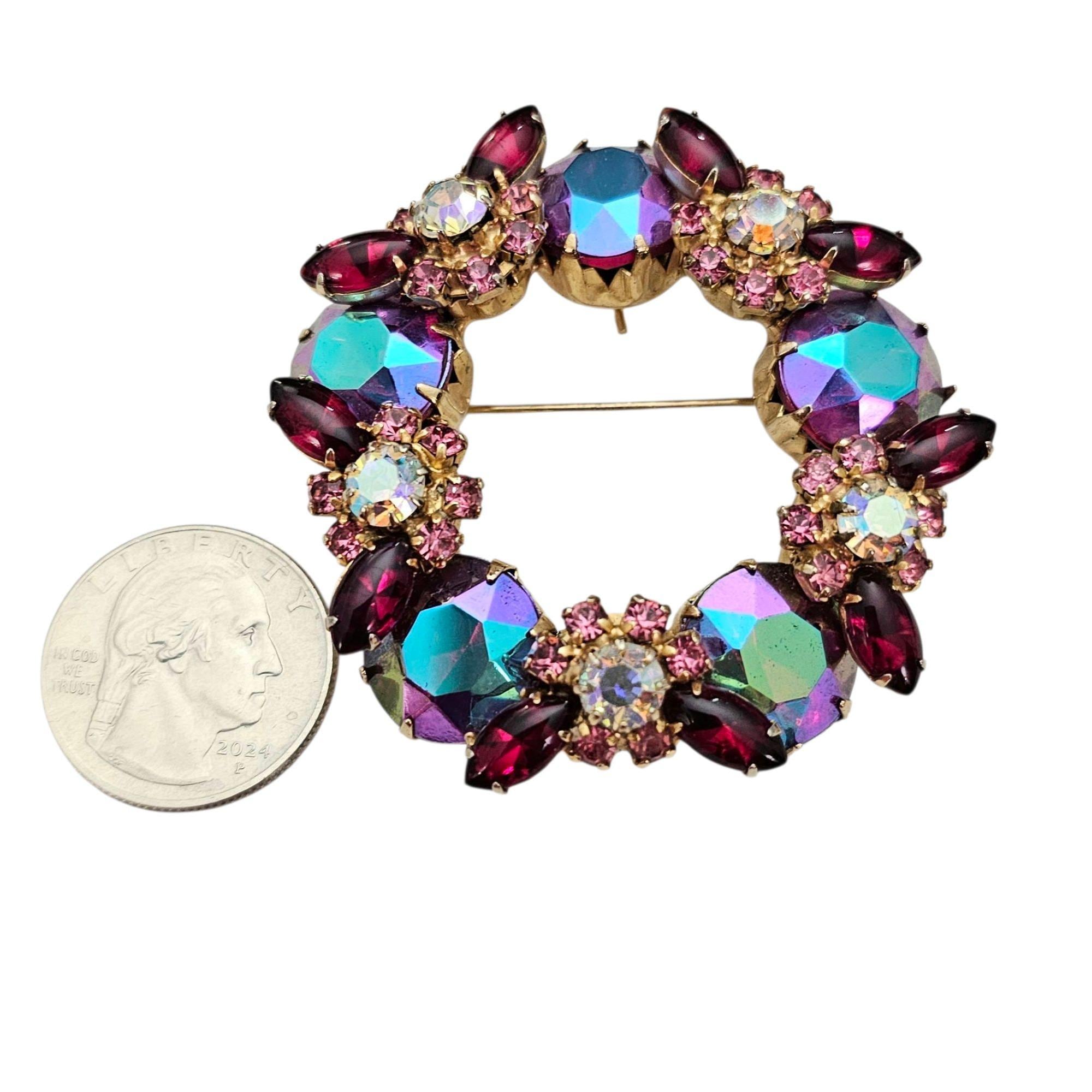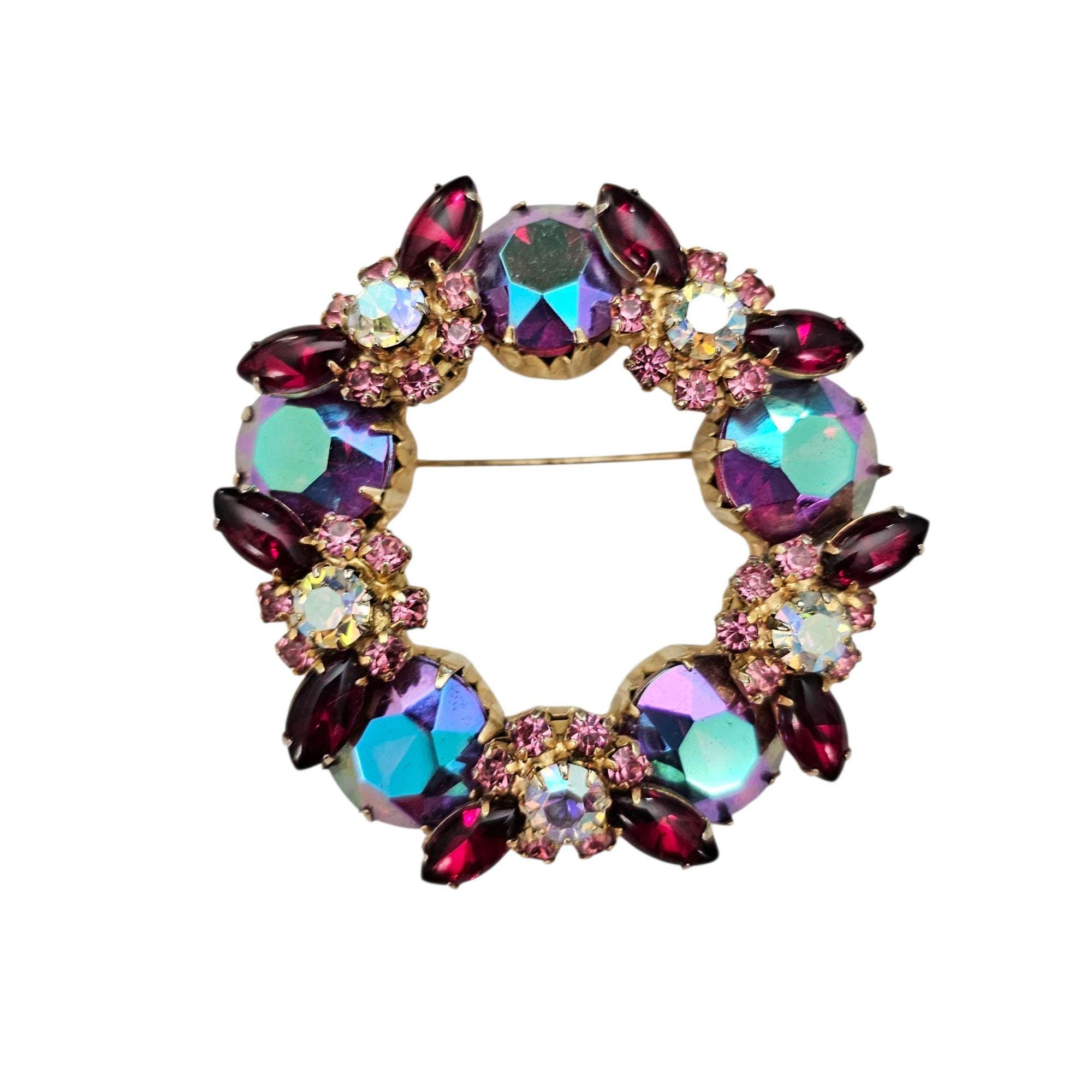 Red Pink Blue AB Rhinestone Brooch Stunning Open Round Chunky Cluster Pin Pendant C337