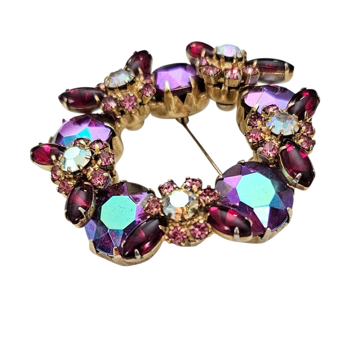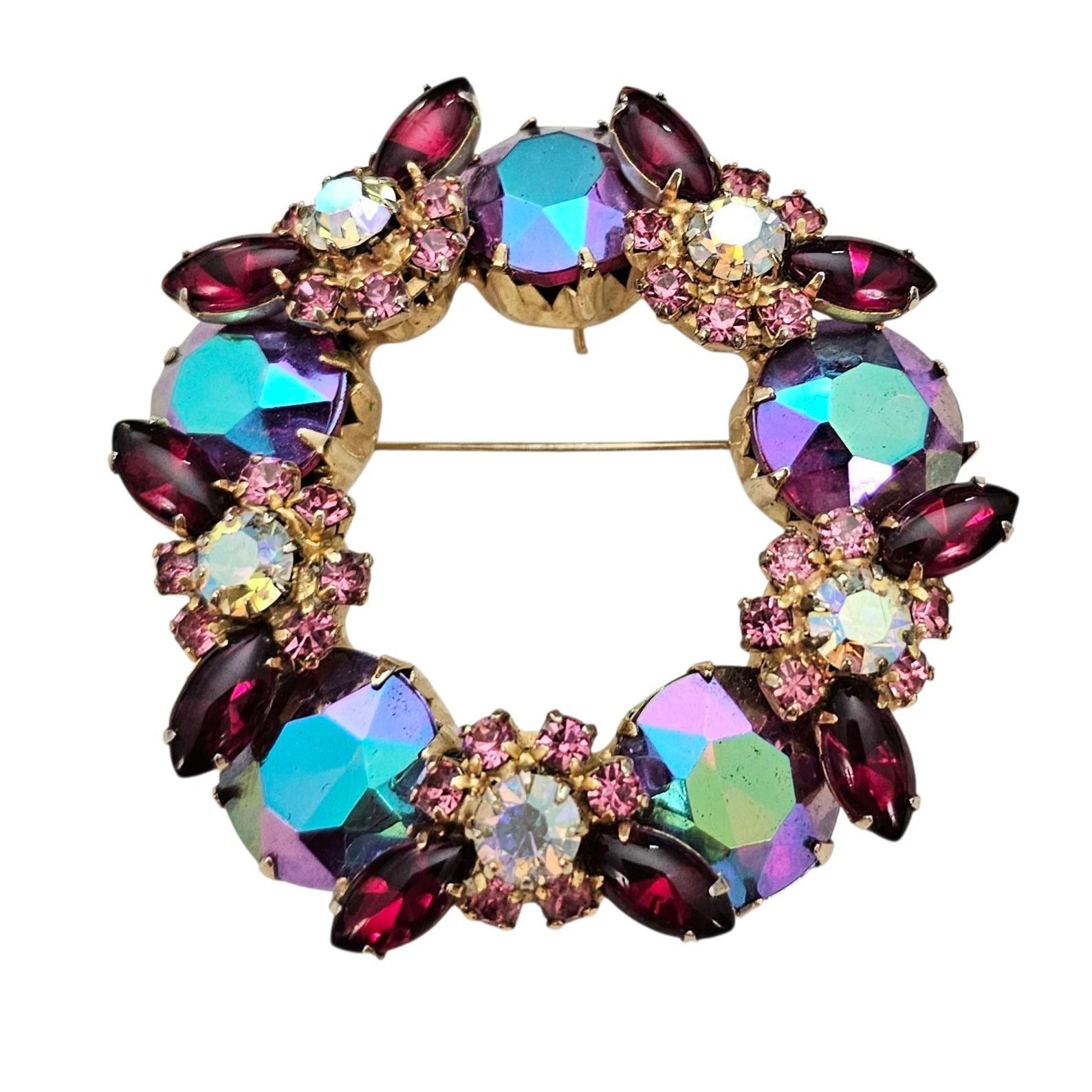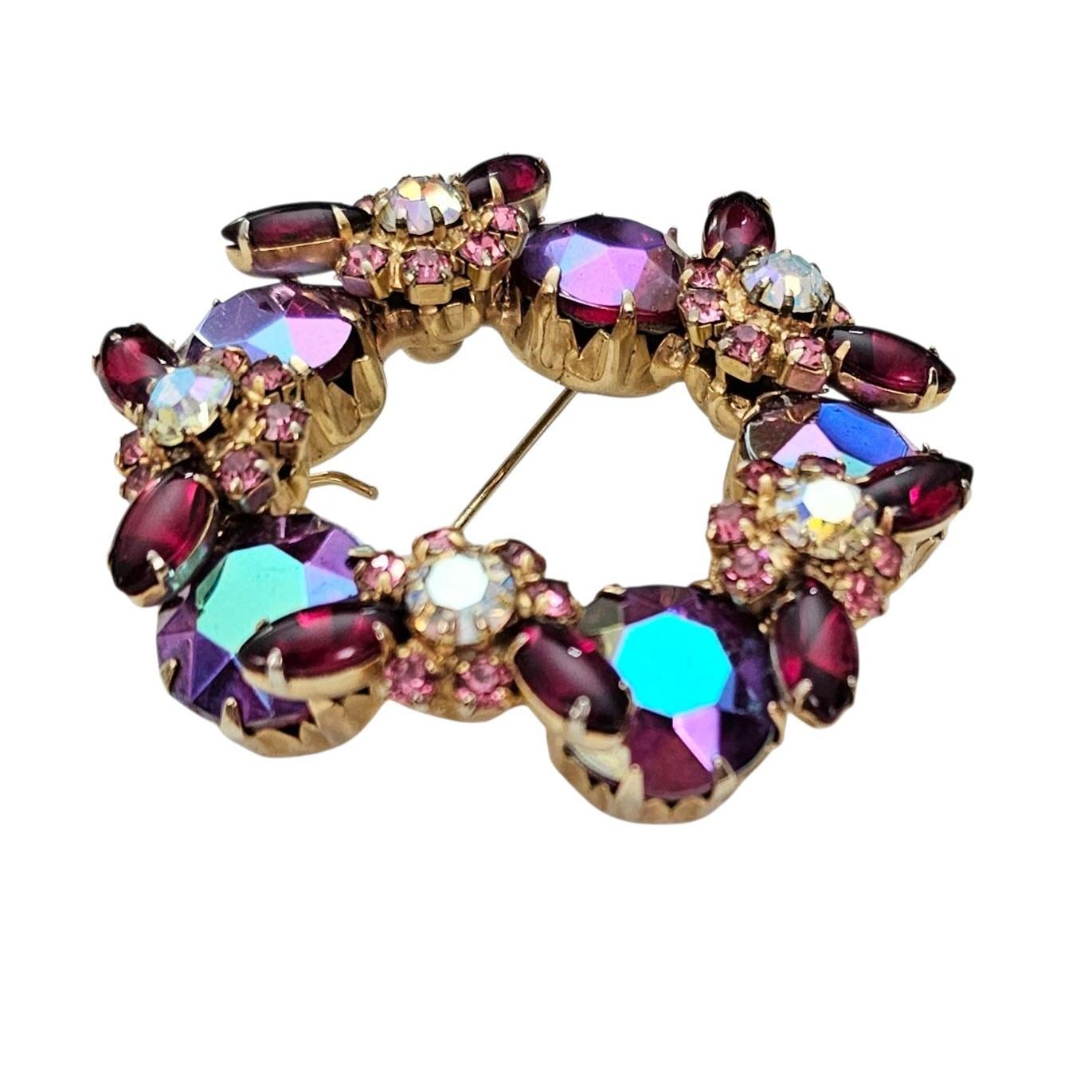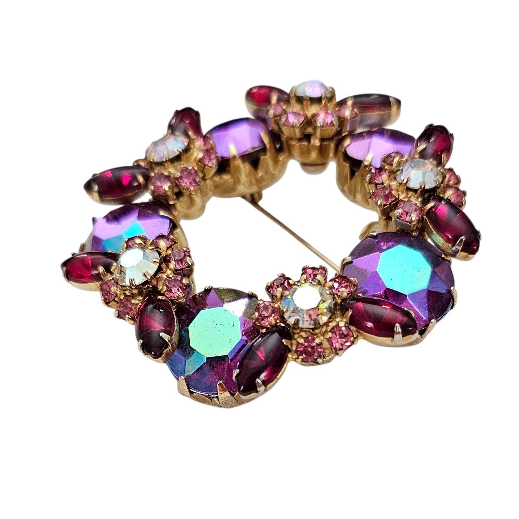 Red Pink Blue AB Rhinestone Brooch Stunning Open Round Chunky Cluster Pin Pendant C337