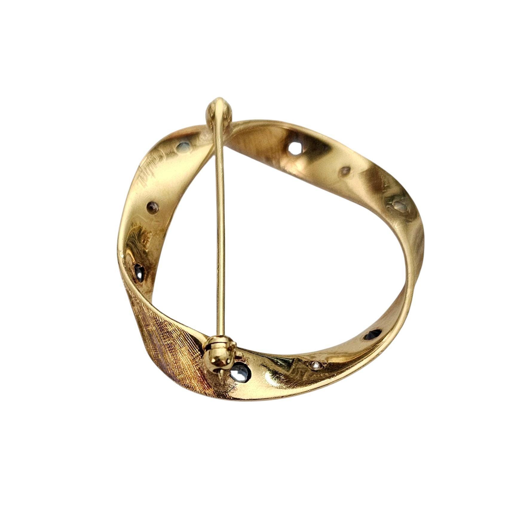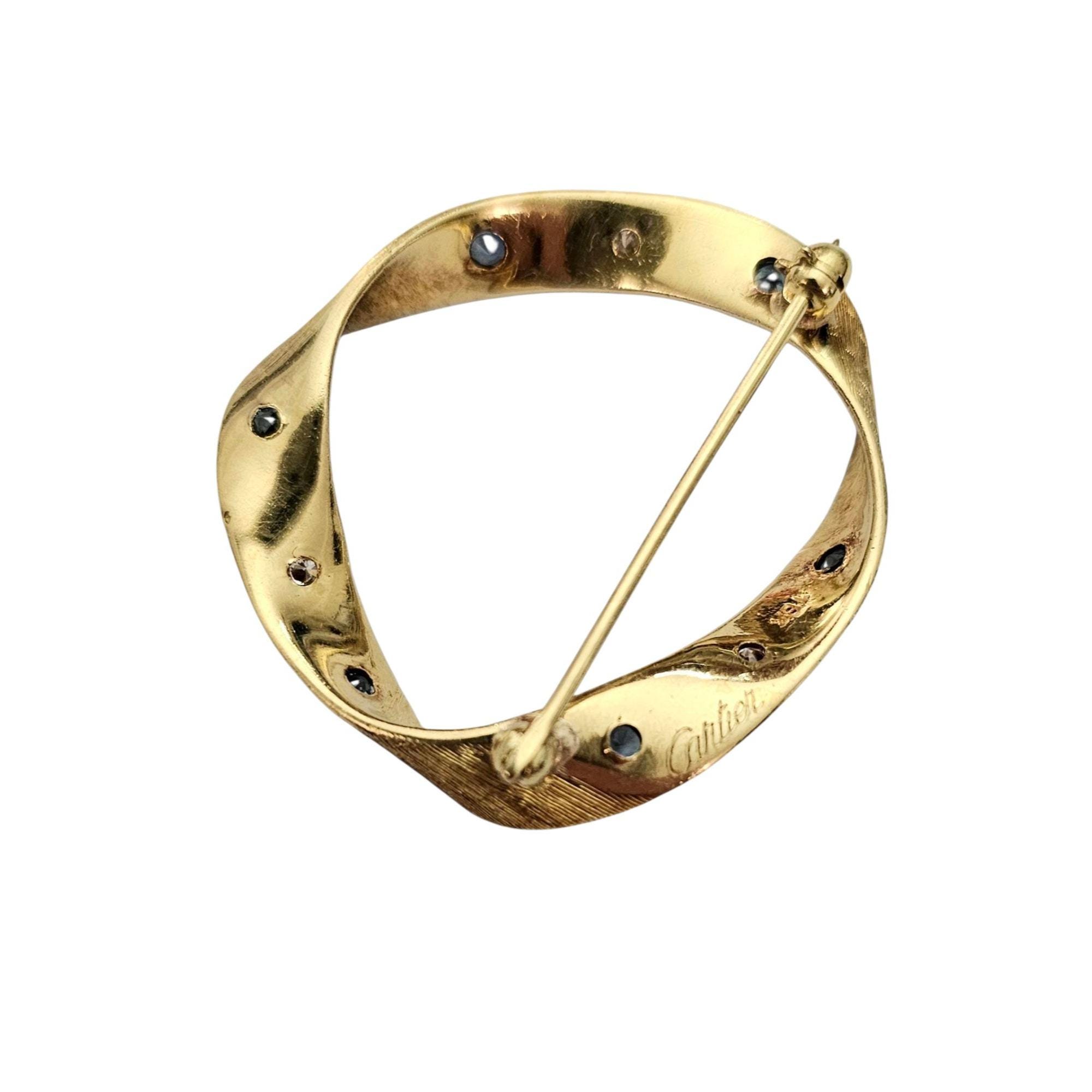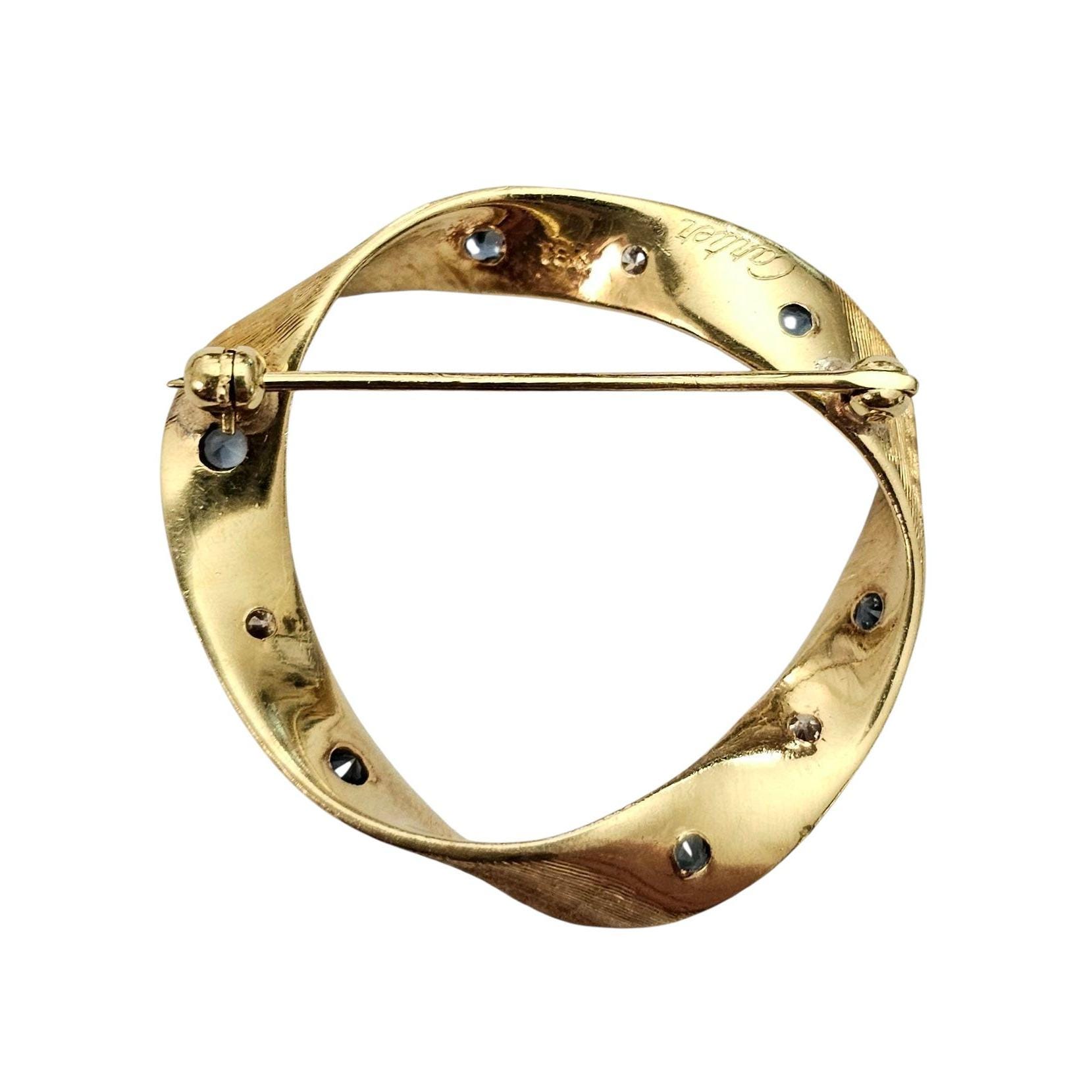 Cartier 18K Yellow Gold Diamond Sapphire Round Open Brooch Signed, C345