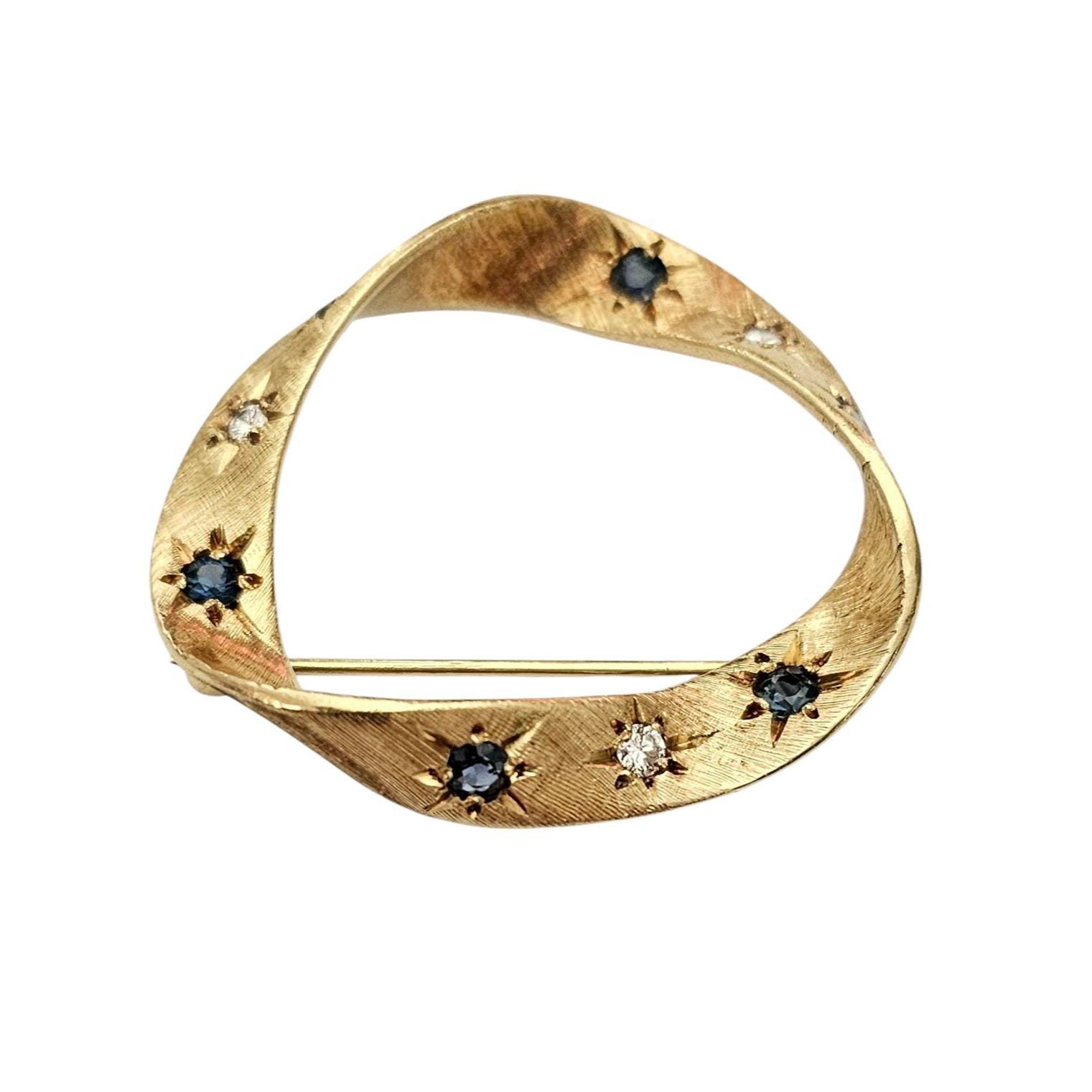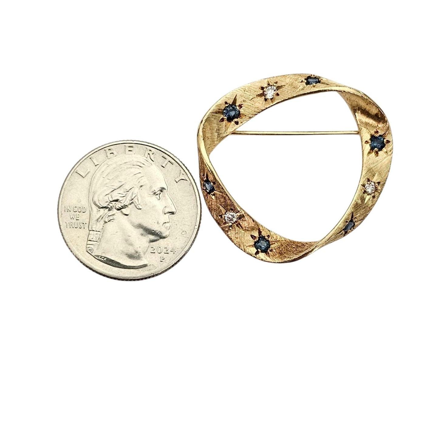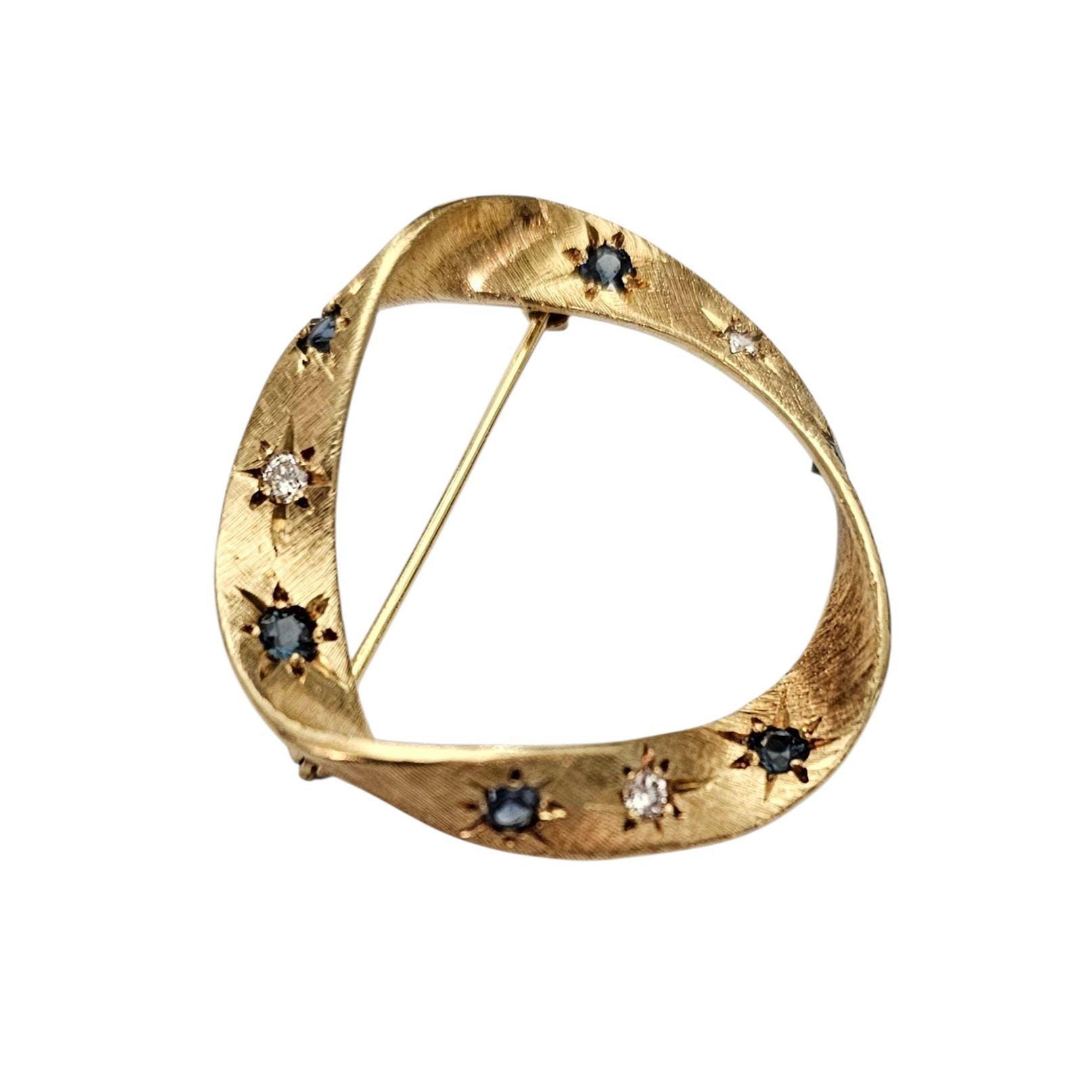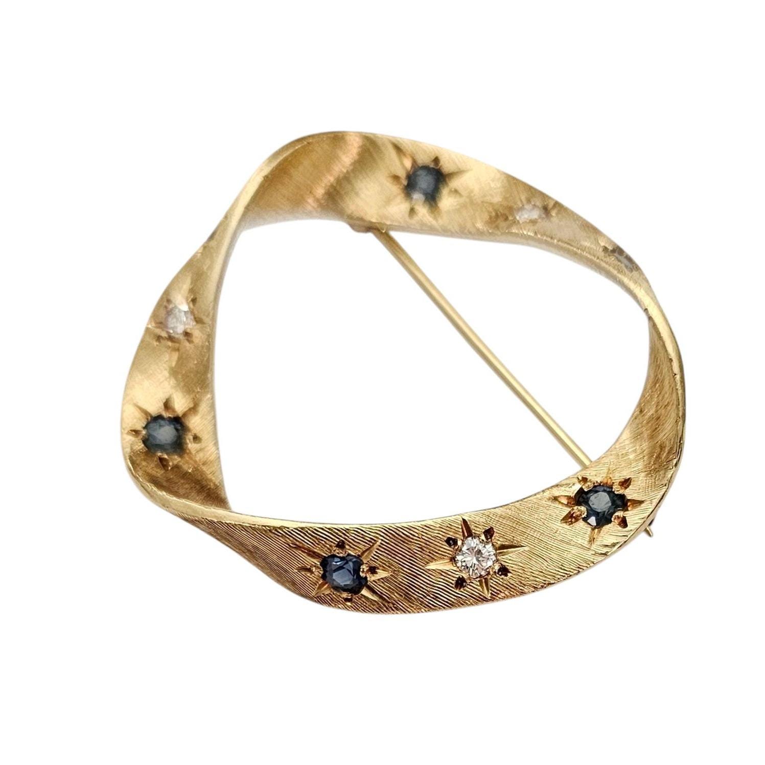 Cartier 18K Yellow Gold Diamond Sapphire Round Open Brooch Signed, C345