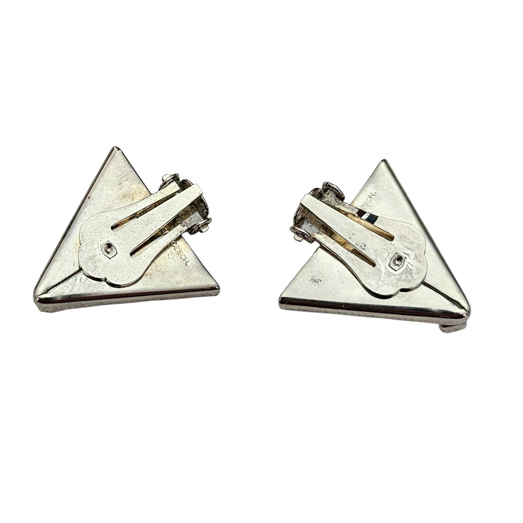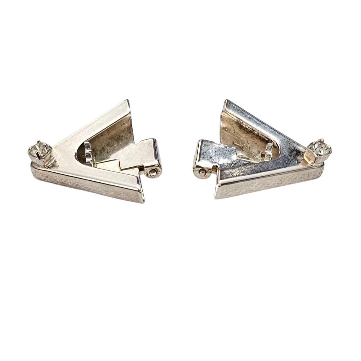 Ges Gesch Collar Clips Silver Tone, Clear Rhinestones Signed, C349