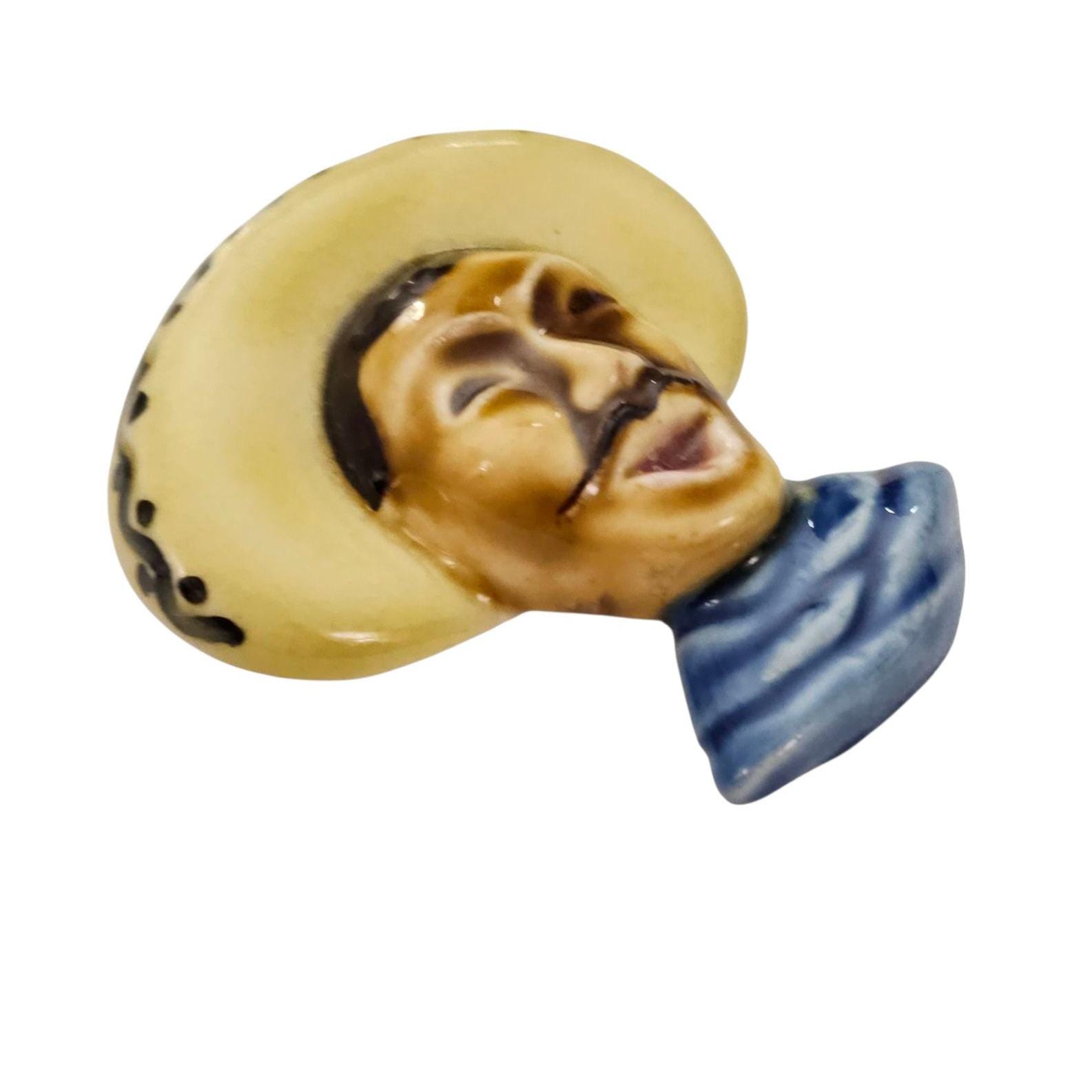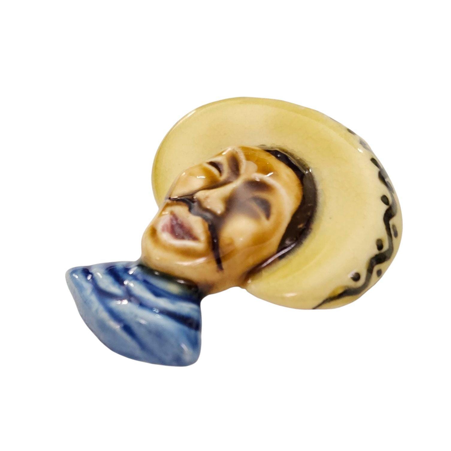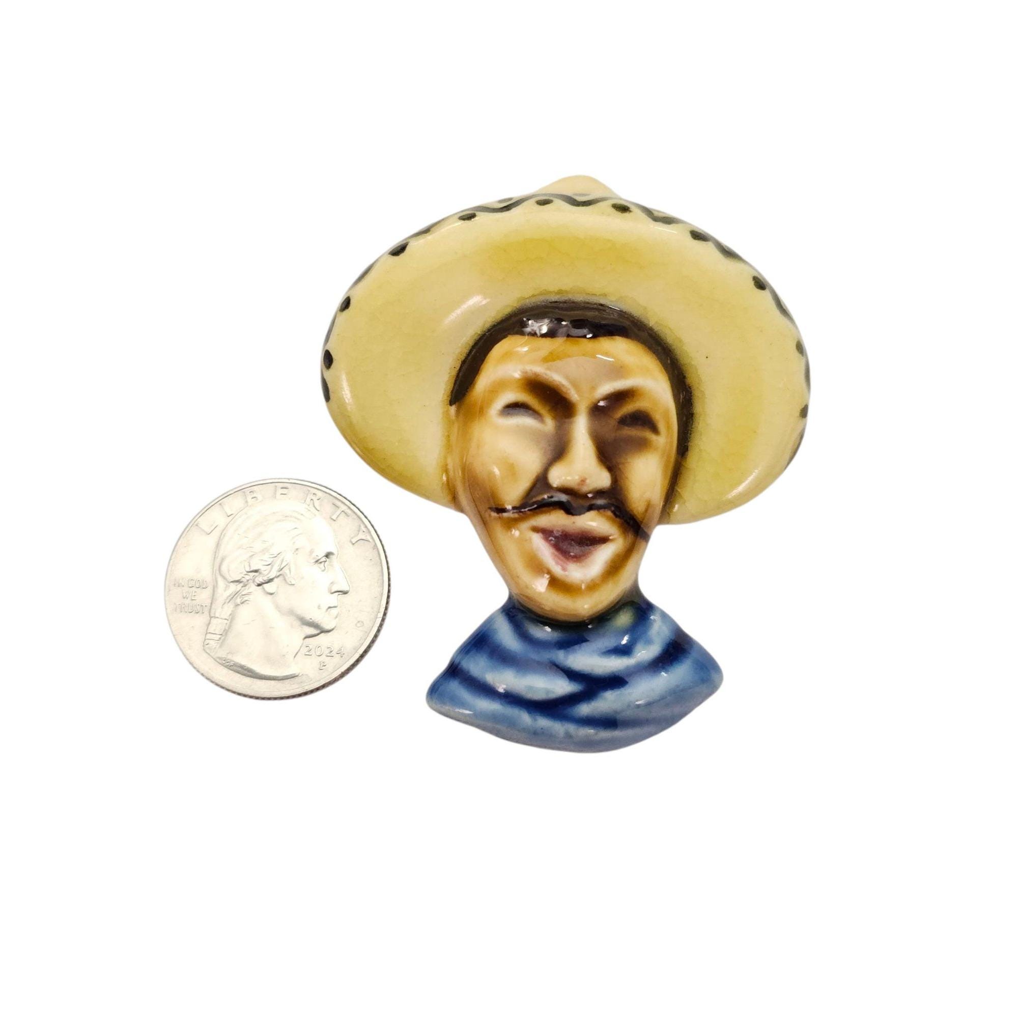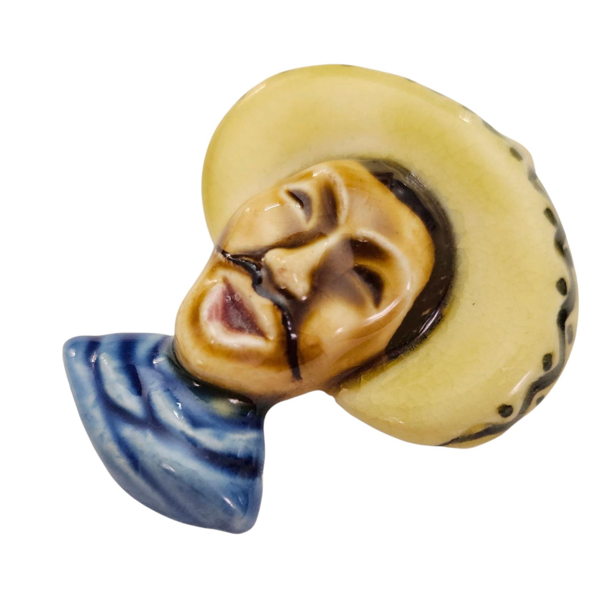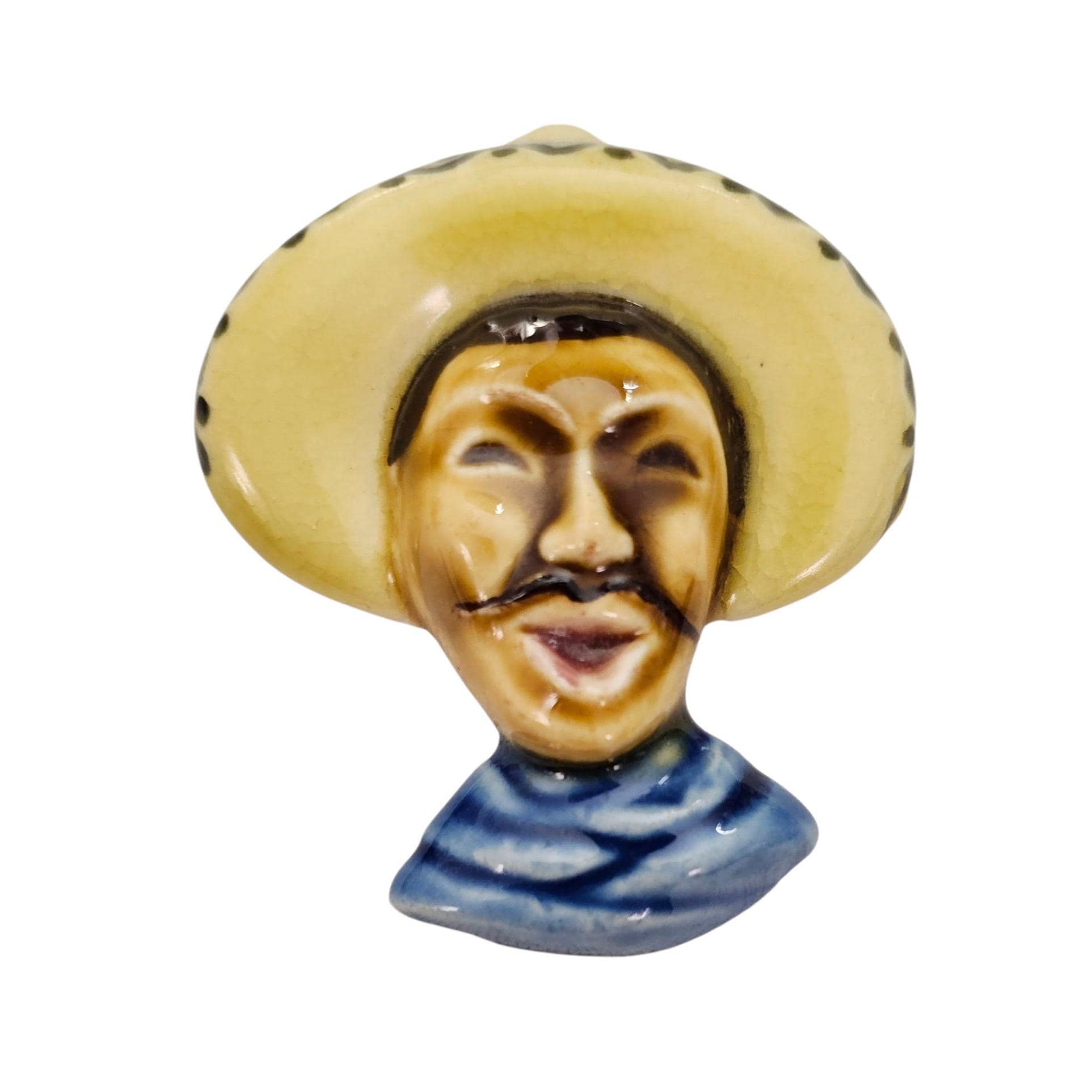 Ceramic Glazed Mexican Man In Hat Brooch Elzac-Style Pin C350