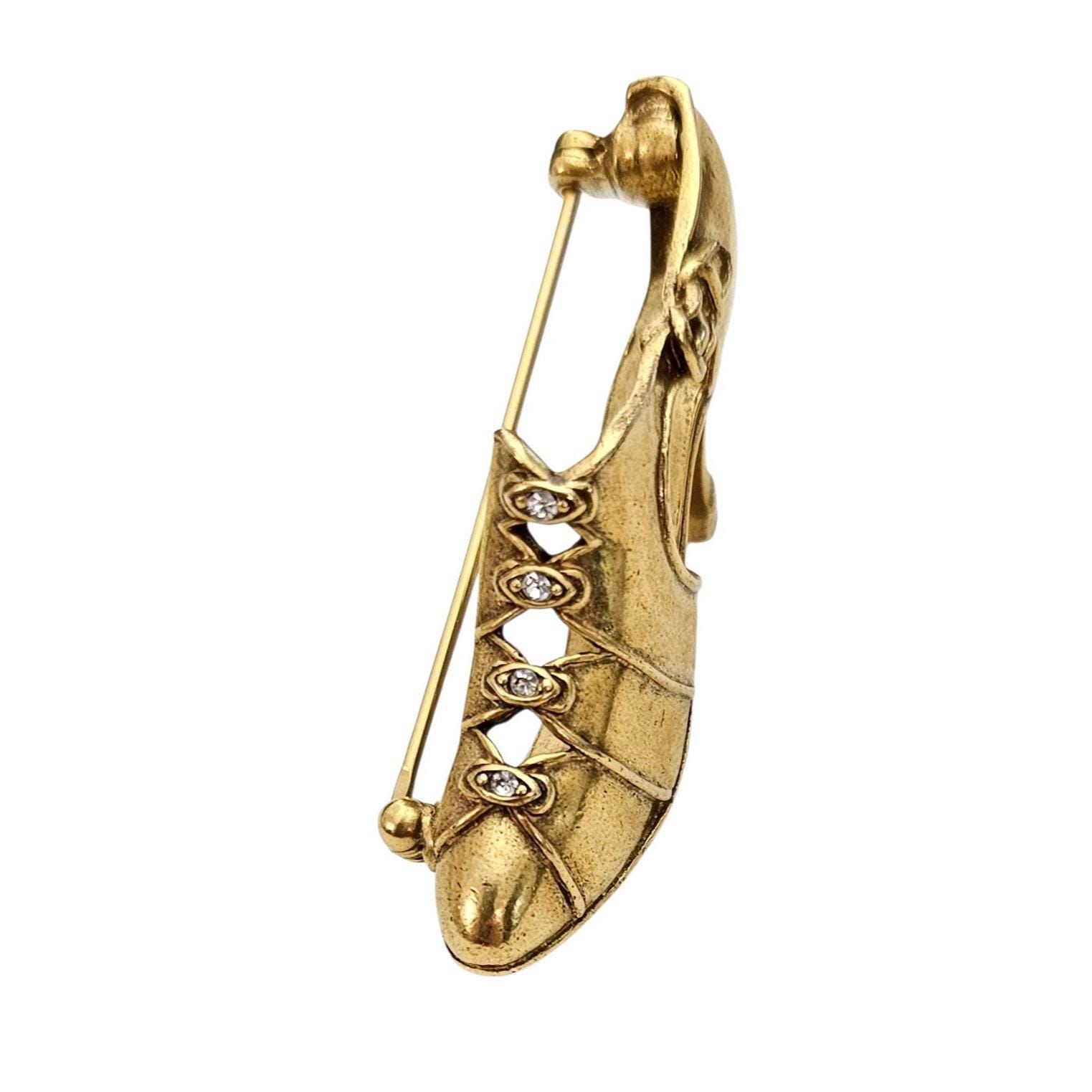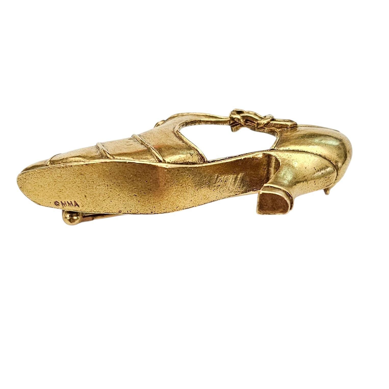 MMA Metropolitan Museum Of Art Shoe Brooch Gold Tone Clear Rhinestone High Heel Pin, Signed C351
