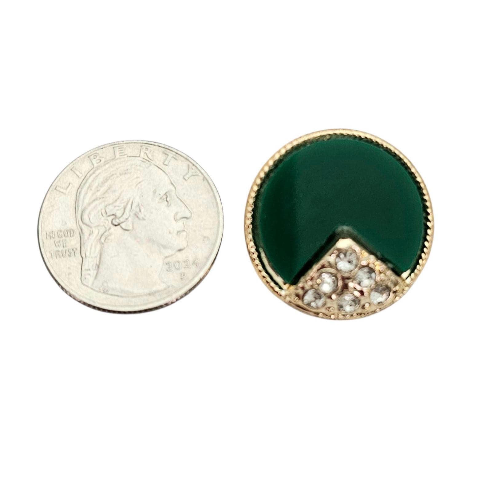 • Green inlay accented with clear faceted rhinestones