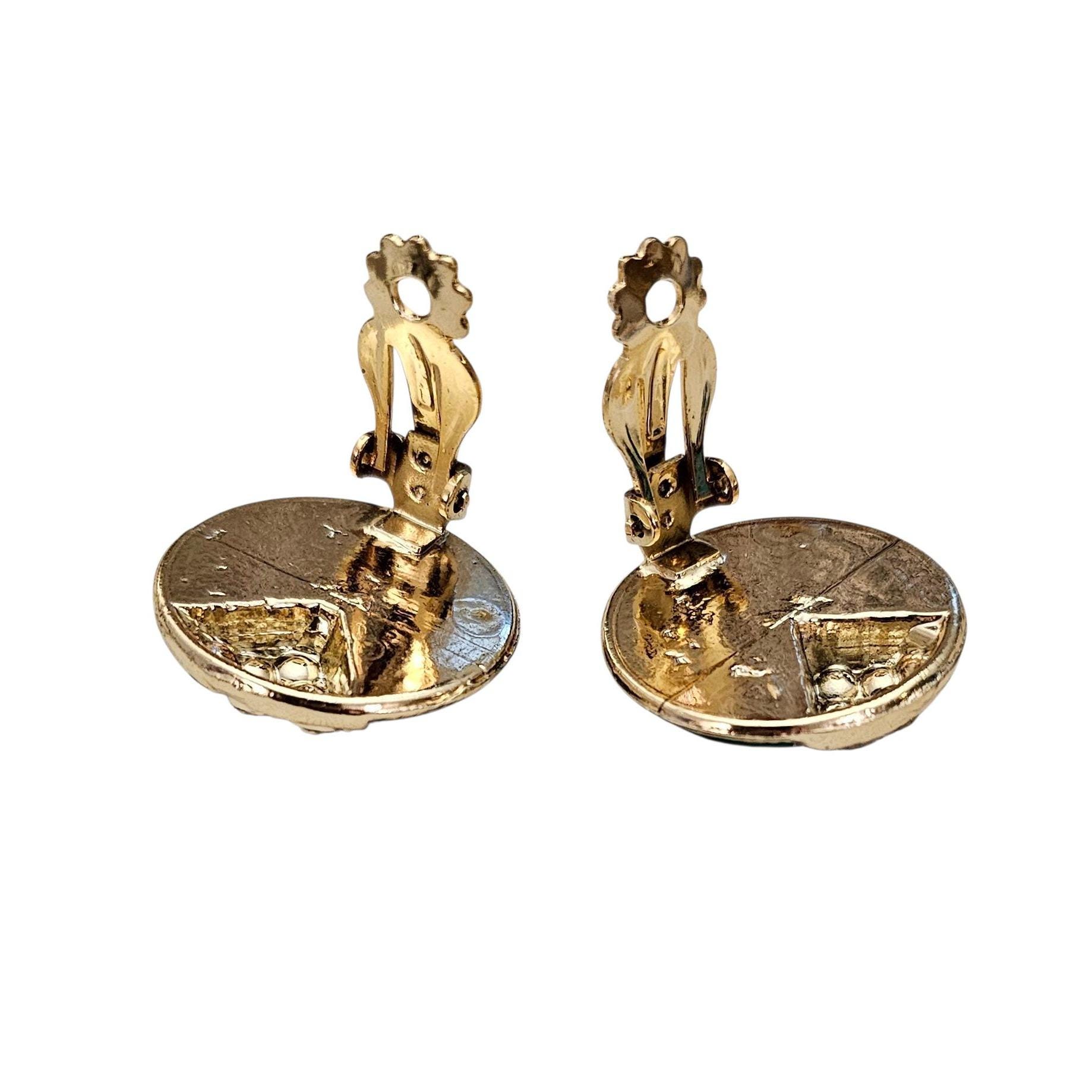 • Gold Tone Round Clip On Earrings