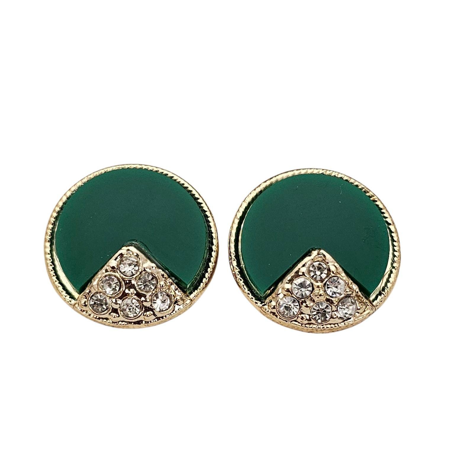 Gold Tone Clear Rhinestone Green Inlay Clip On Earrings C355