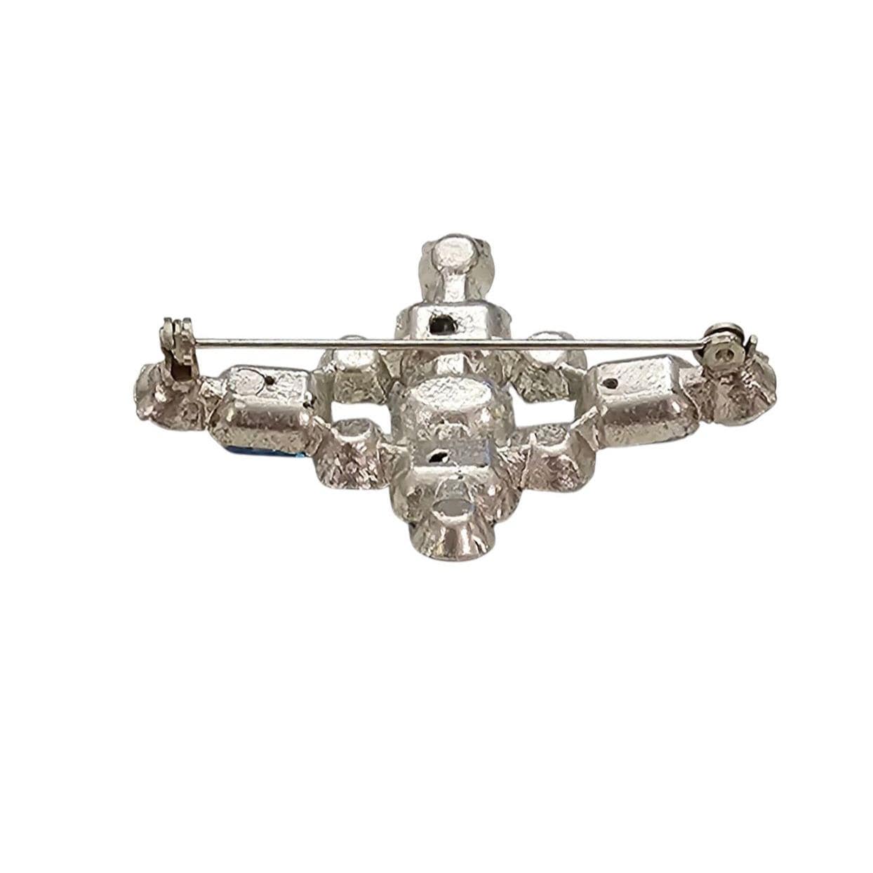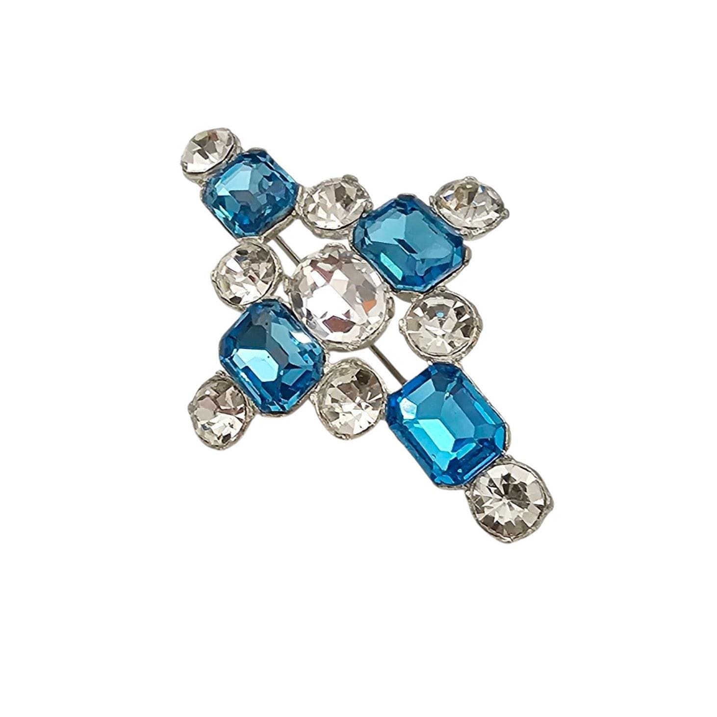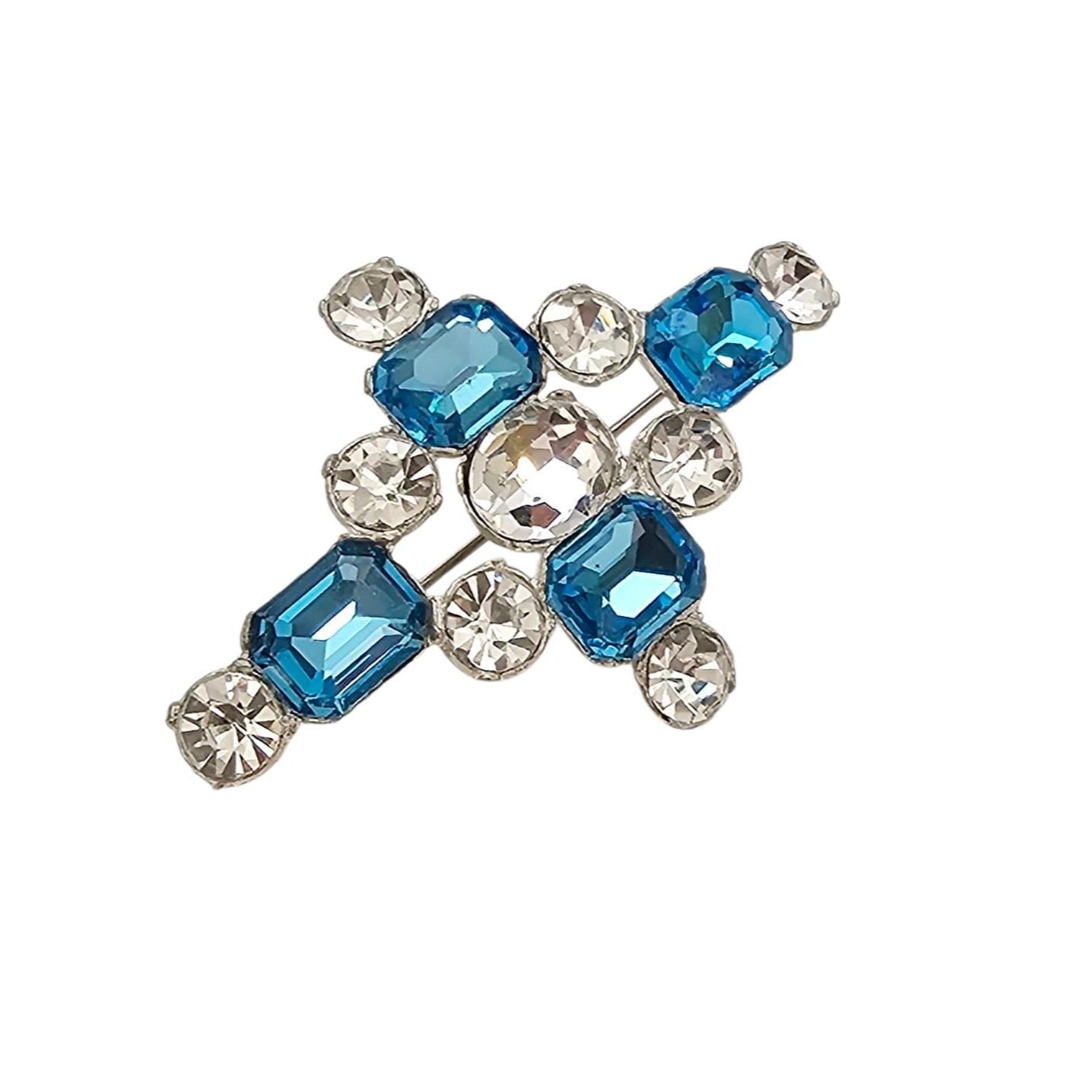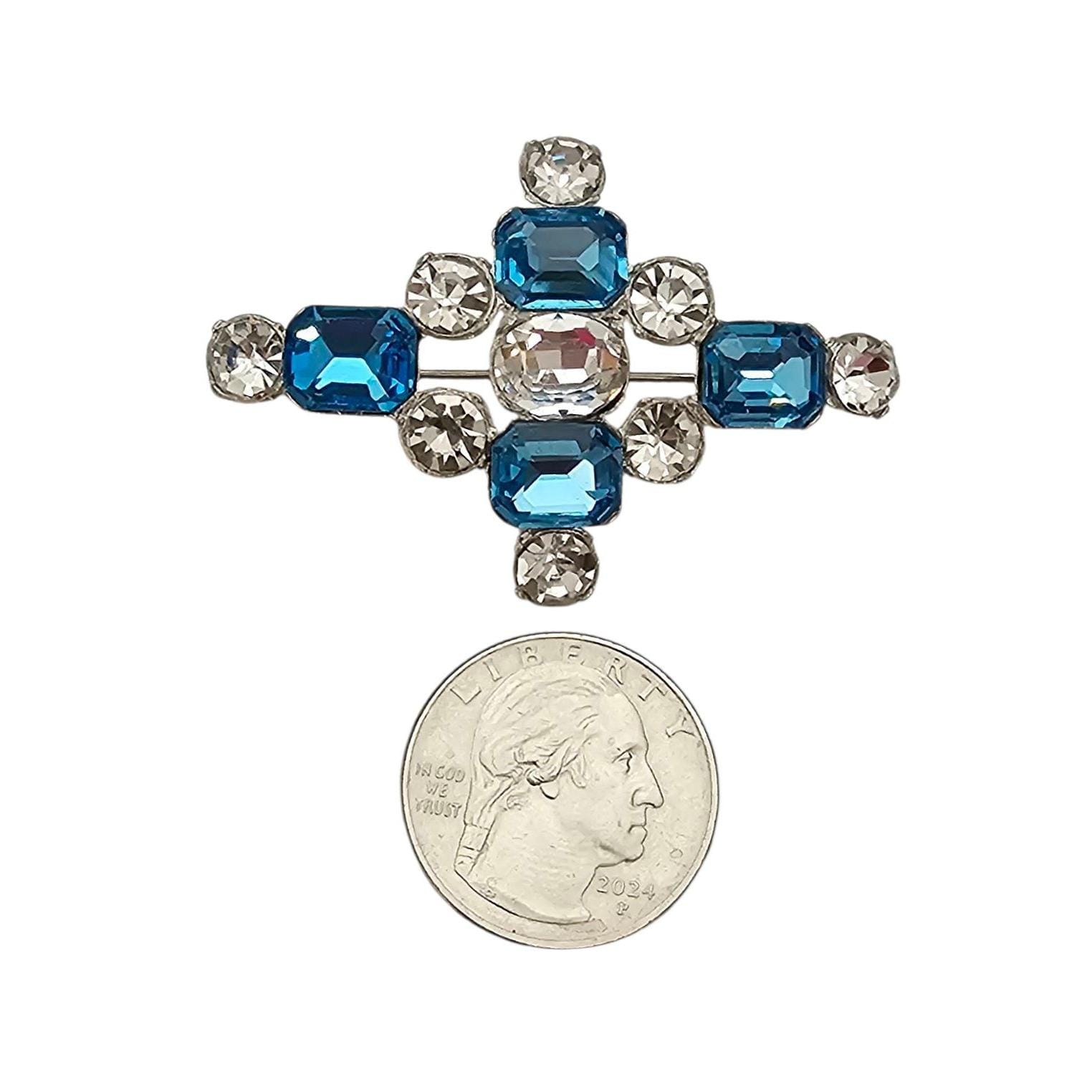 1940 Light Blue Clear Rhinestone Cross Brooch Pot Metal Pin, New Old Stock, C361