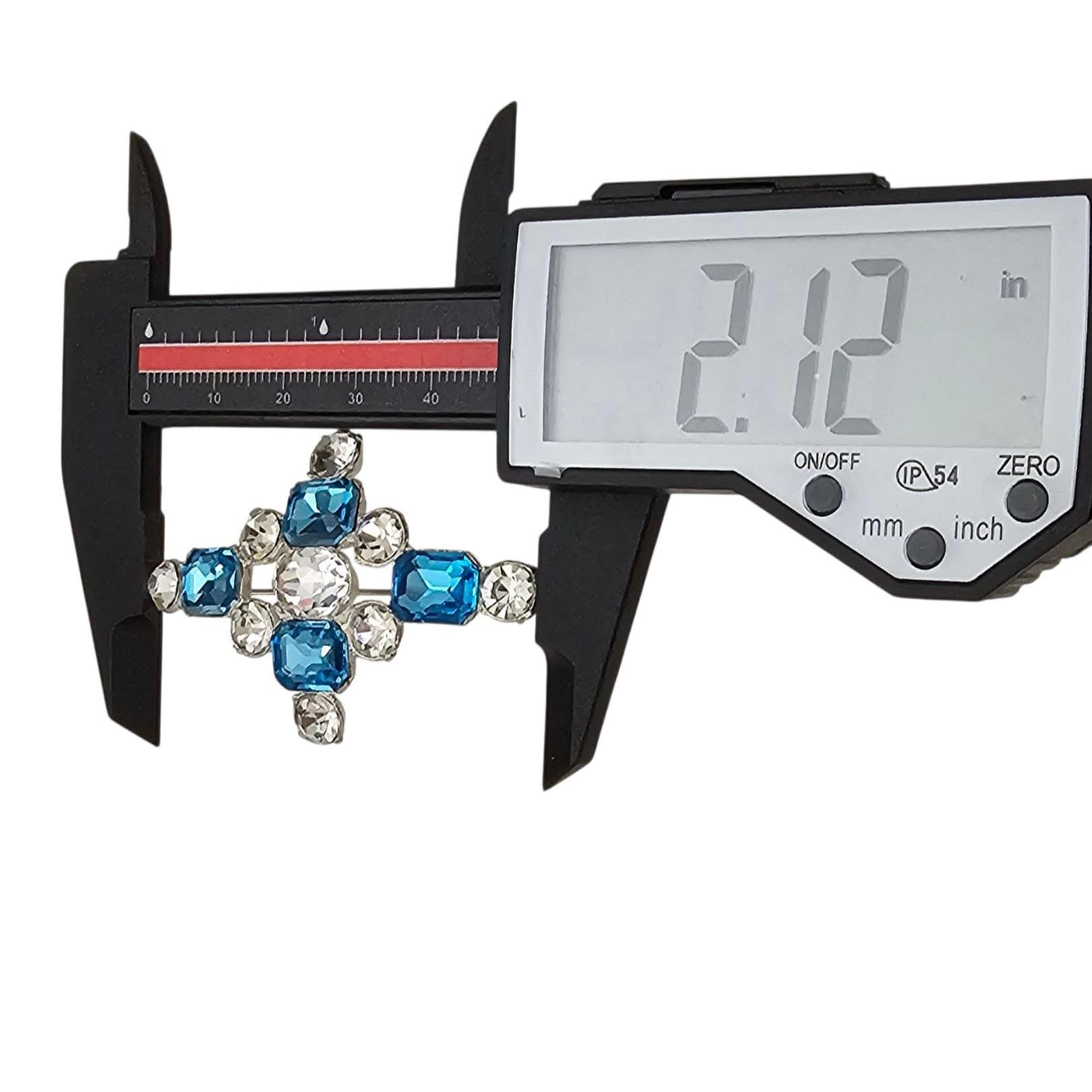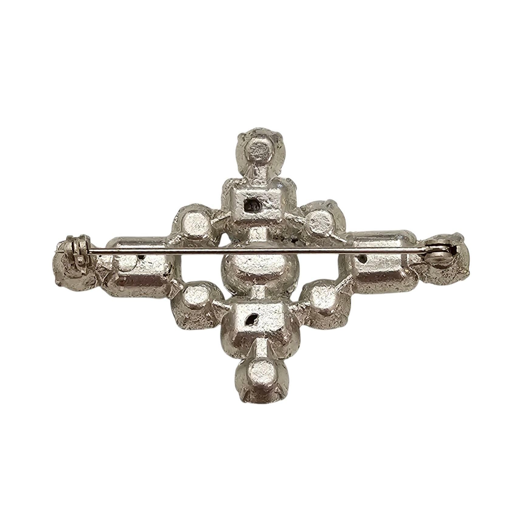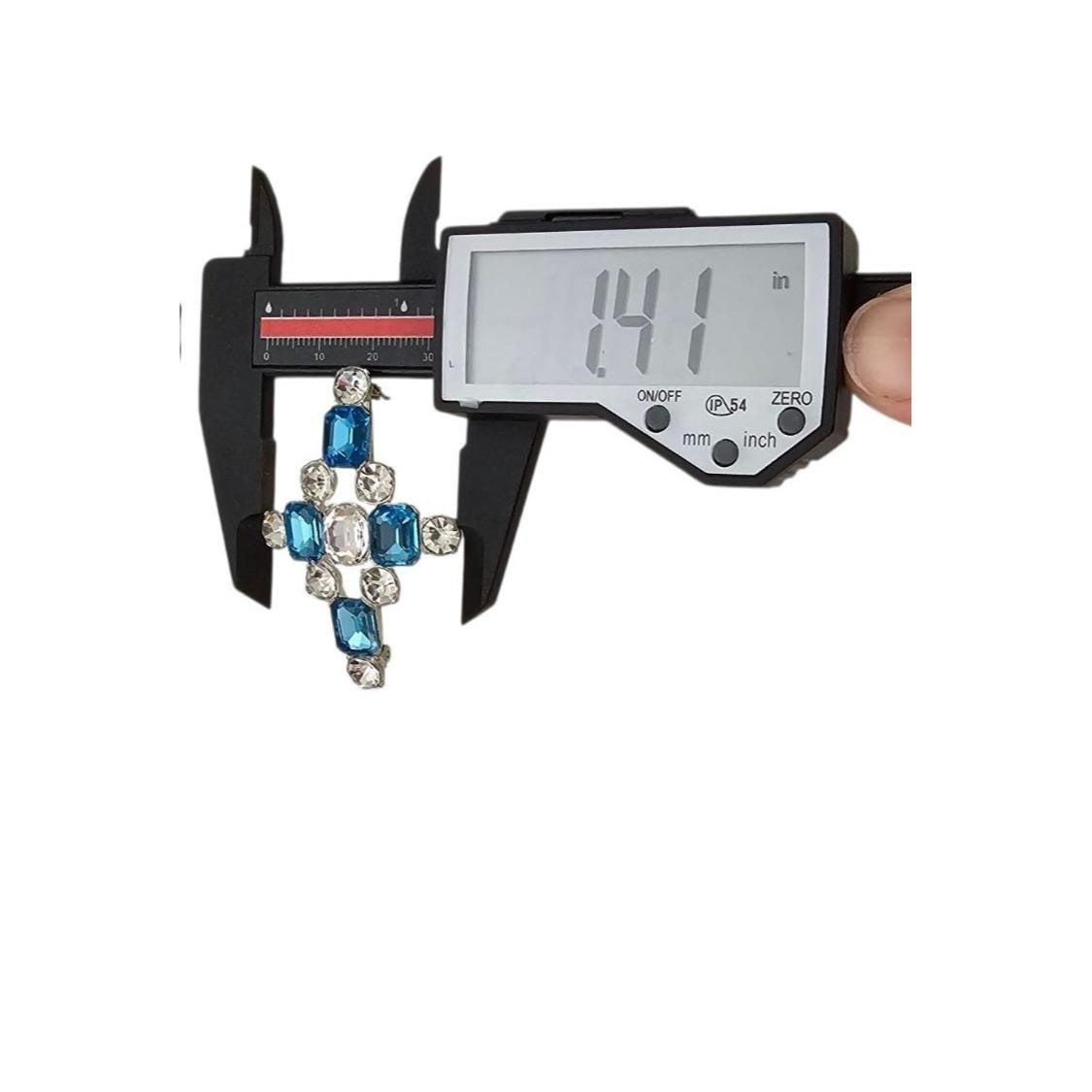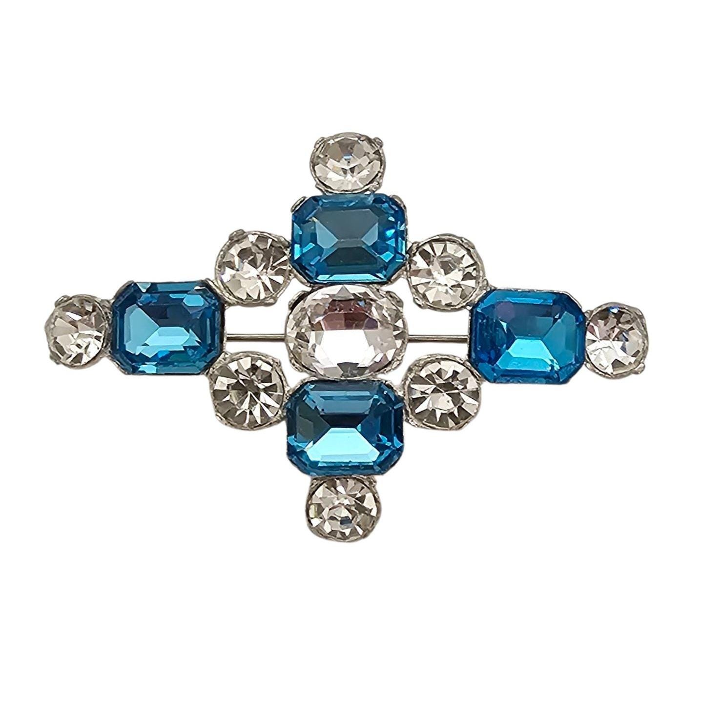 1940 Light Blue Clear Rhinestone Cross Brooch Pot Metal Pin, New Old Stock, C361