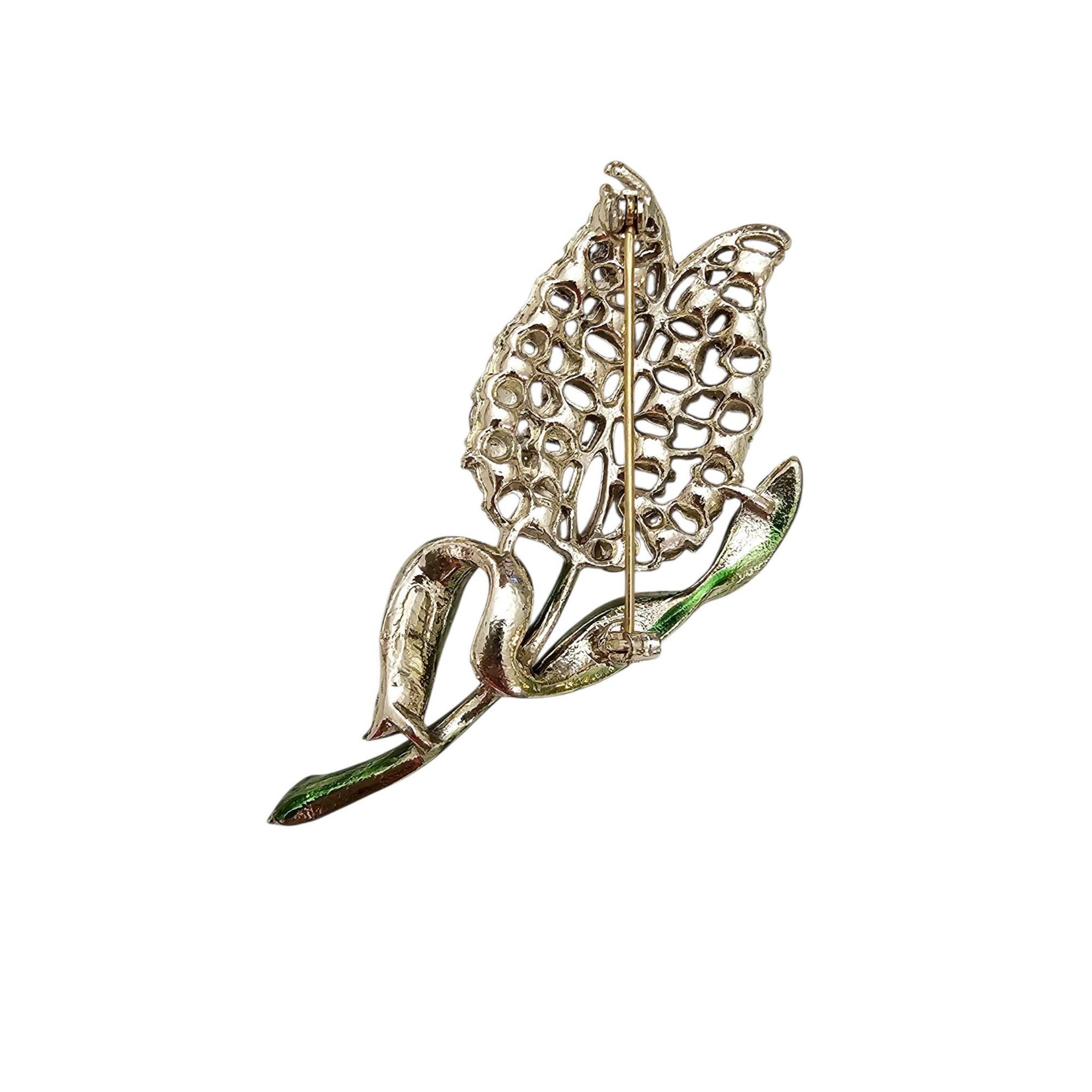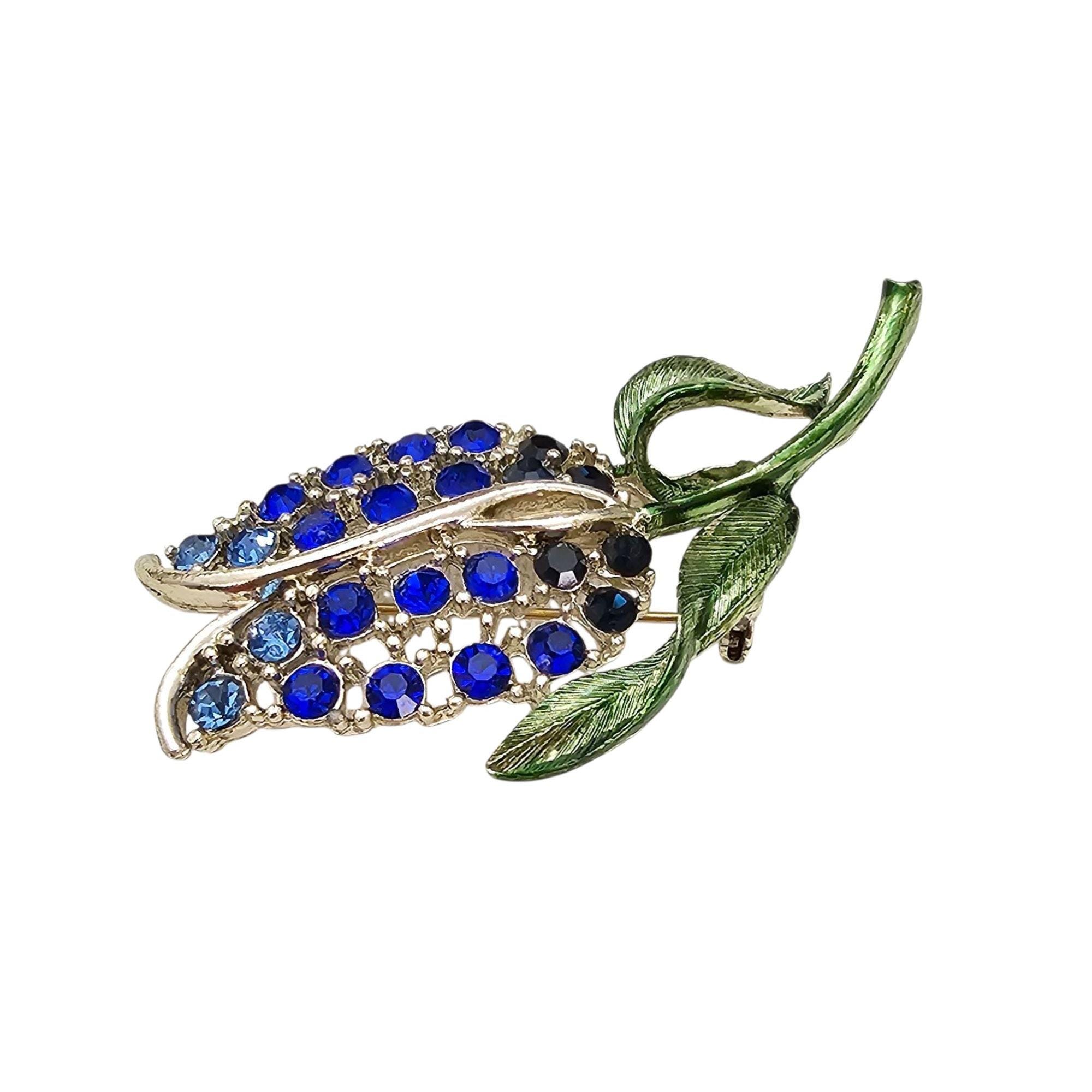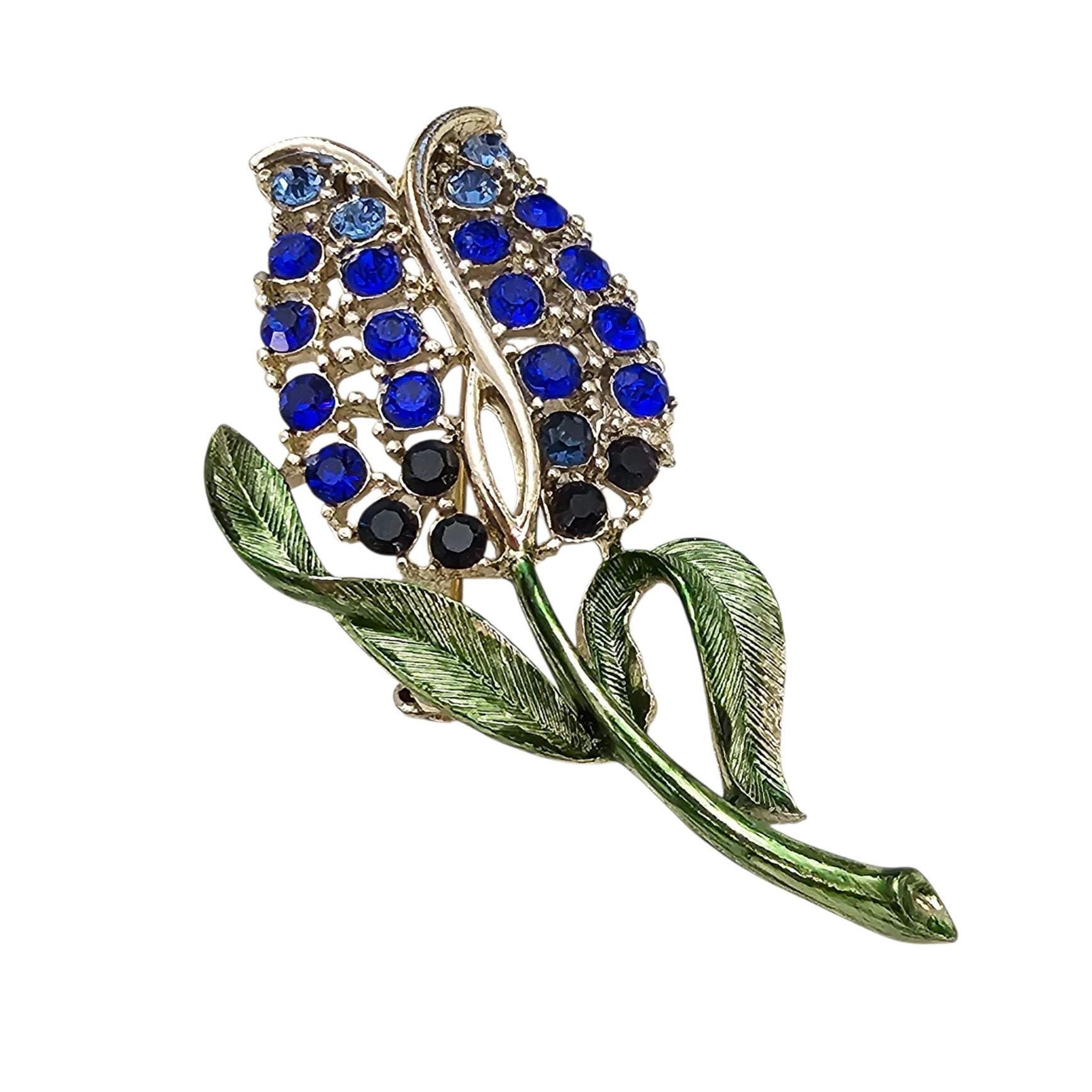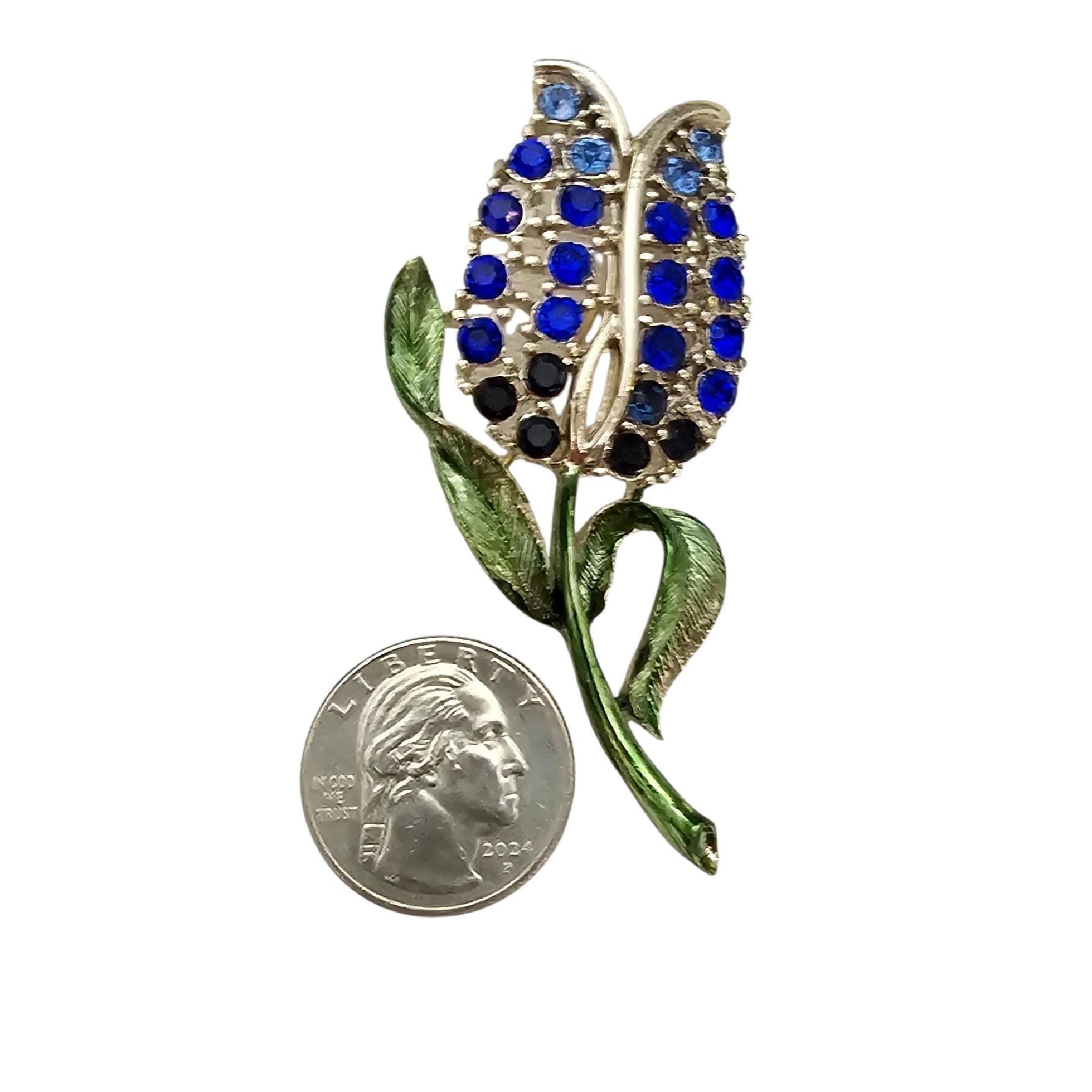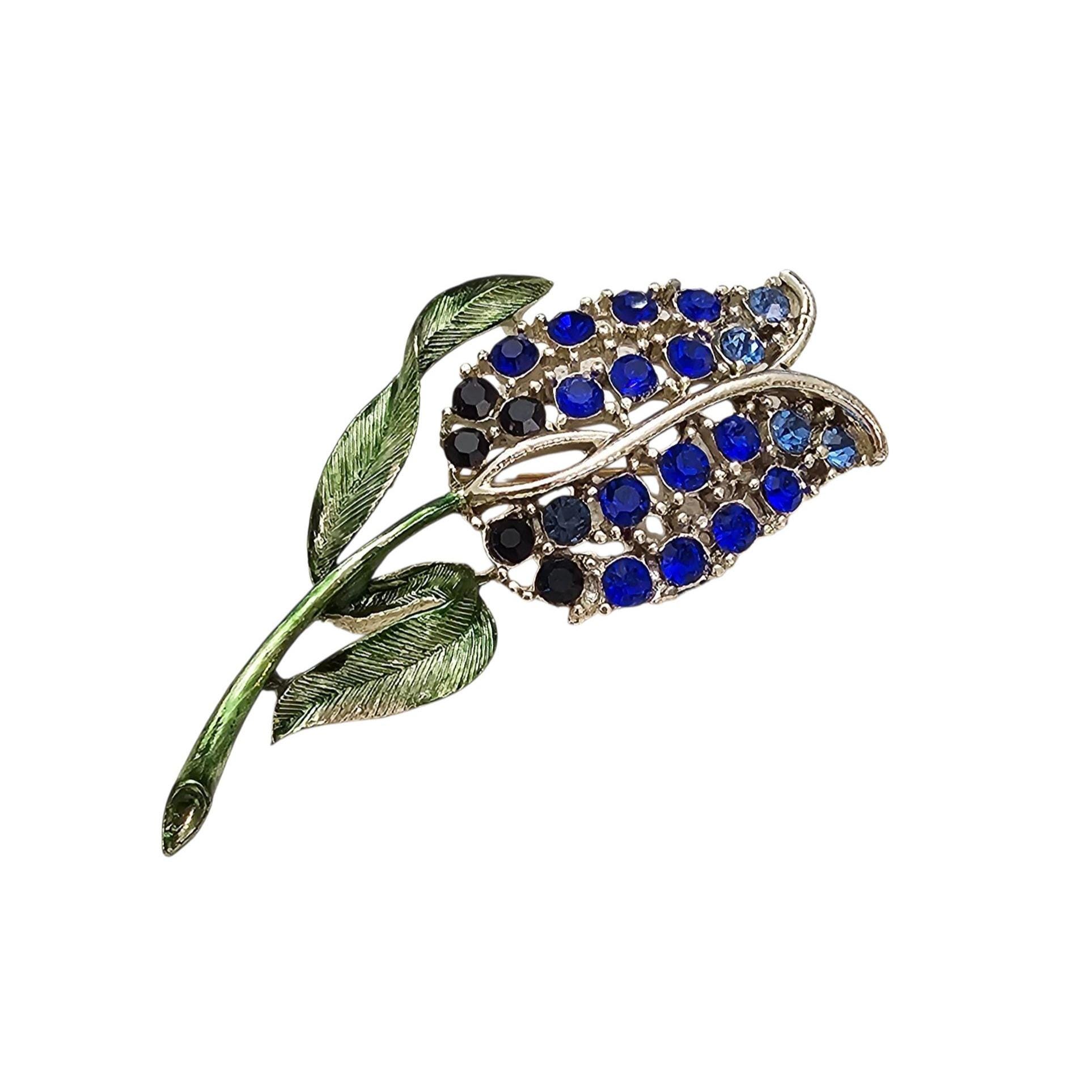 Blue Rhinestone Vintage Flower Brooch 1940-50 Tulip New Old Stock Pin, C363