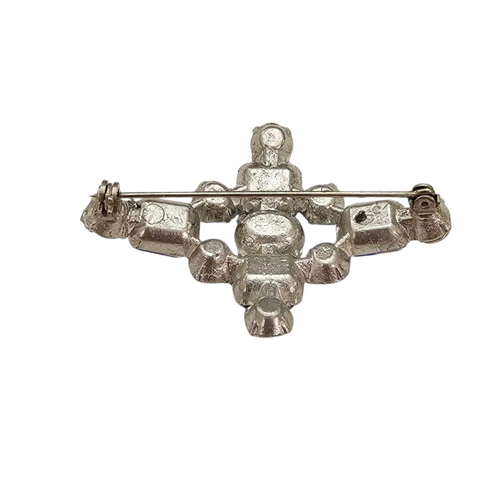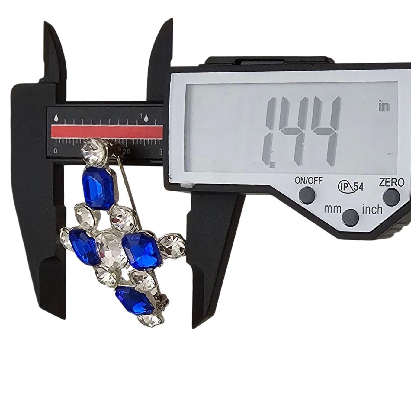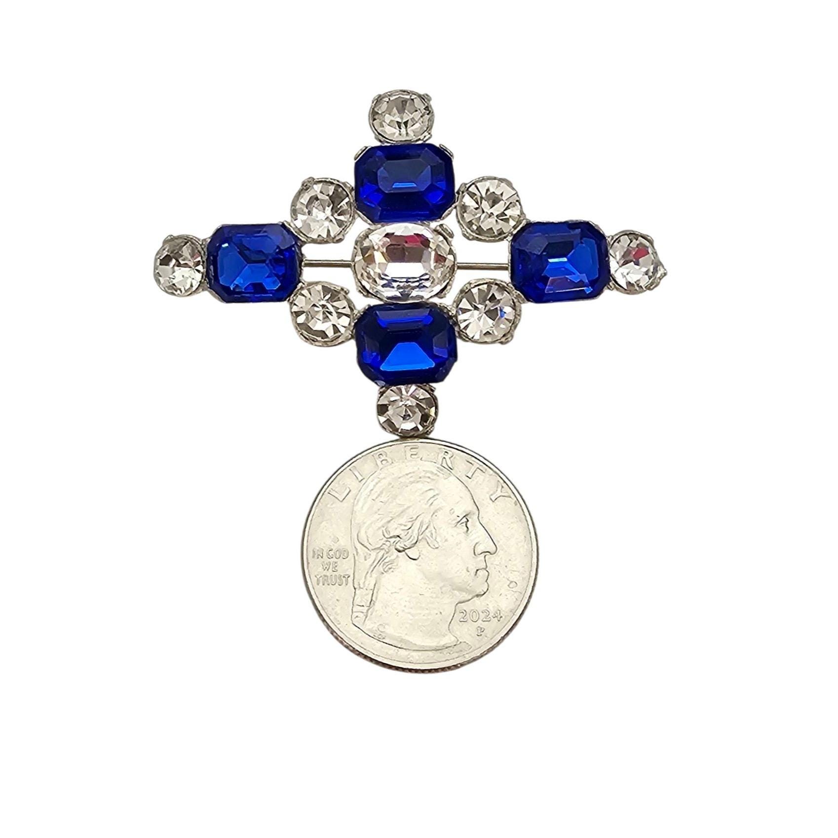 1940s Dark Blue Rhinestone Cross Brooch New Old Stock Pot Metal Pin C364