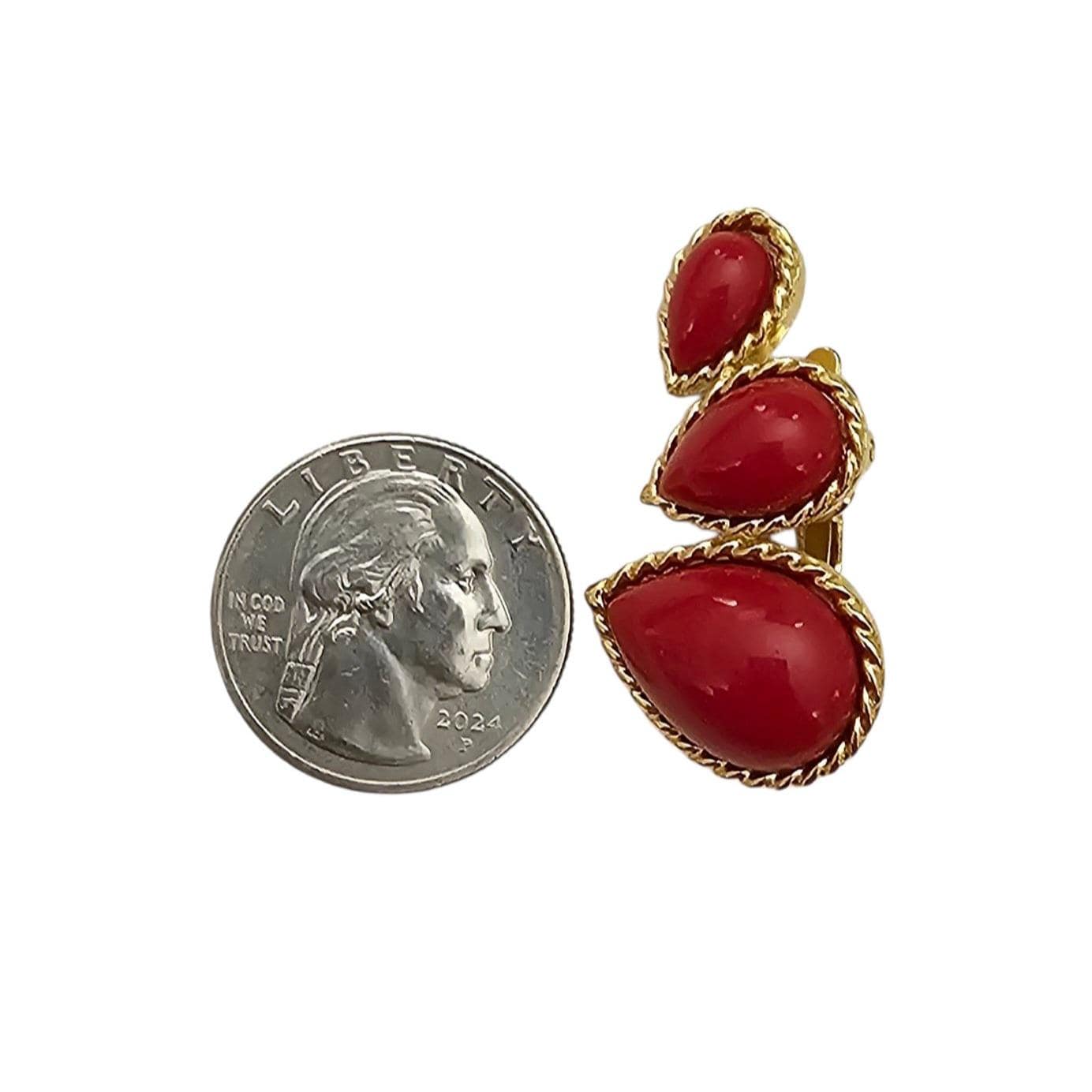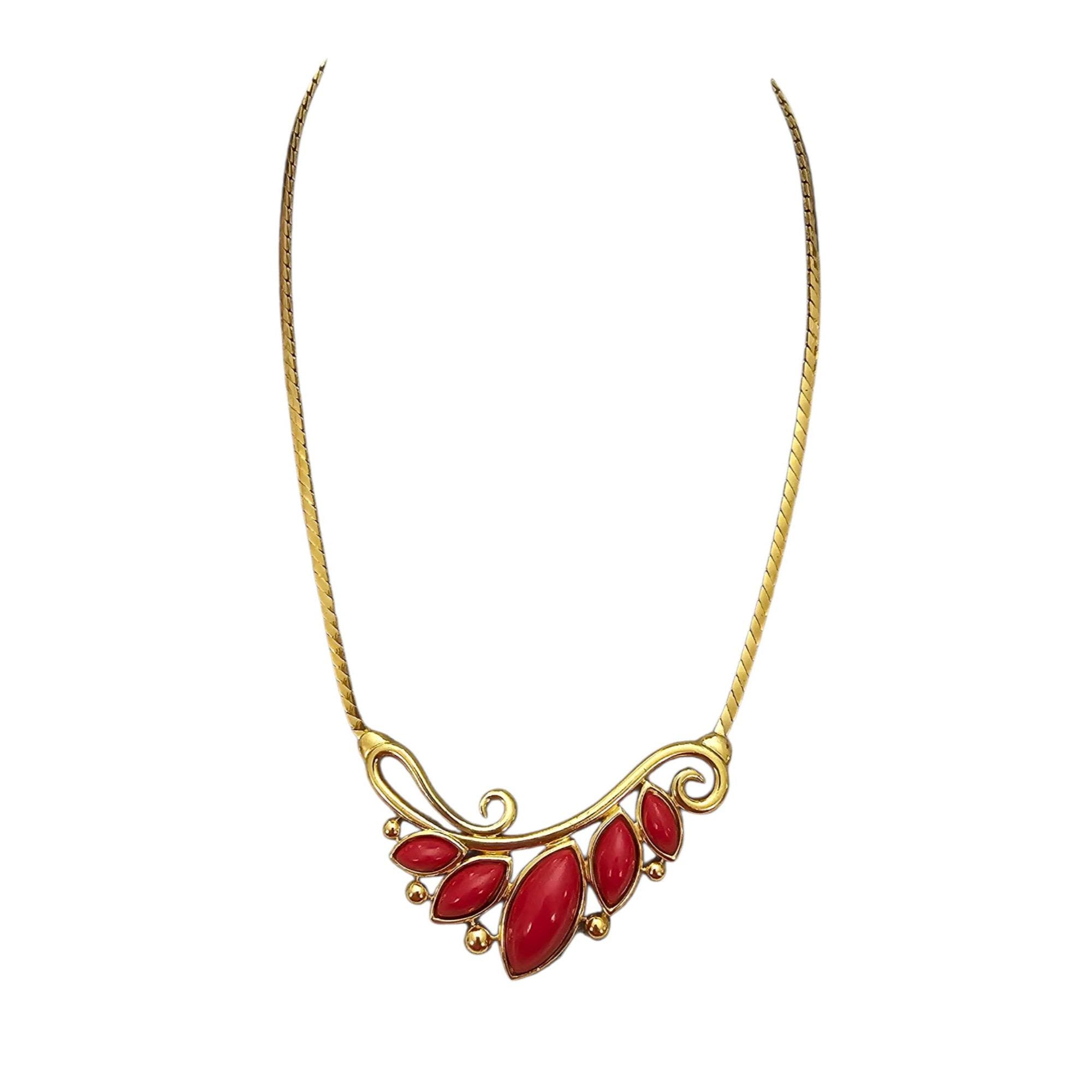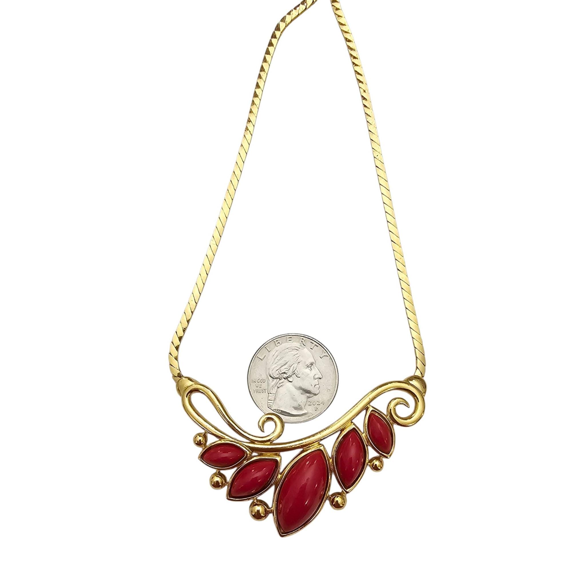 Trifari TM Vintage Red Lucite Necklace Matching Clip On Earrings Set Signed, C370