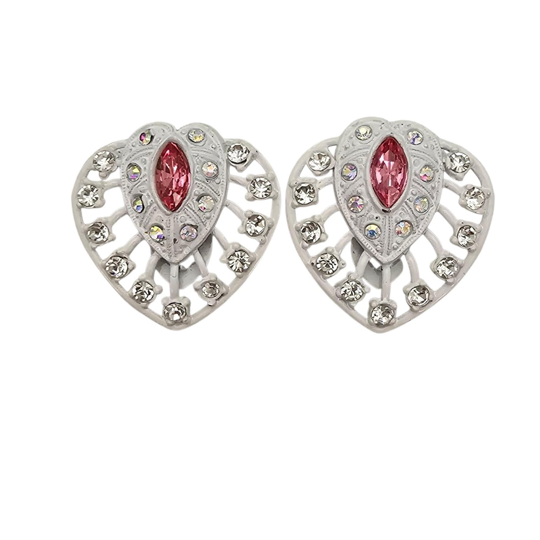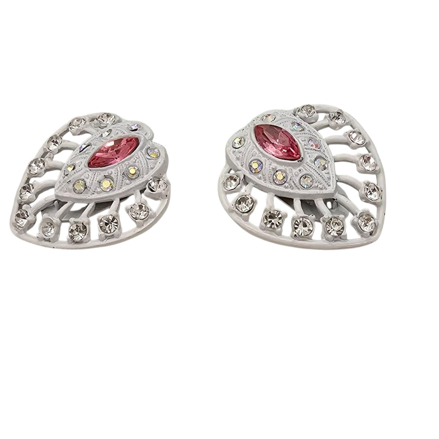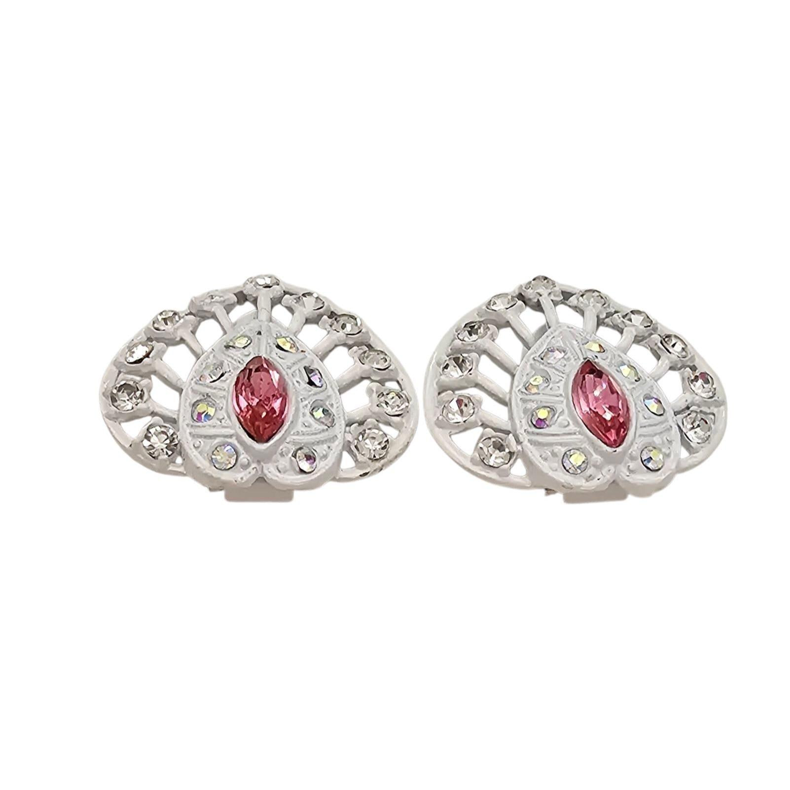 1940s Fur Clip White Enamel Pink AB Rhinestone New Old Stock C372
