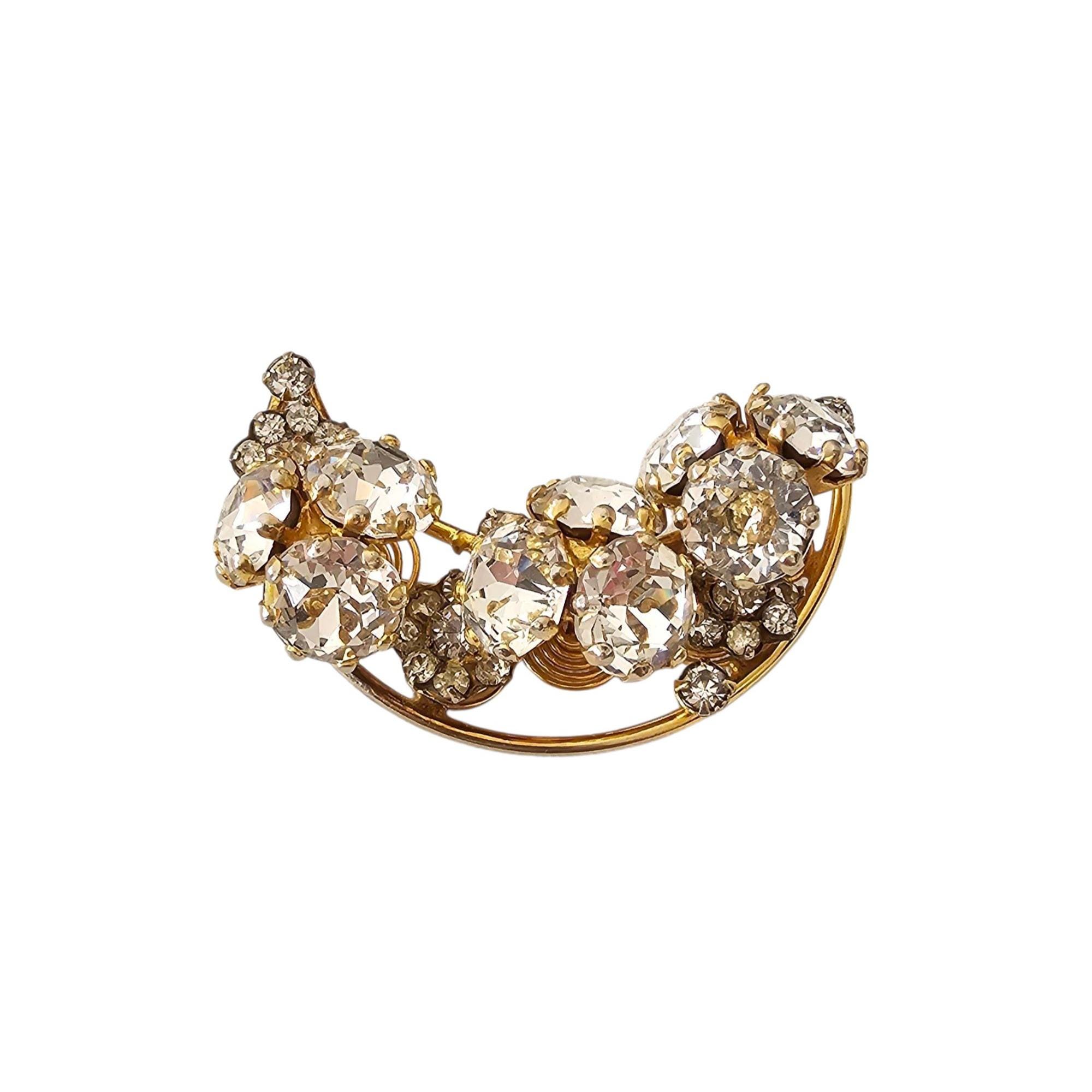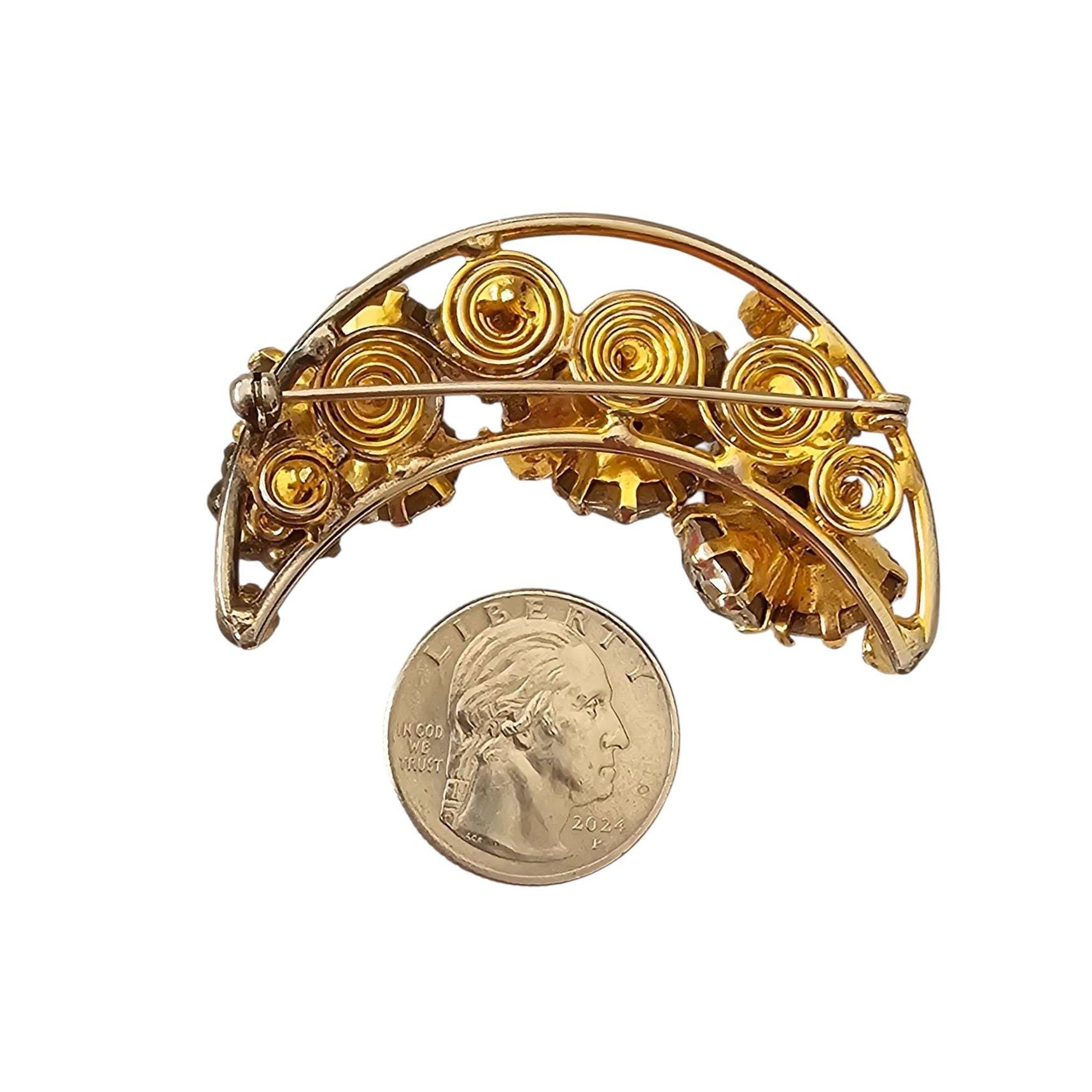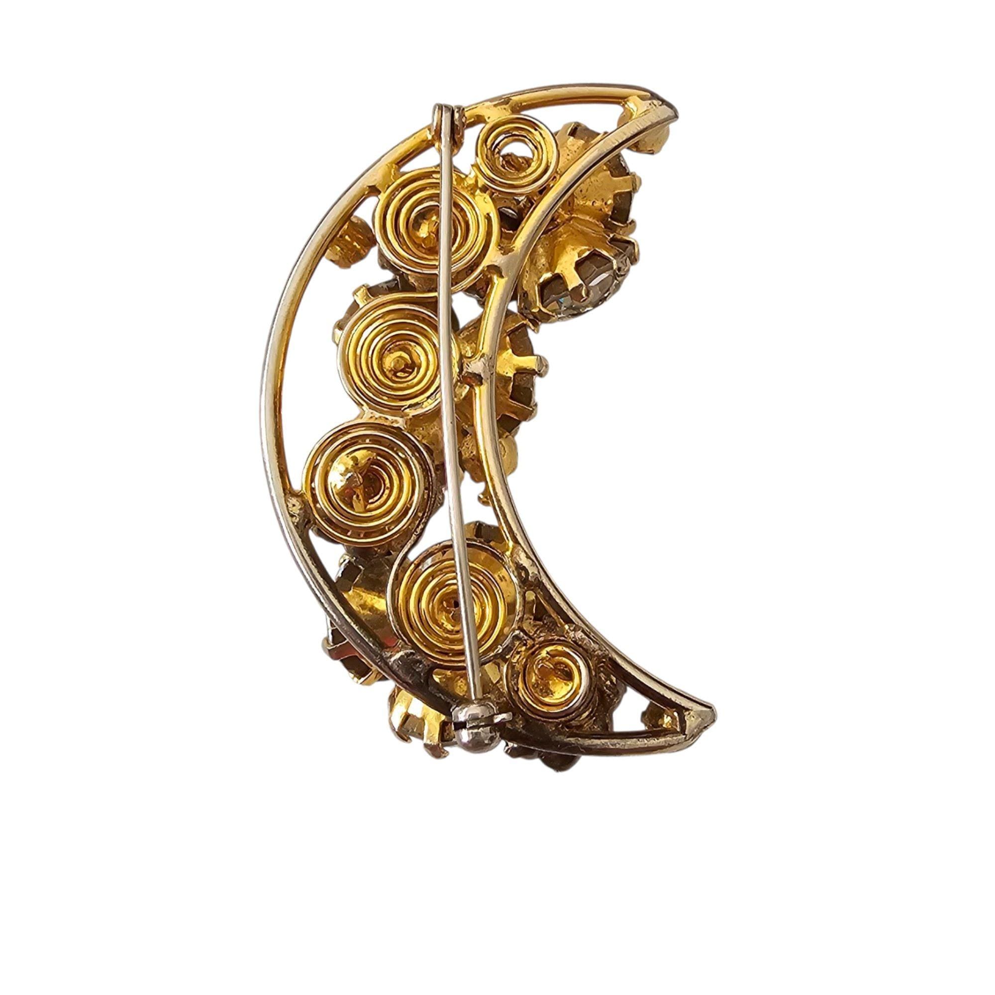 Fred Block Brooch Clear Rhinestone Crescent Moon Trembler Pin C376