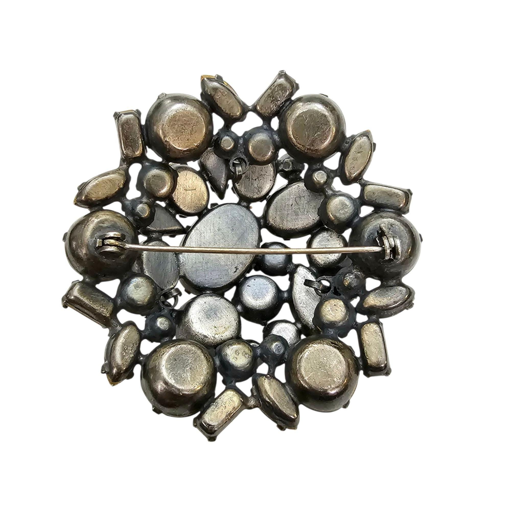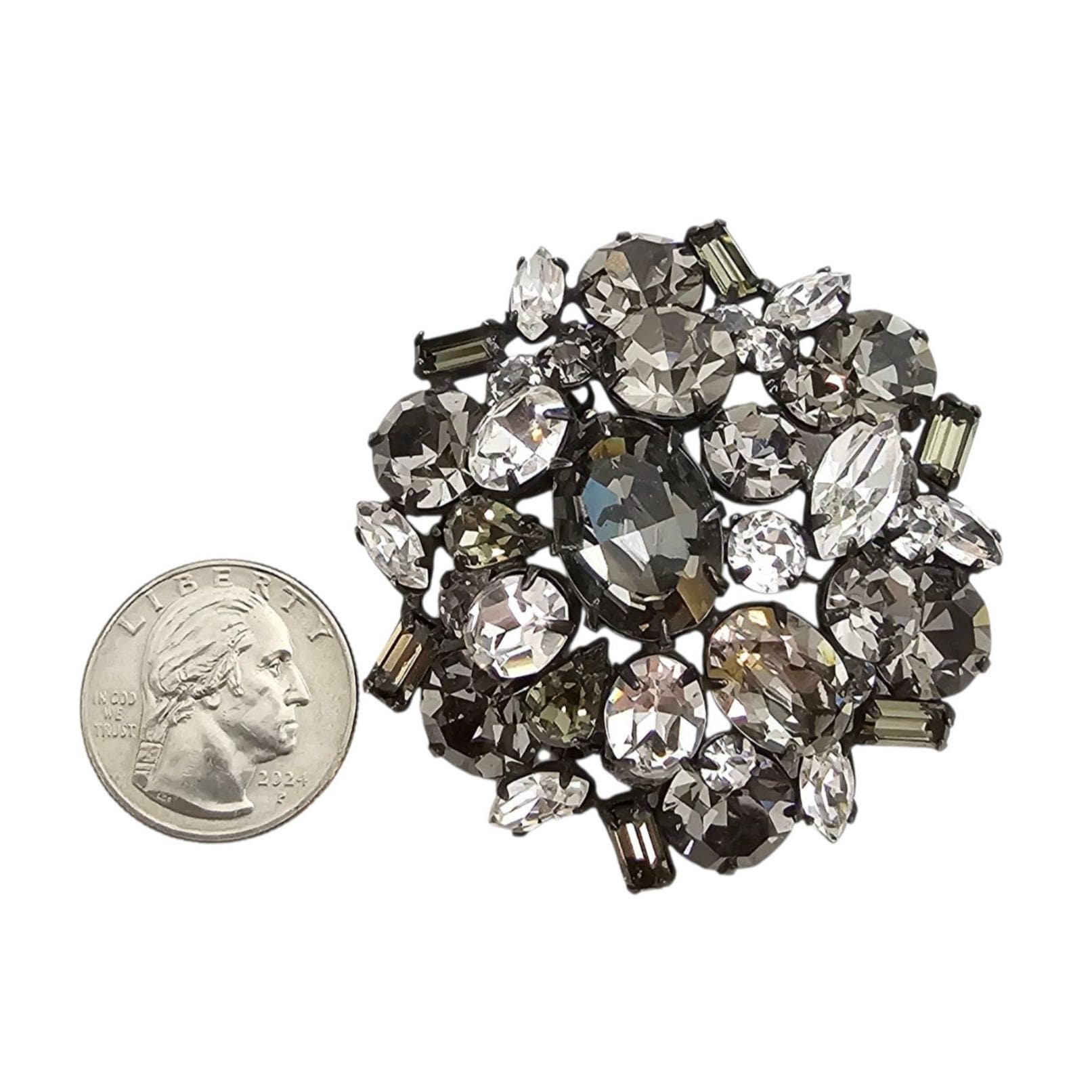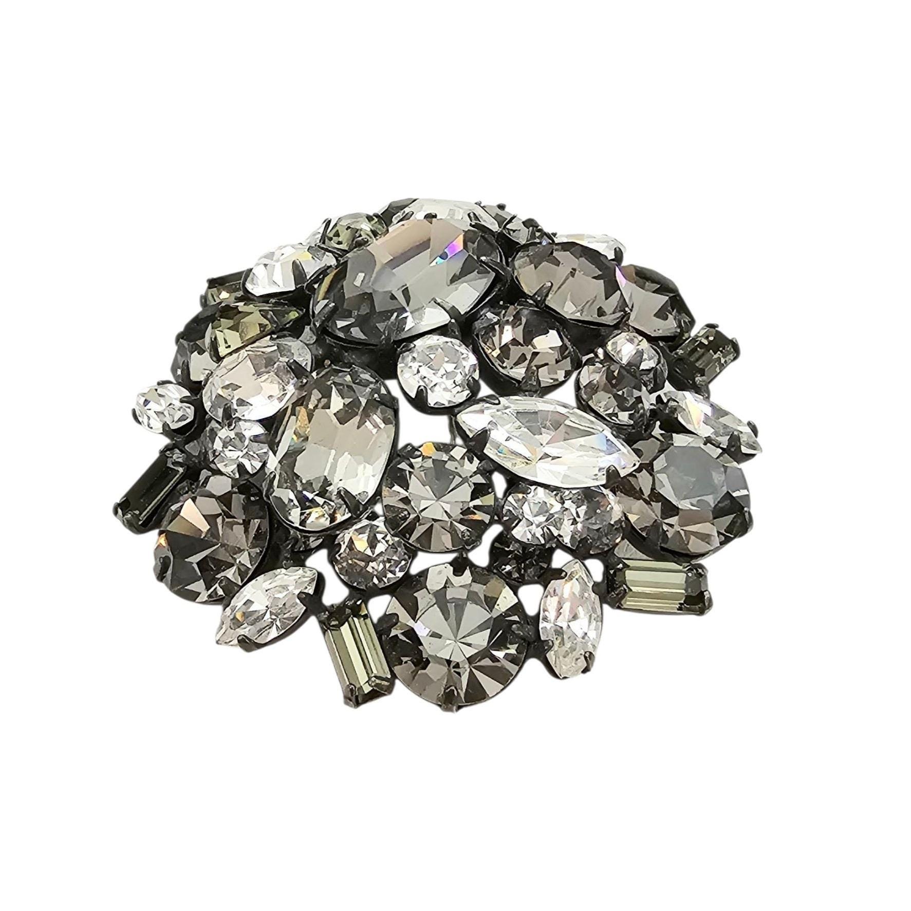 Regency Brooch Clear Smoky Cab Round Dome Cluster Unsigned Pin C384