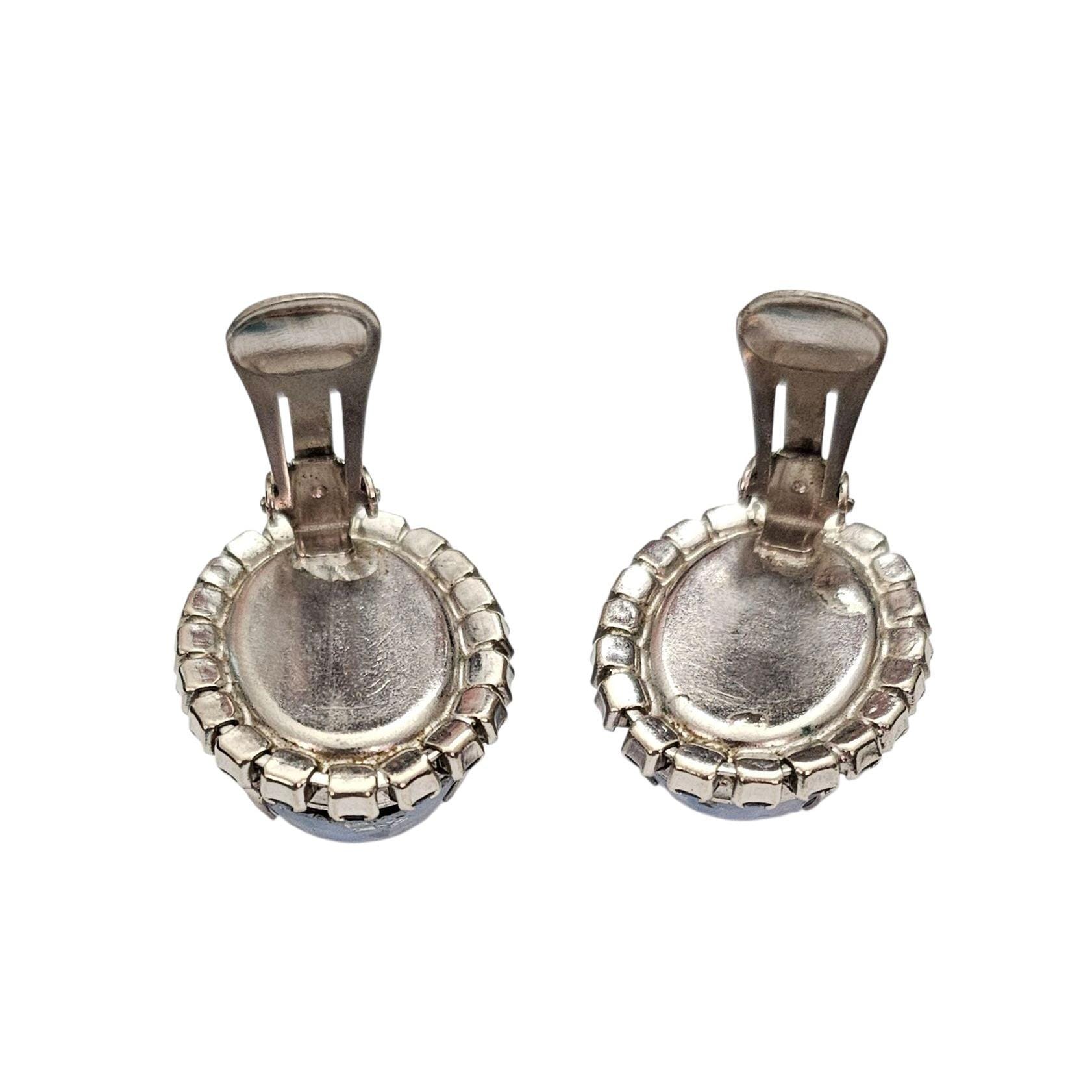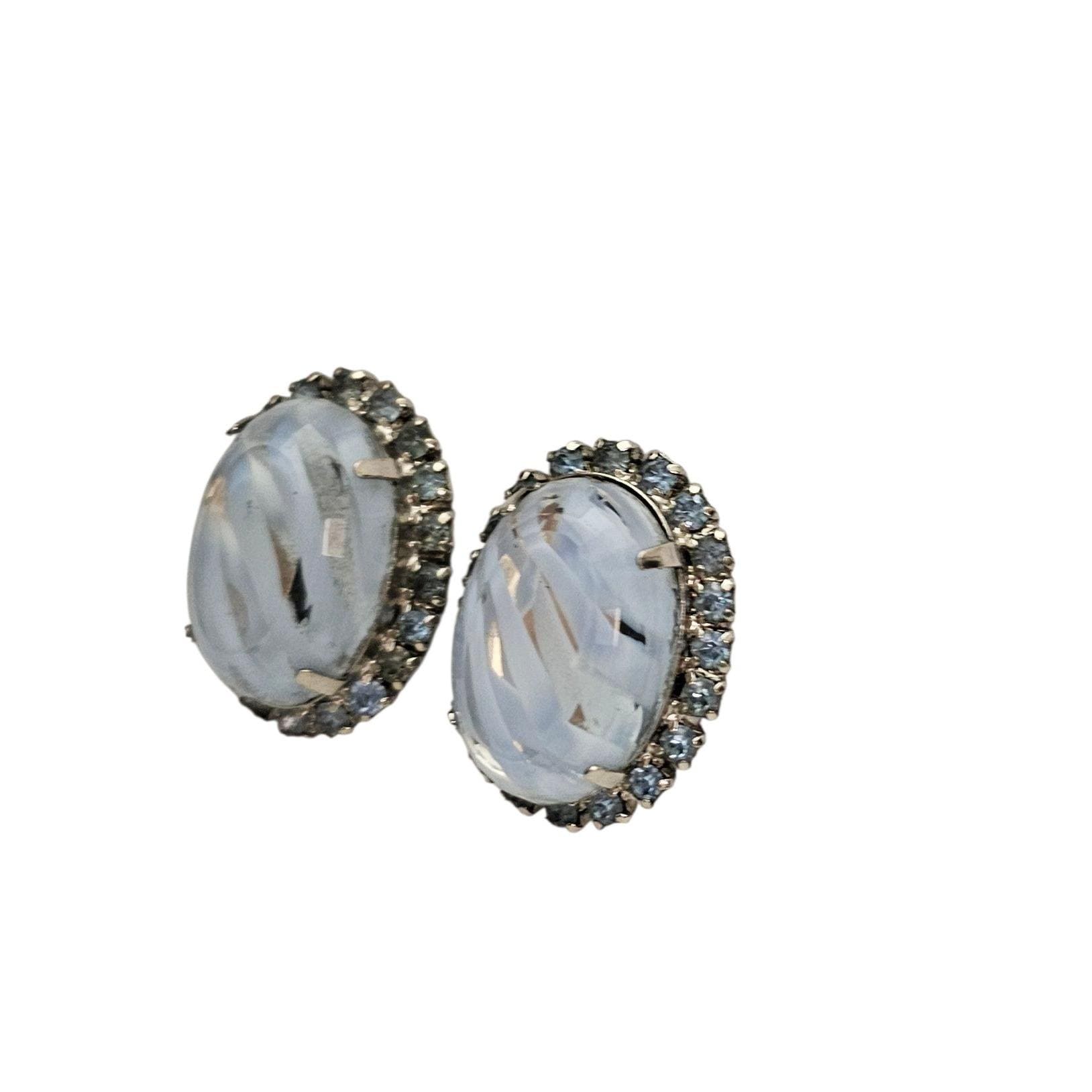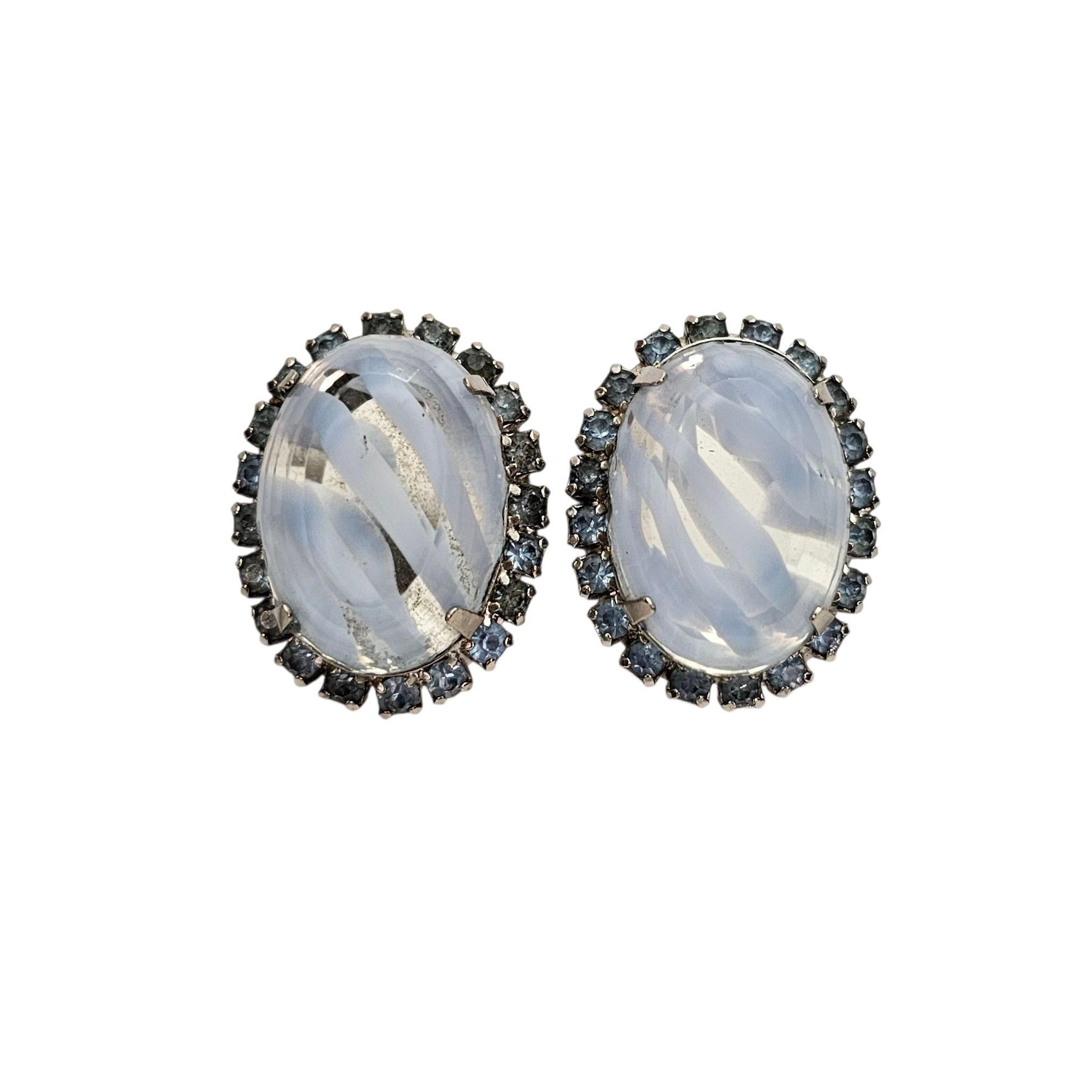 Givre Blue Vintage Clear Oval Clip On Blue Rhinestone Earrings C394